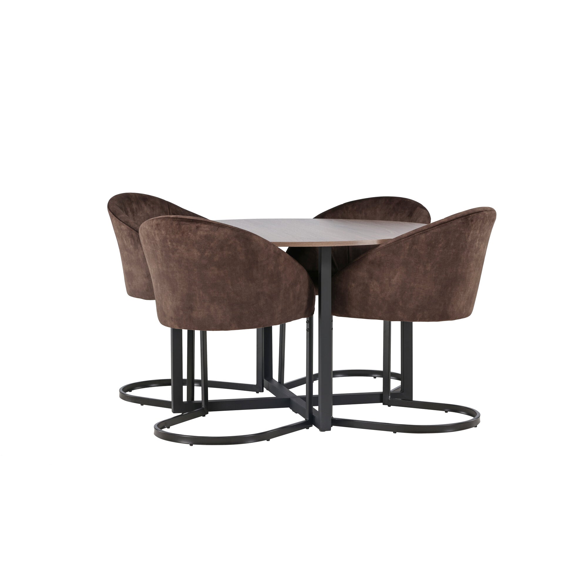 Jídelní stůl Durango – černá / ořechová MDF + večerní jídelní židle – matná hnědá / hnědá látka _4