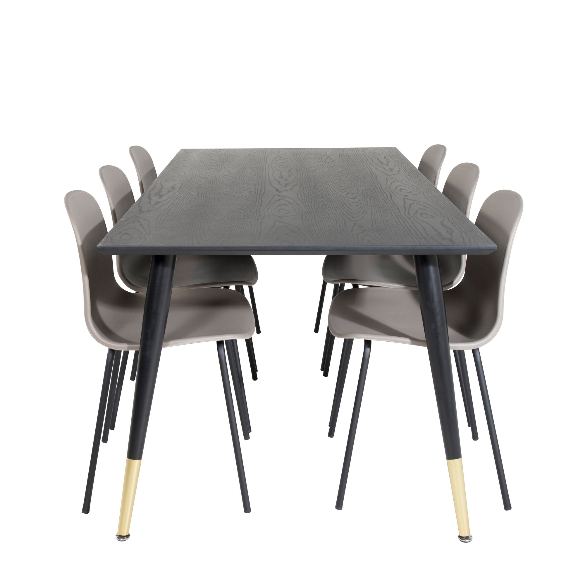 Jídelní stůl Dipp - 180*90cm - Černá / Černá mosaz+arktická jídelní židle - Černé nohy - Khaki Plast_6