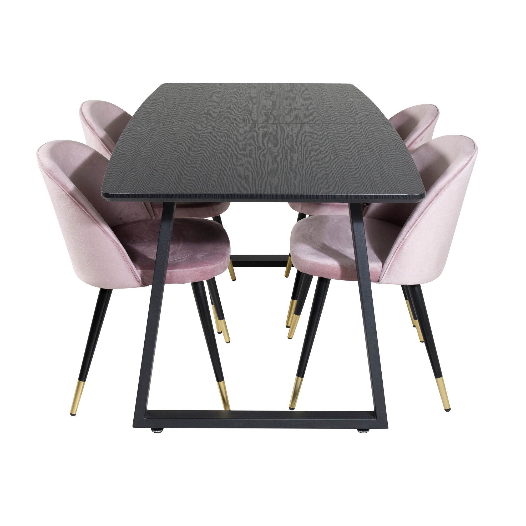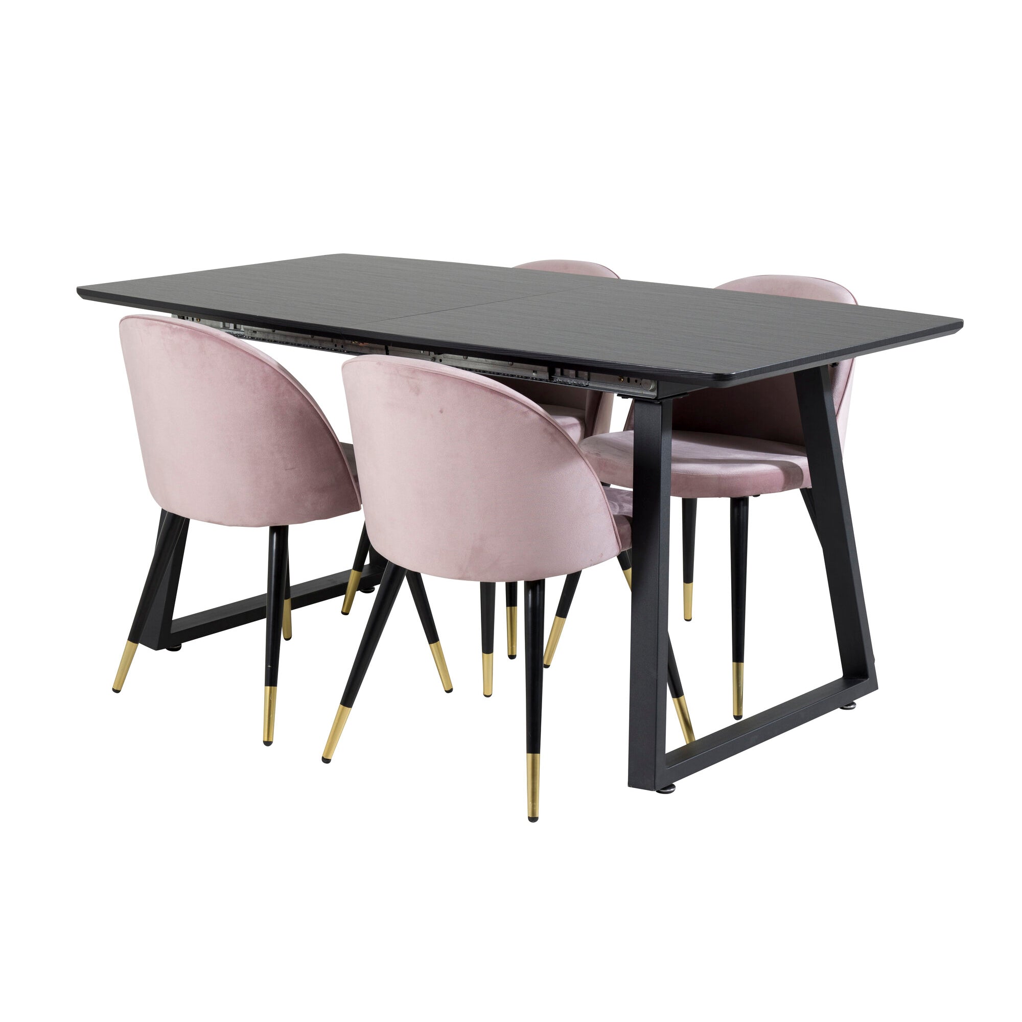 Rozšiřitelný Inca - černý top / černé nohy + sametová jídelní židle mosaz - růžová / černá_4