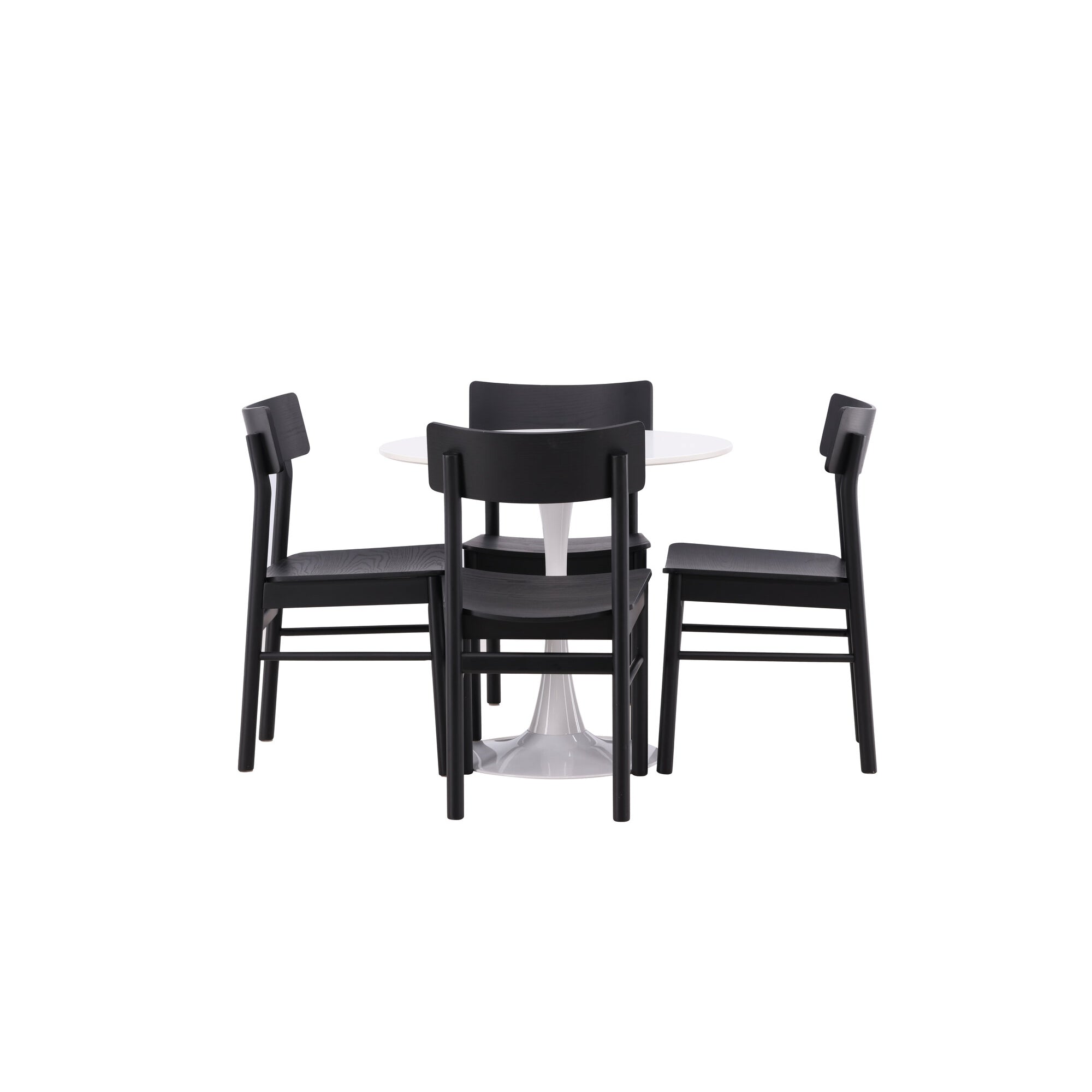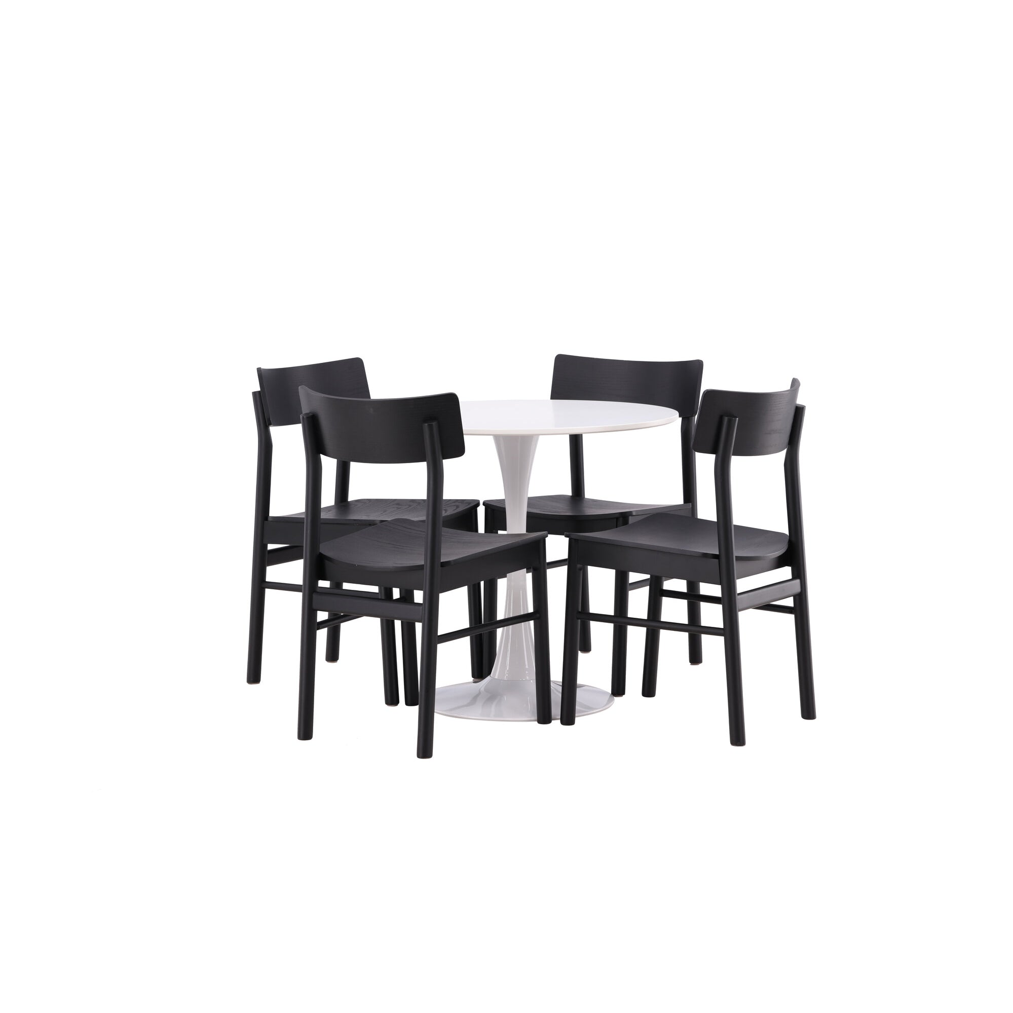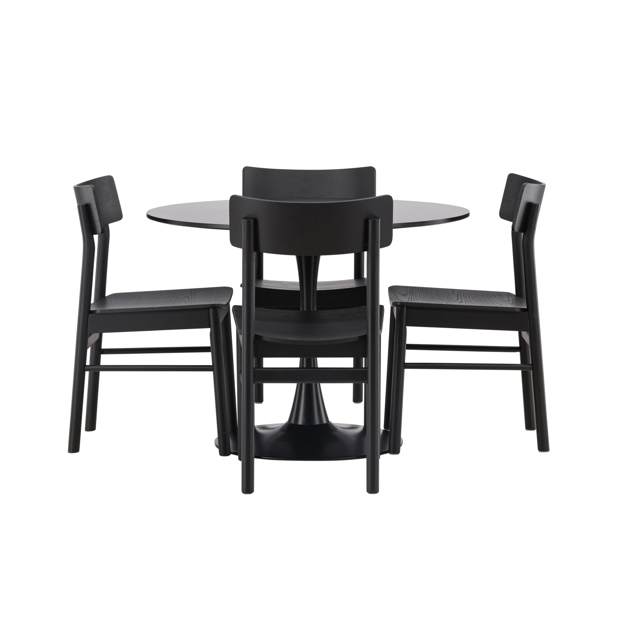 Bootcut Kulatý jídelní stůl - Černá / Černá Fanéer + Jídelní židle Tempe - Tmavě šedá / Tmavě hnědá MDF _4