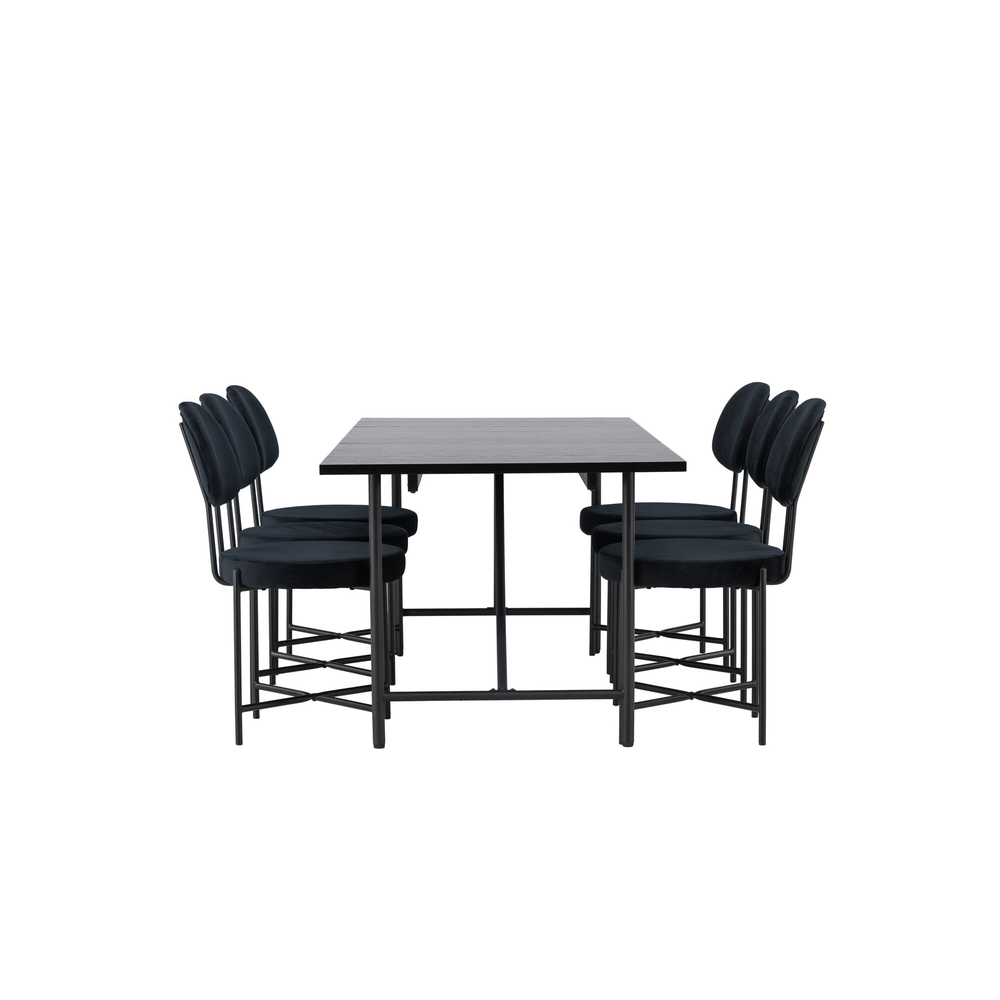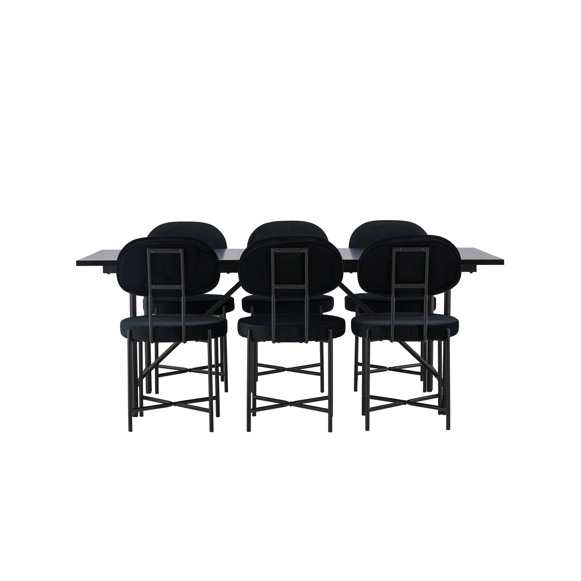 Astrid Jídelní stůl 200*75 - Matná černá / Matná černá MDF s dýhou + Jídelní židle Stella - Černá / Black Velvet _6