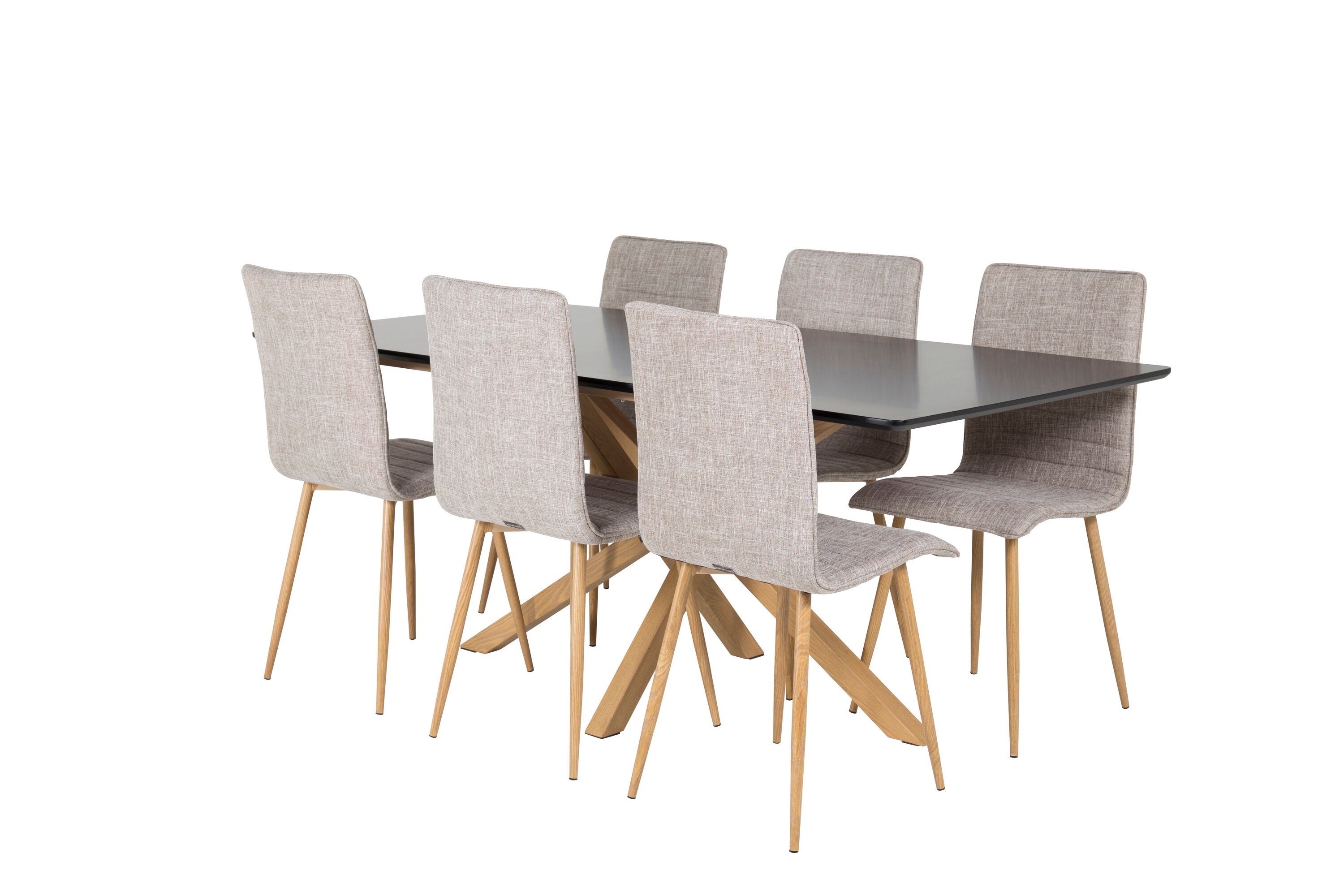 Piazza Matbord - Ek-look / svart - 180*90*75 +Jídelní židle Windu Lyx - Dub-Look / Světle šedá _6