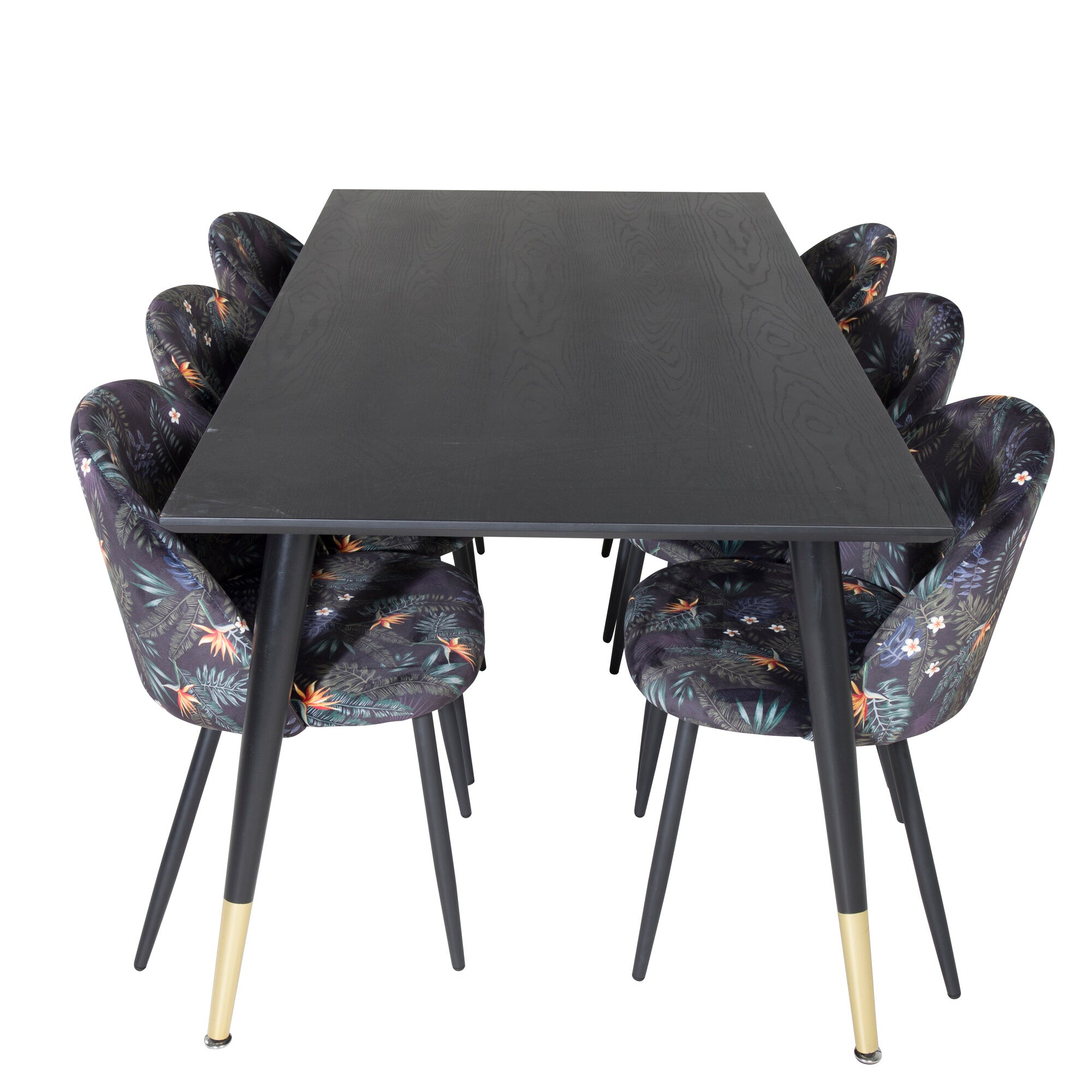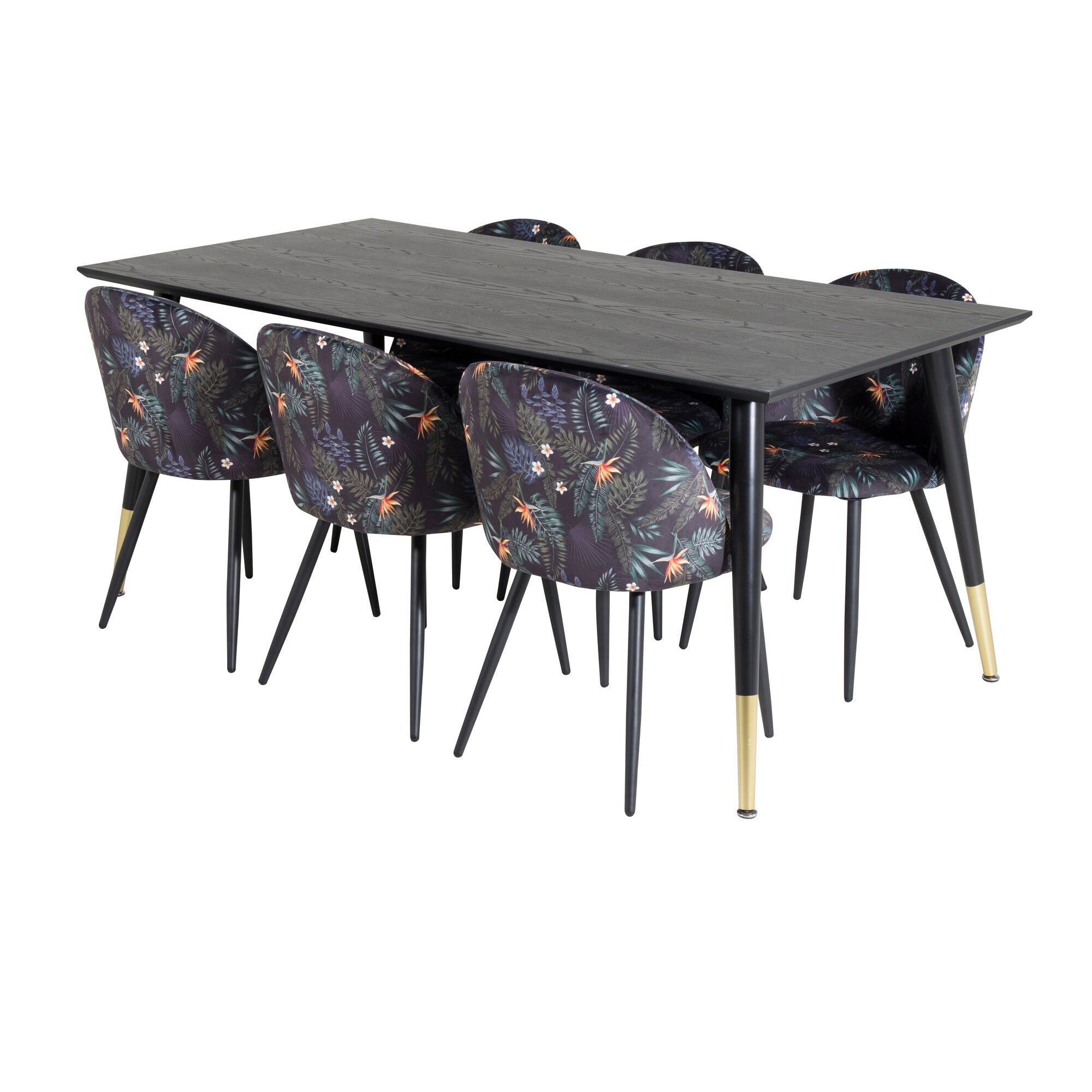 Jídelní stůl Dipp - 180*90cm - Černá / Černá mosaz + Sametová jídelní židle - Black Flower fabric_6