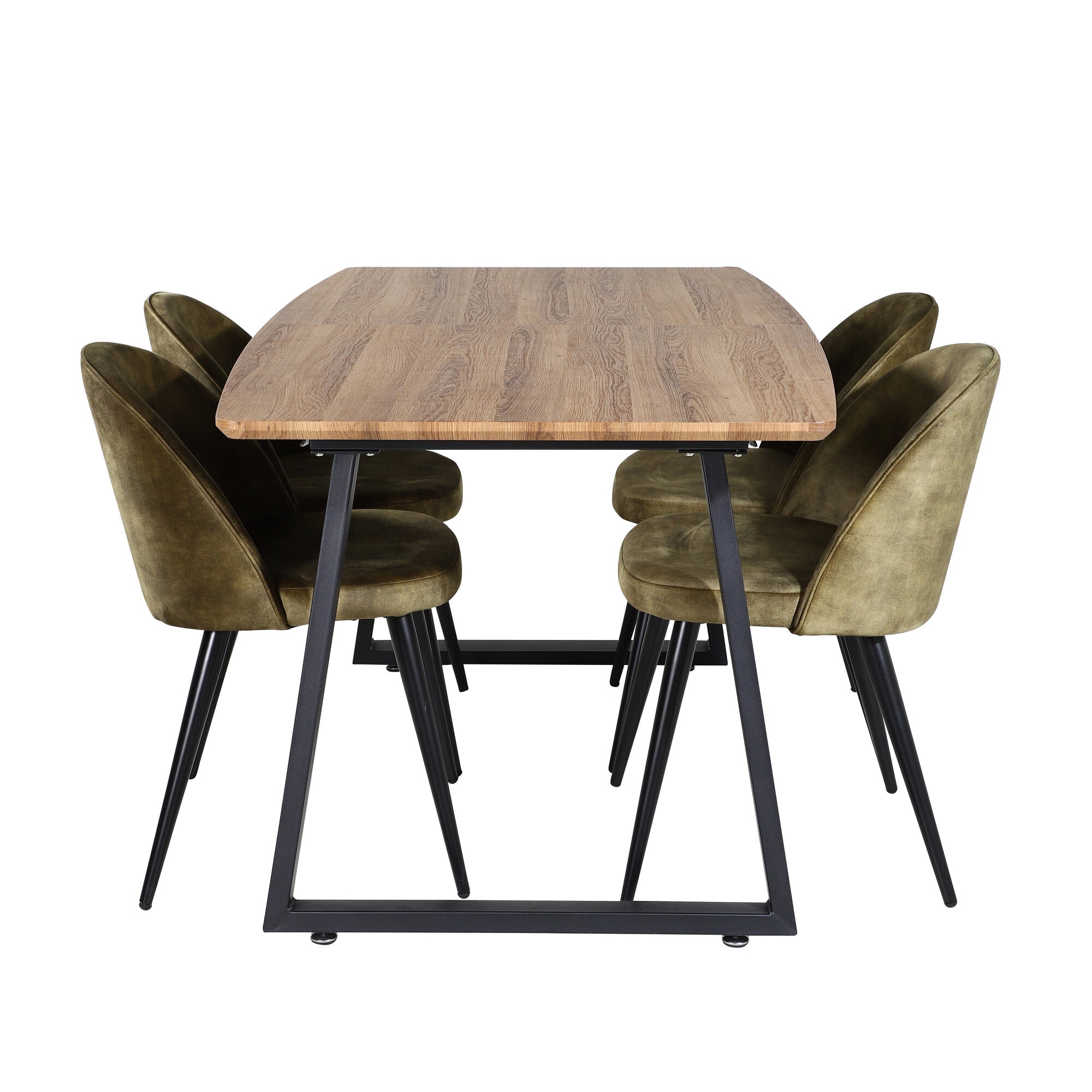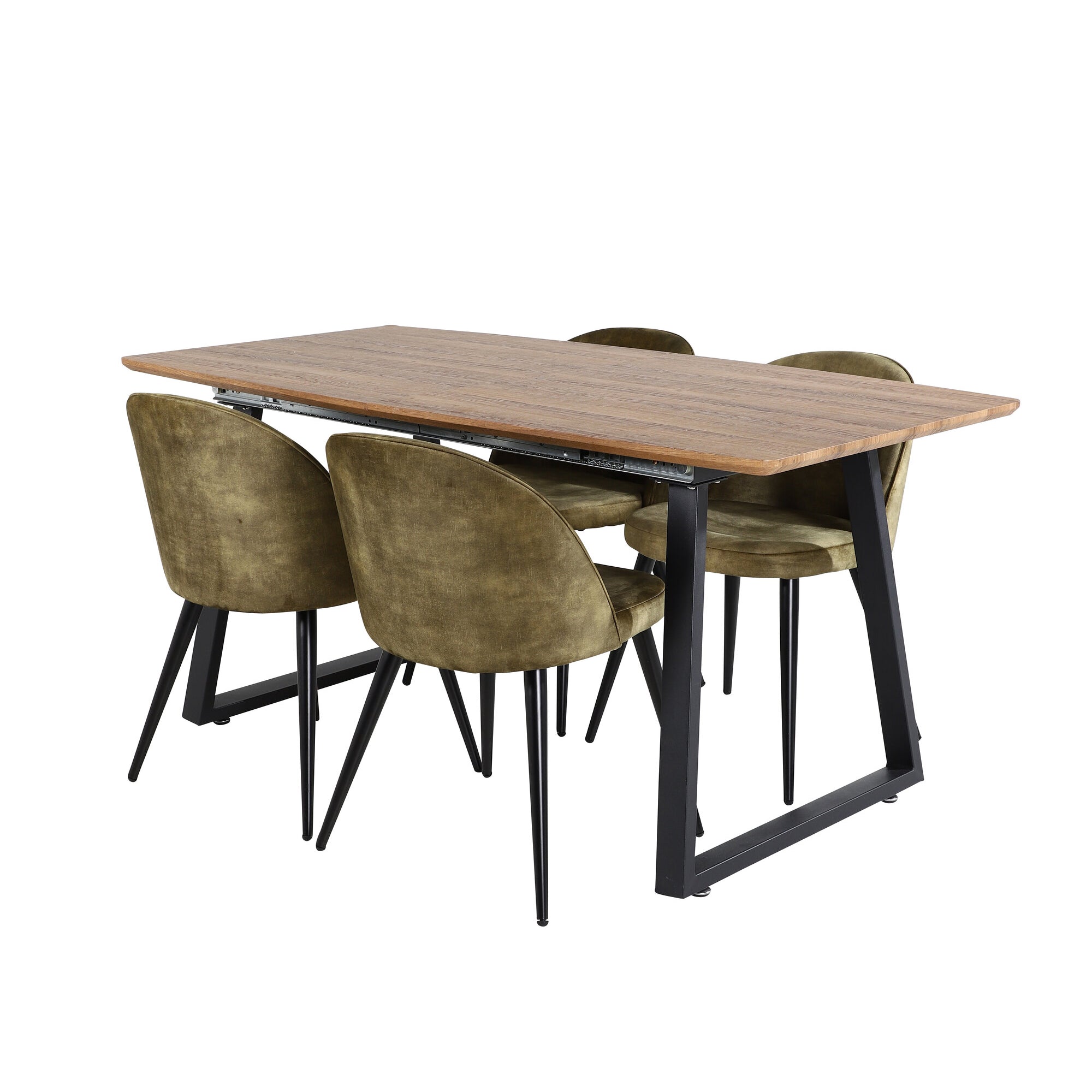 Jídelní stůl Inca - 160/200*85*H75 - Dub / Black+Velvet Jídelní křeslo - Černé nohy - Dusty Green Velvet_4