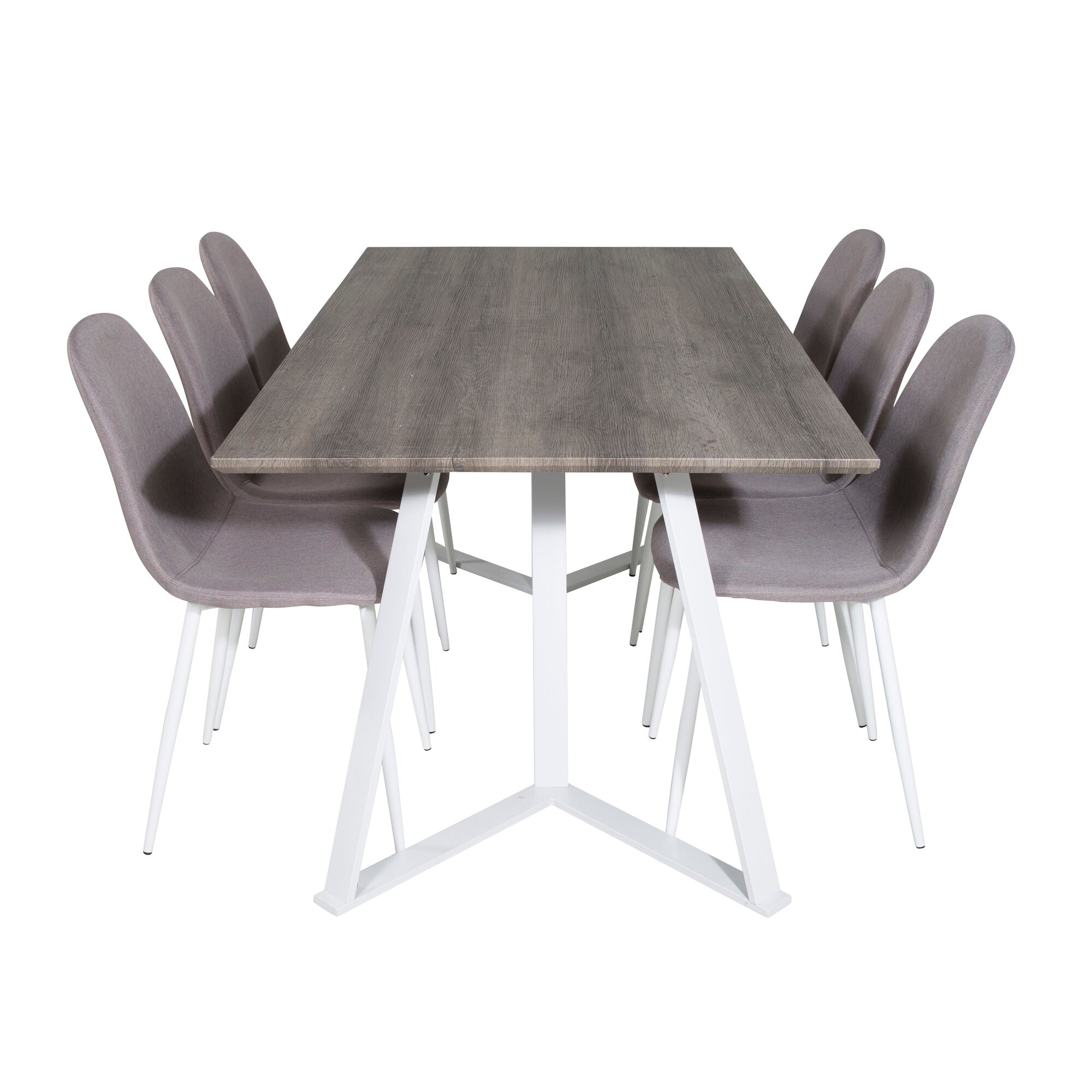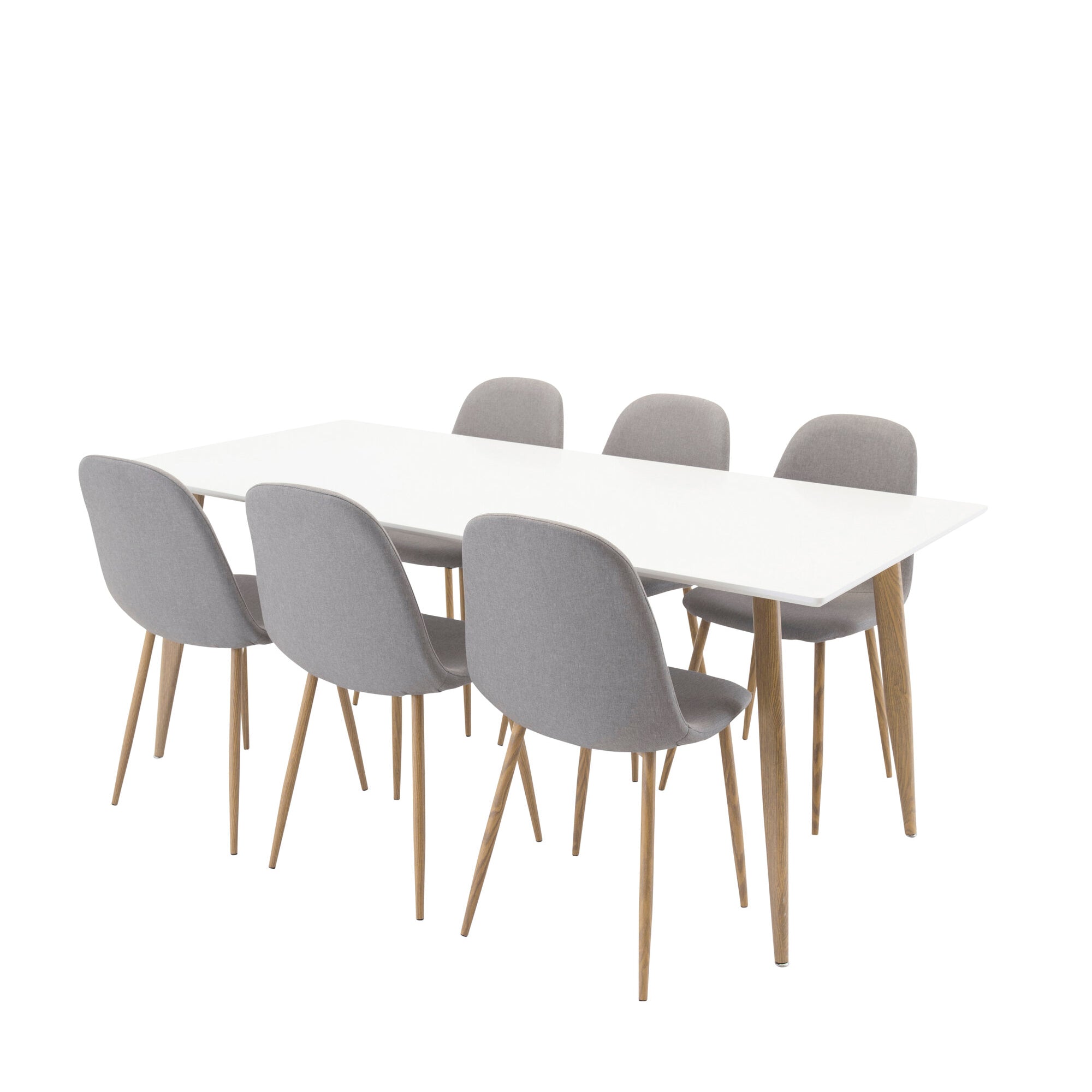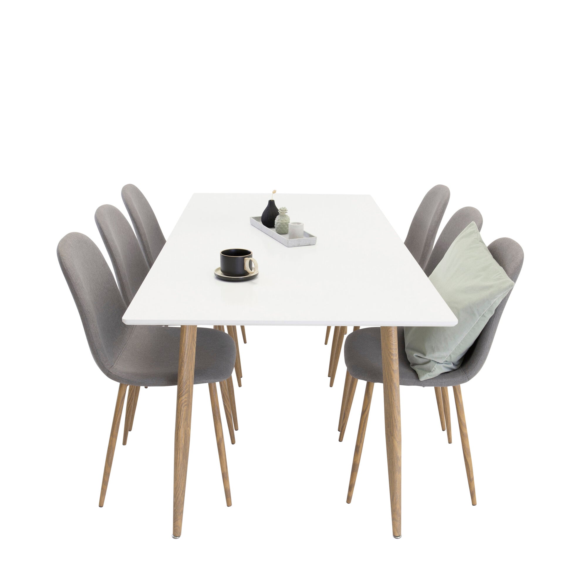 Polar Matbord - Ek-Look / Vit- 180*90*H75 +Polar Jídelní židle Dubové nohy / Šedá látka _6