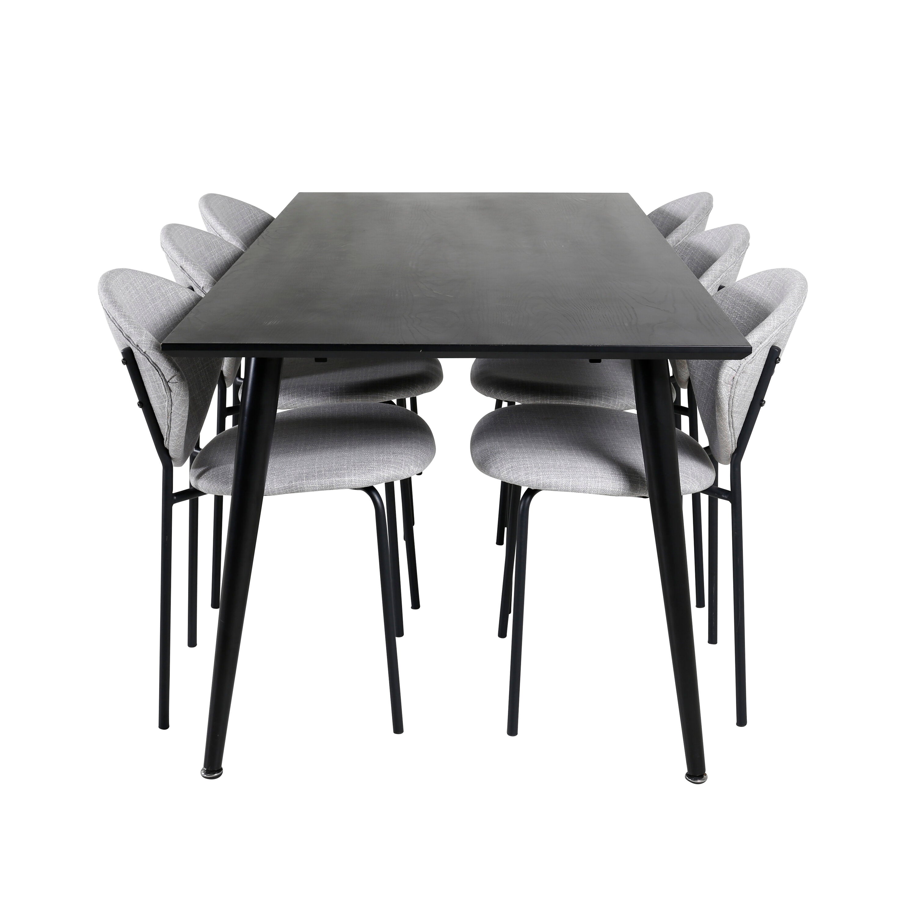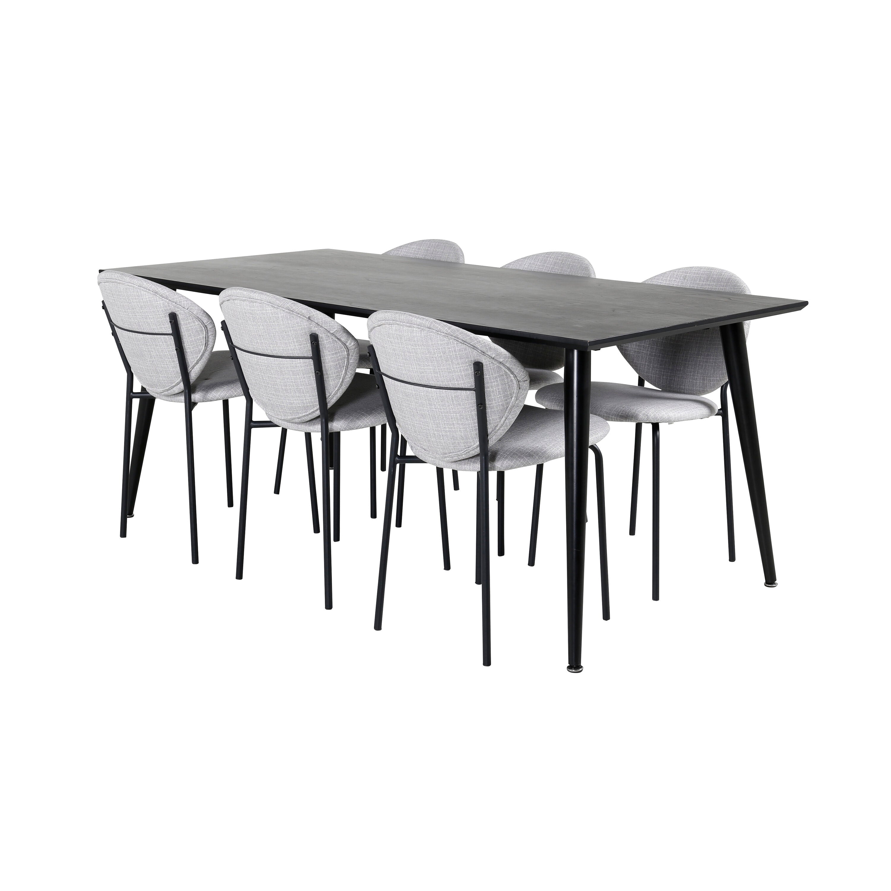 Jídelní stůl Marina - Černá deska / Černé nohy + Jídelní židle Vault - Černé nohy - Šedá látka_6