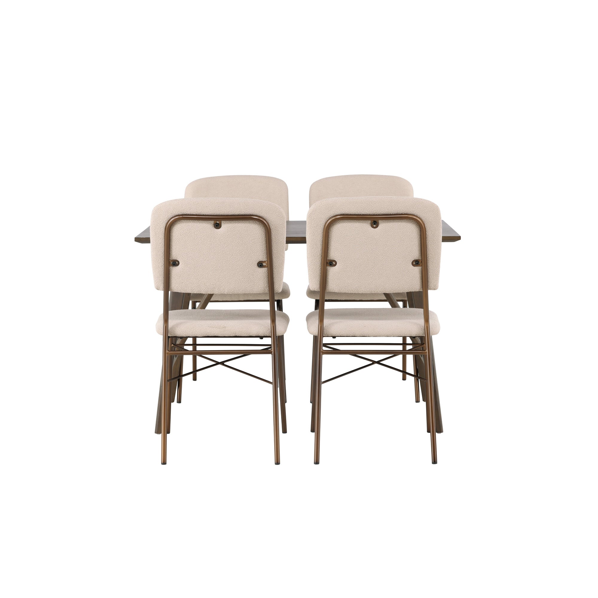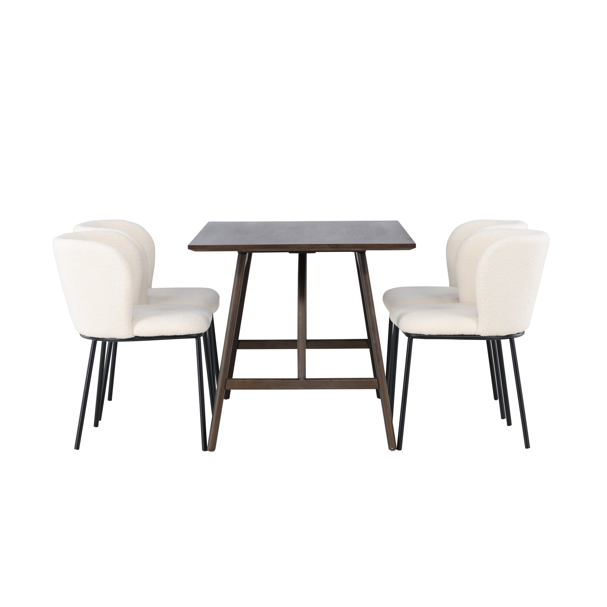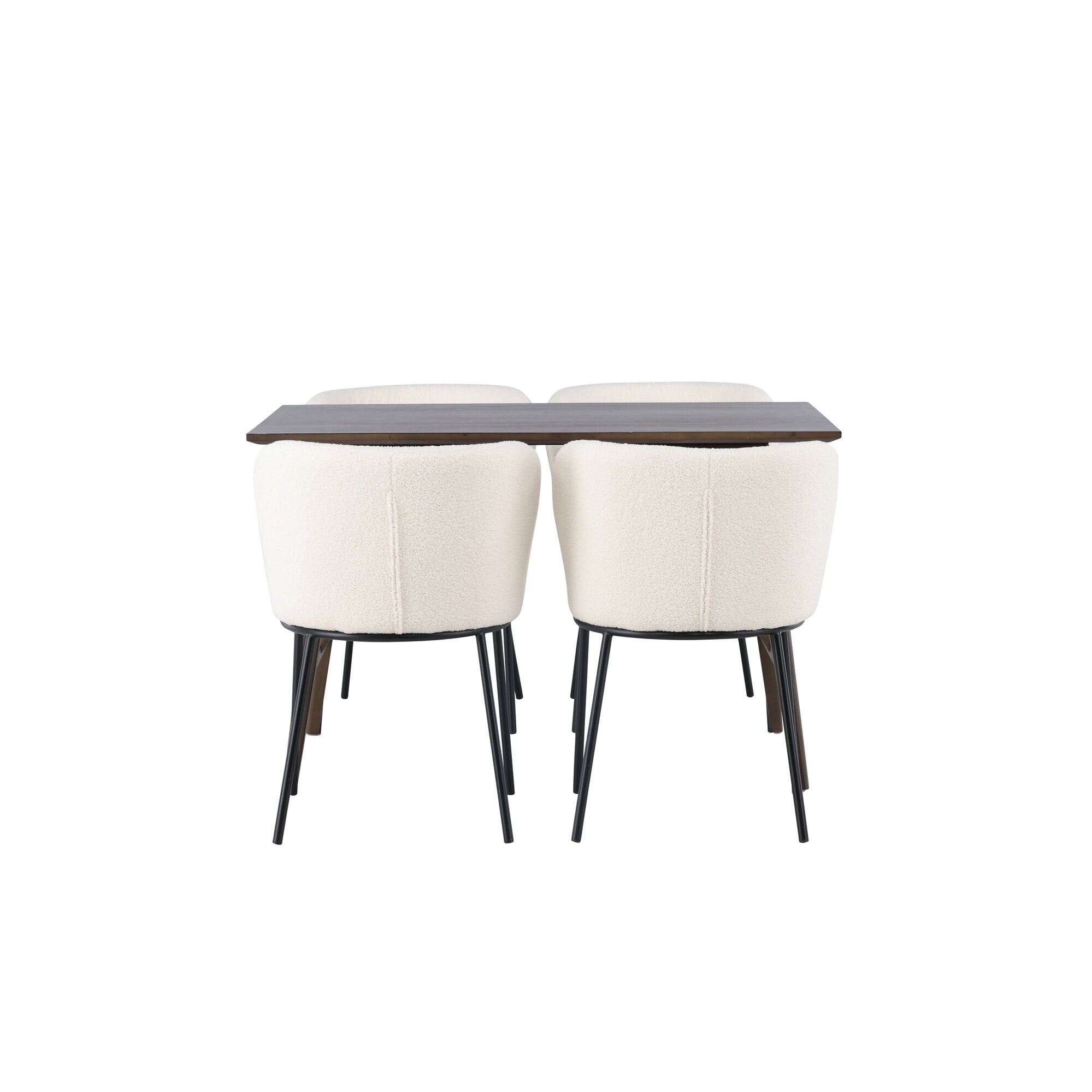 Jídelní stůl Kaseidon – kaučukové dřevo / tmavě hnědá MDF + jídelní židle Edina – černá / bílá Boucle _4