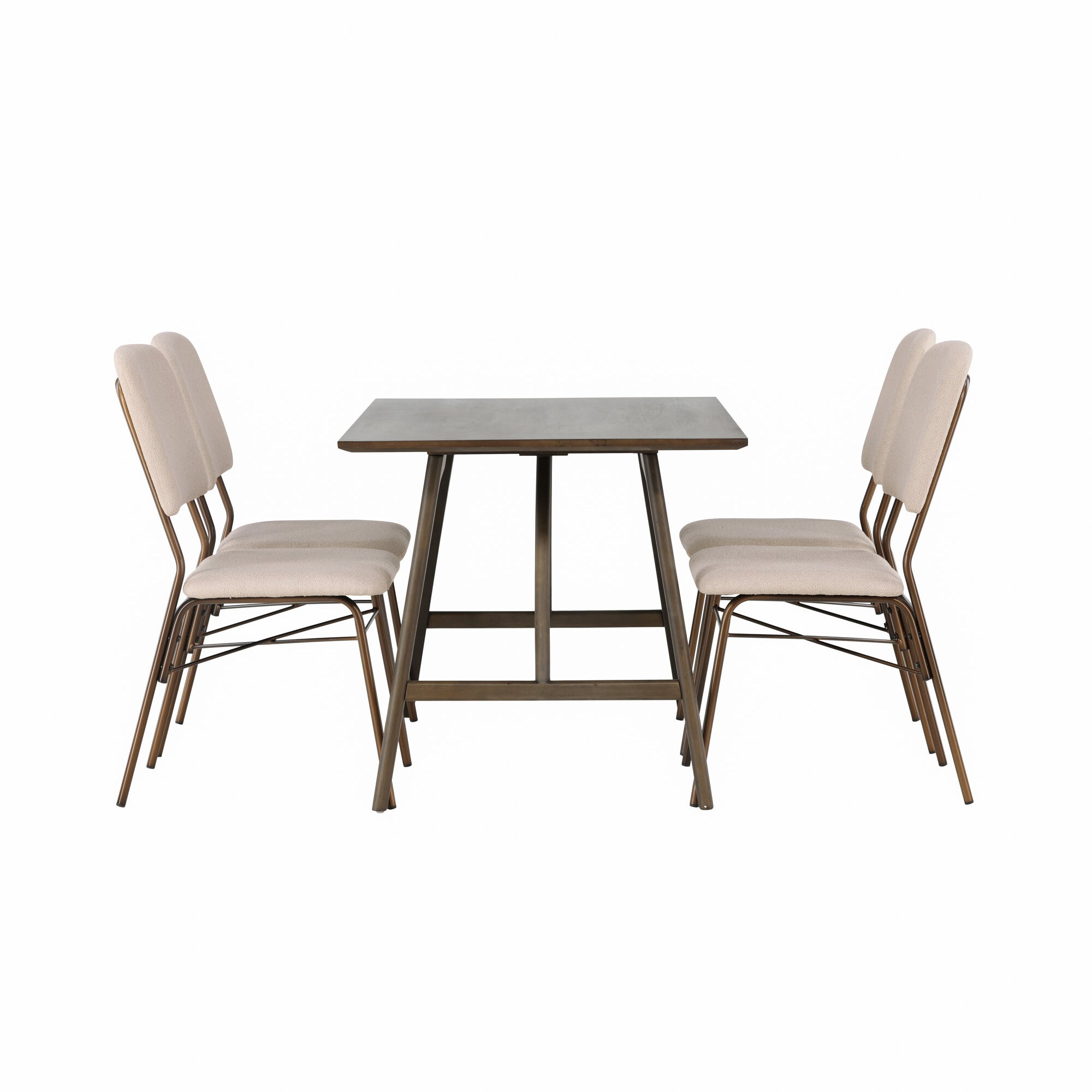 Jídelní stůl Kaseidon – kaučukové dřevo / tmavě hnědá MDF + jídelní židle Seda – matná hnědá / béžová látka _4