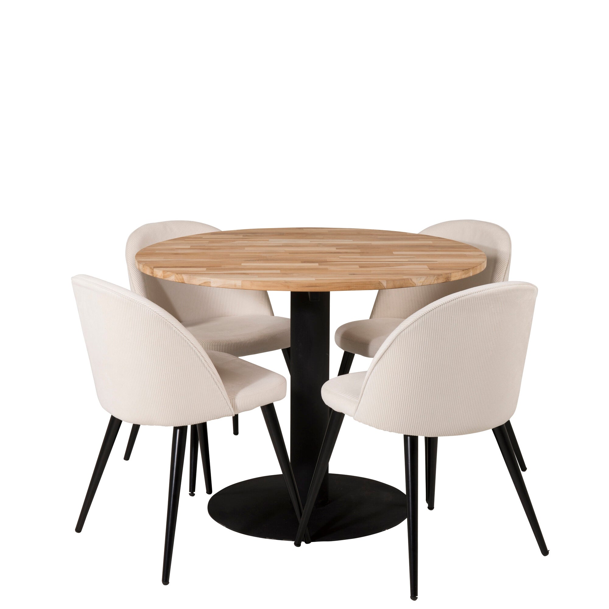 Kruhový stůl Cirebon - 100 cm - Teak / Černá + Sametová jídelní židle - Černé nohy /