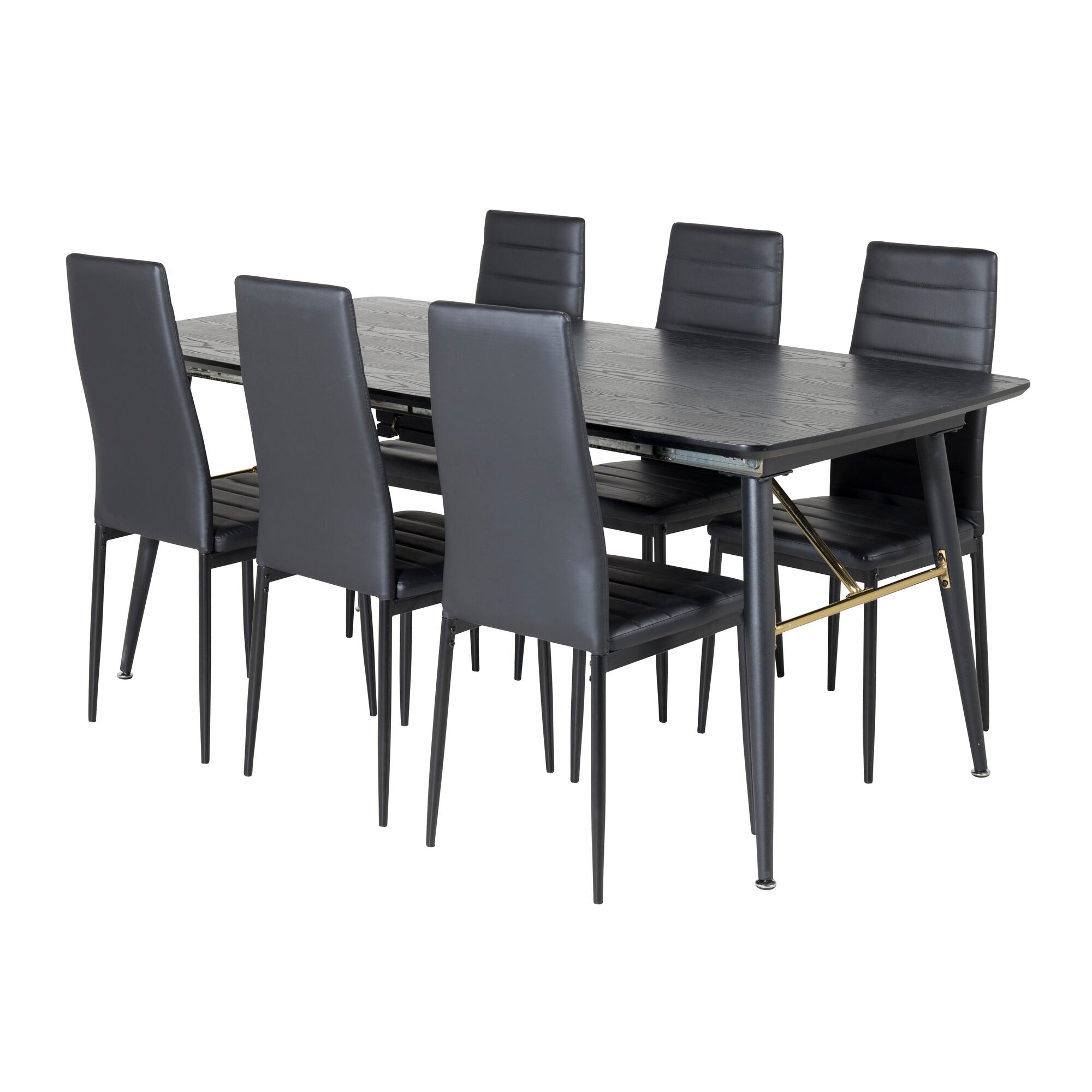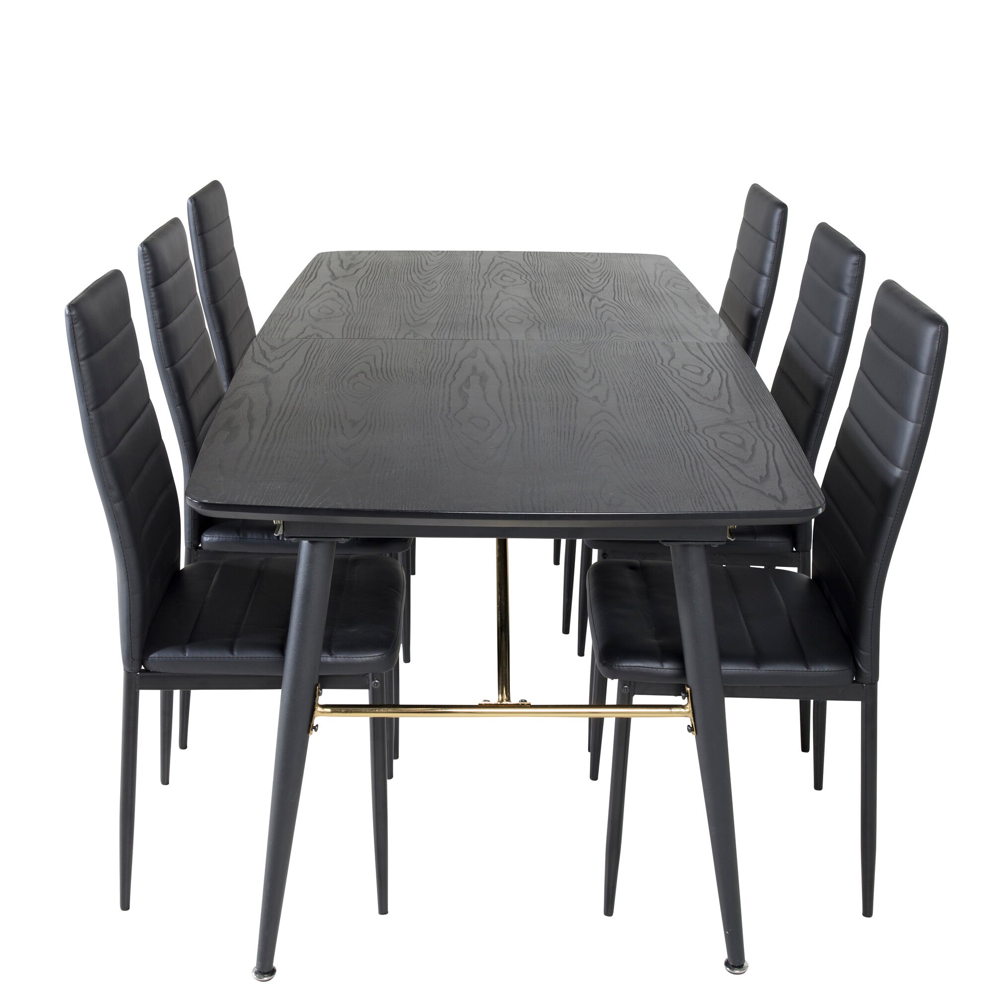 Zlatý rozkládací stůl - 180/220*85*H76 Černá dýha - Černé nohy - Mosazné detaily+Slim High Back Jídelní židle - Černé nohy - Černá PU_6