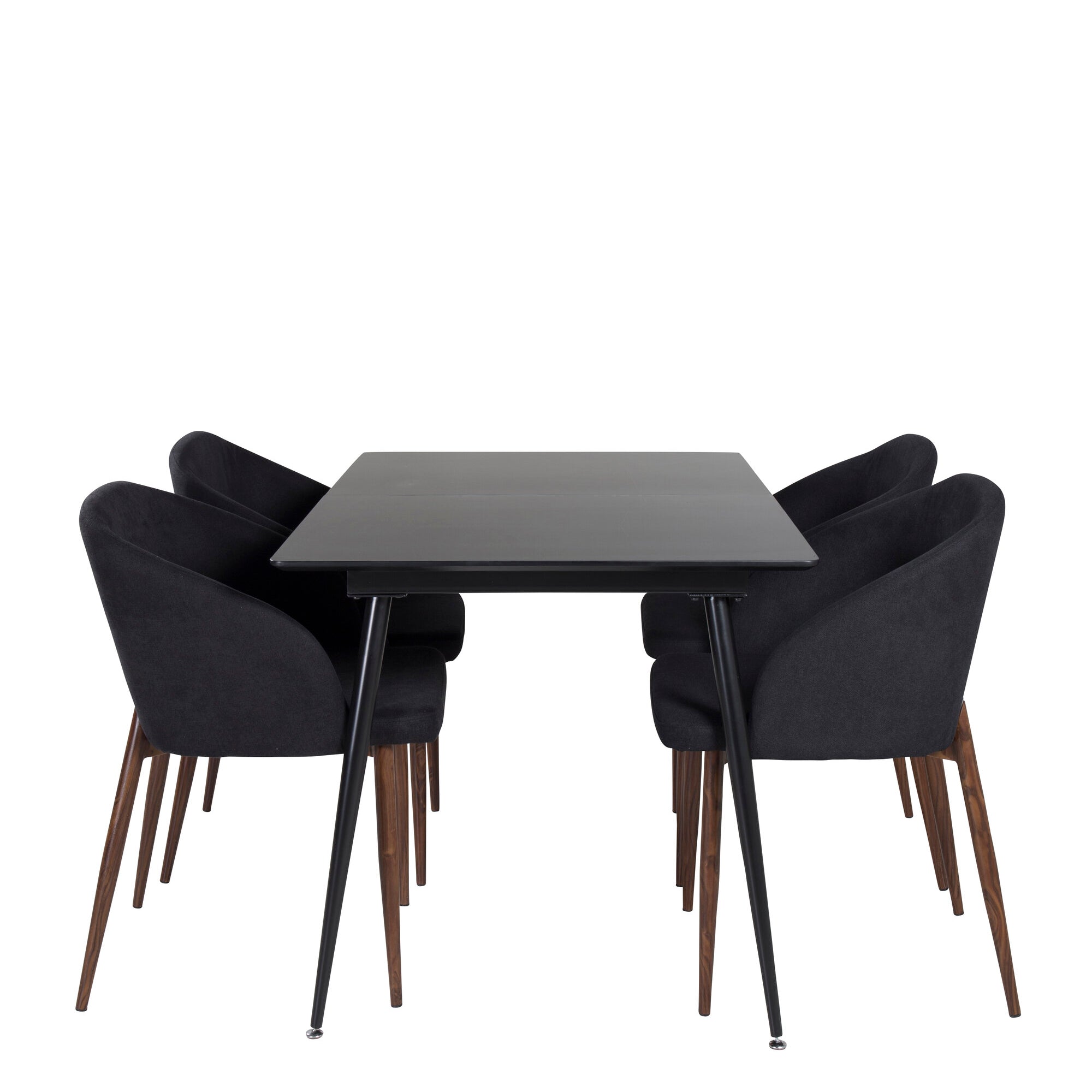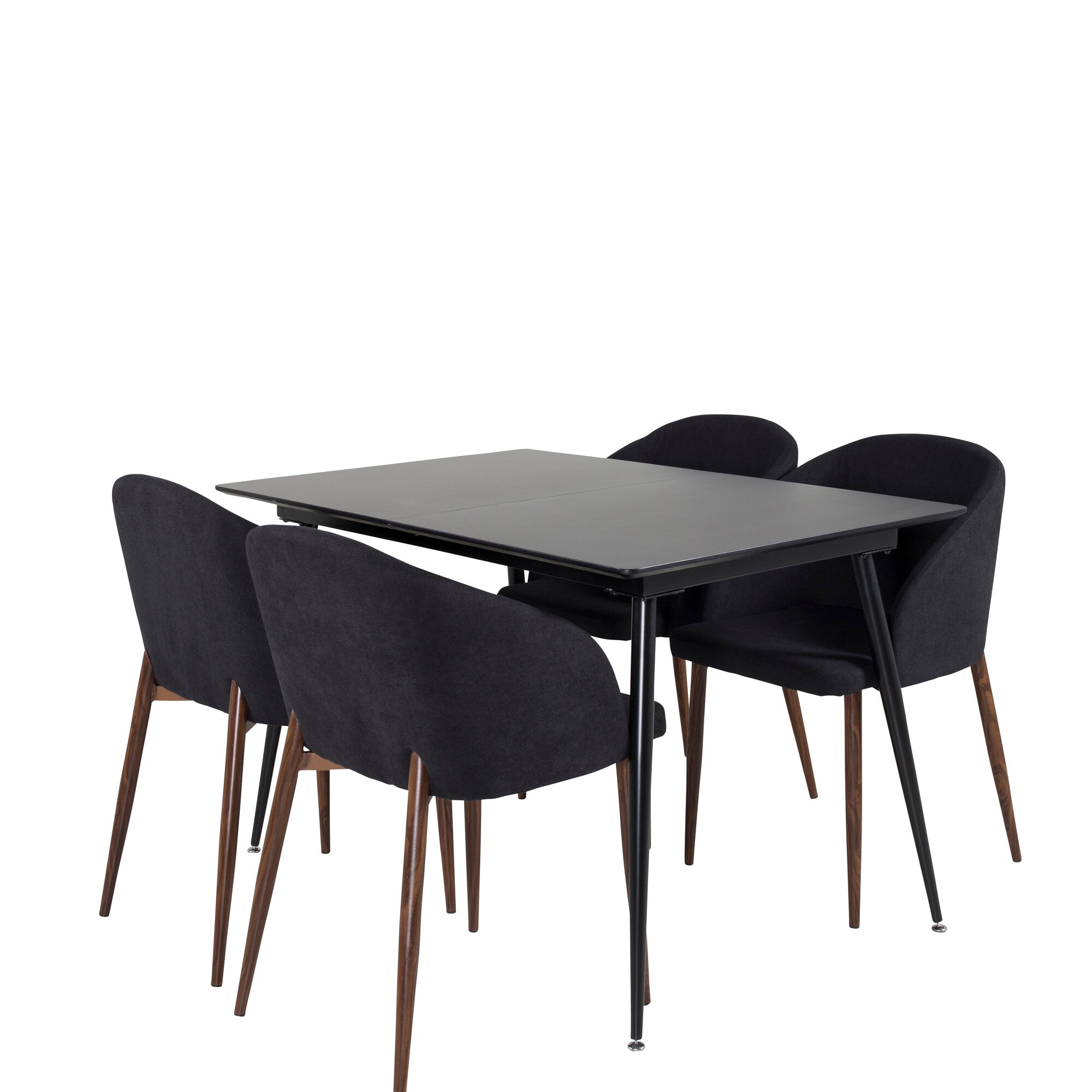 Prodlužovací stůl Silar – černý melamin/černé nohy+oblouková jídelní židle – ořechové nohy – černá látka_4