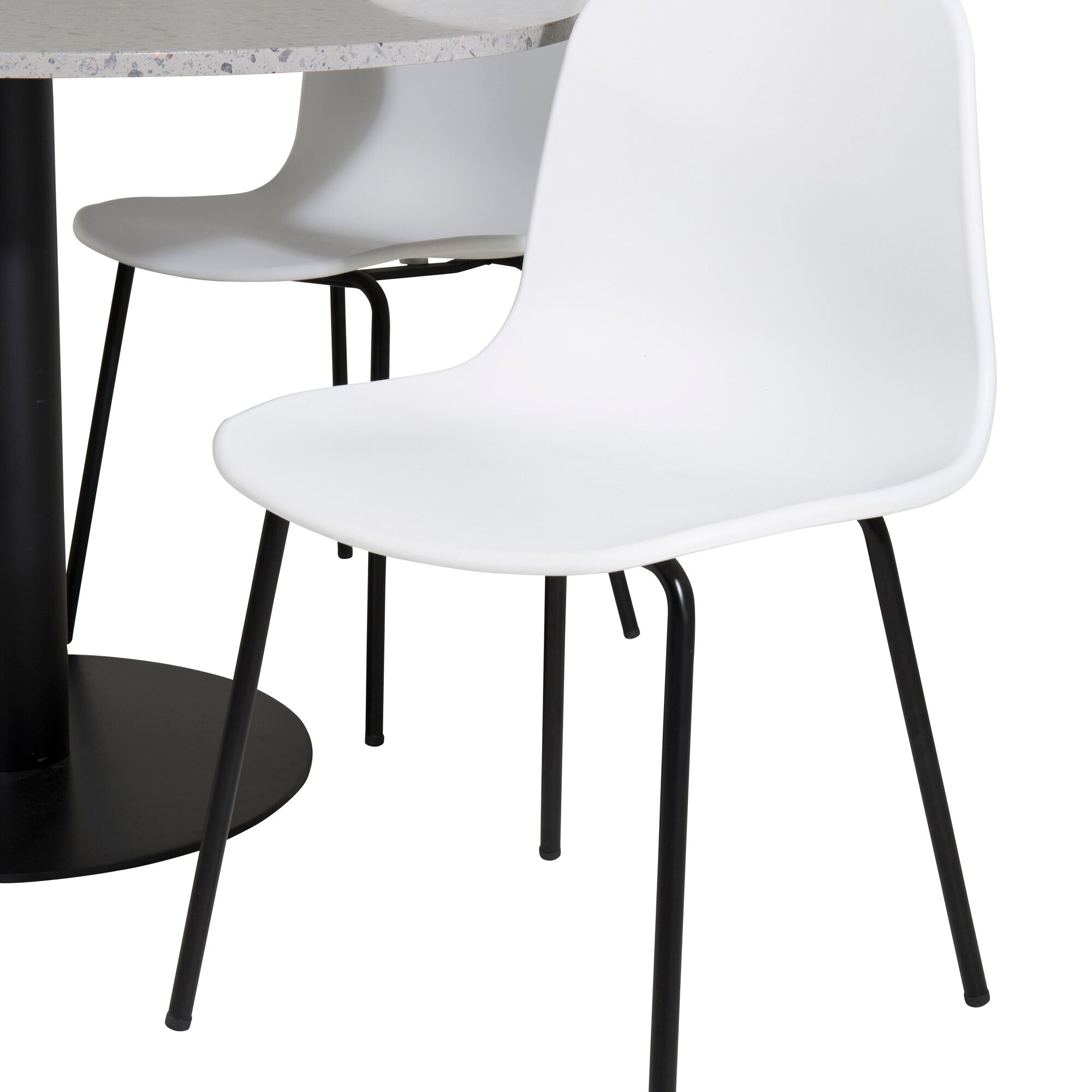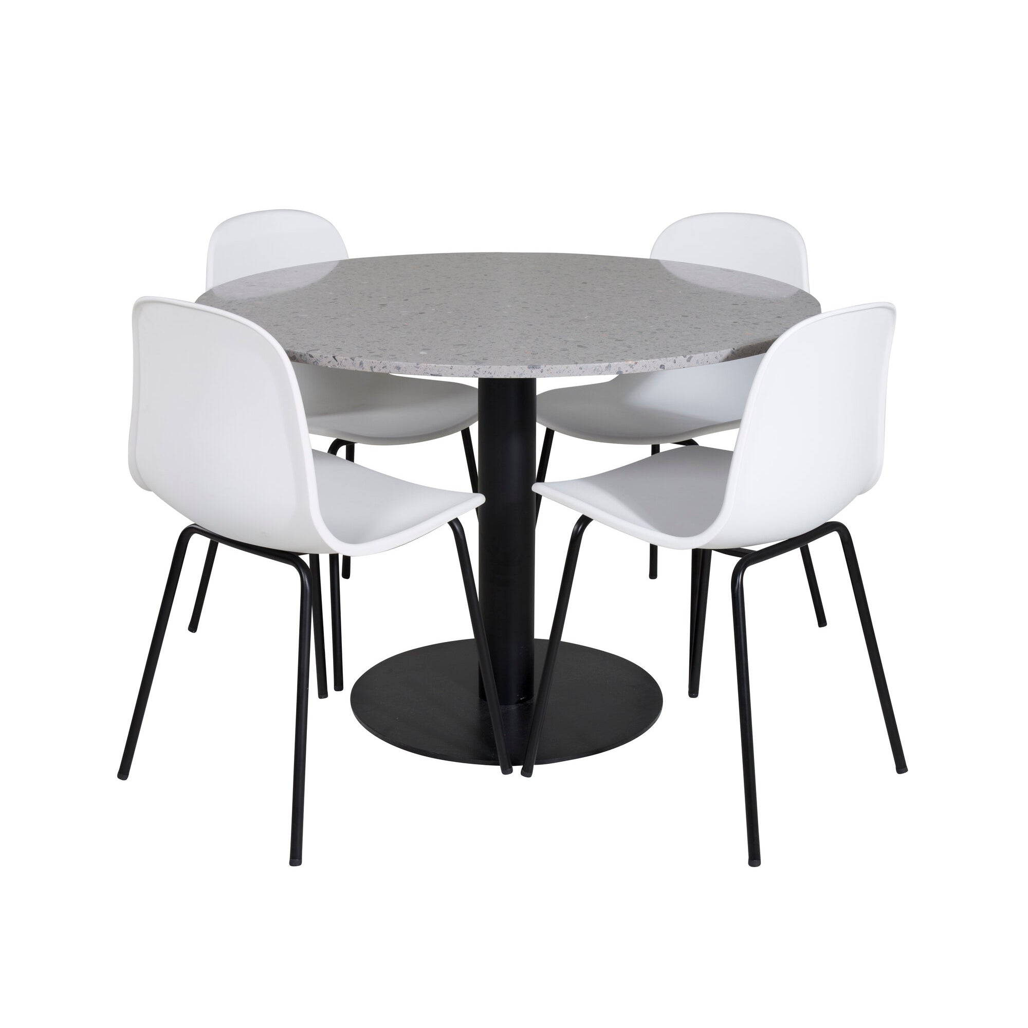 Razzia Jídelní stůl ø106cm - Šedá / Černá + Jídelní židle Arctic - Černé nohy - Bílý Plast_4