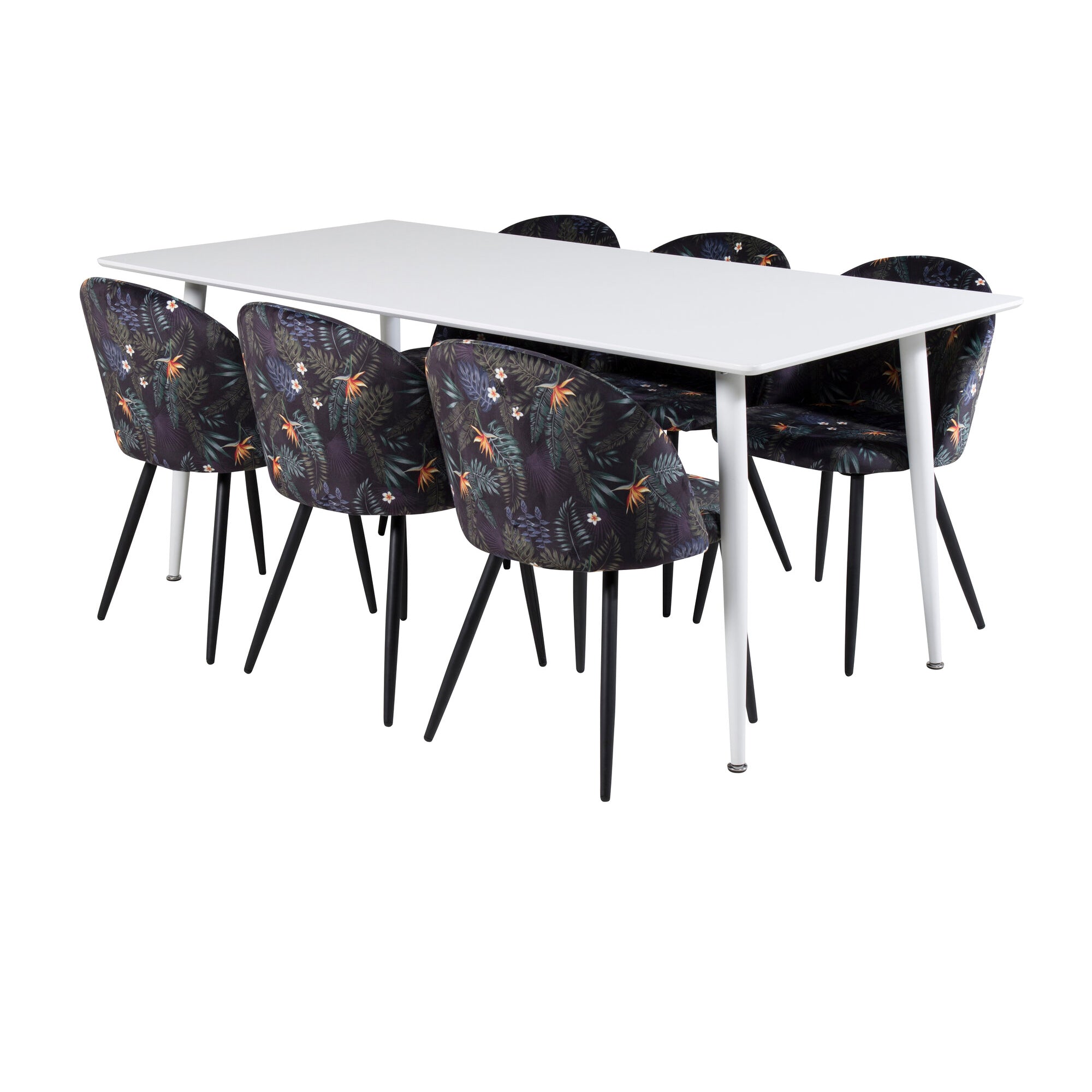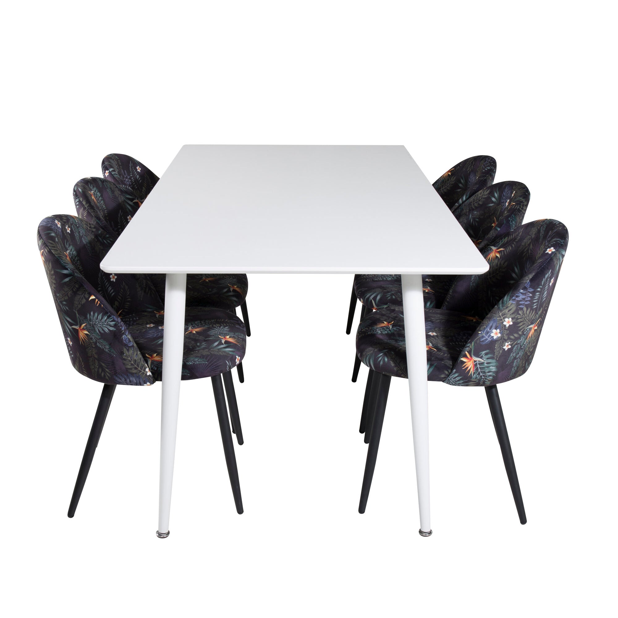 Jídelní stůl Polar 180 cm - Bílá deska / Bílé nohy+Sametová jídelní židle - Black Flower fabric_6