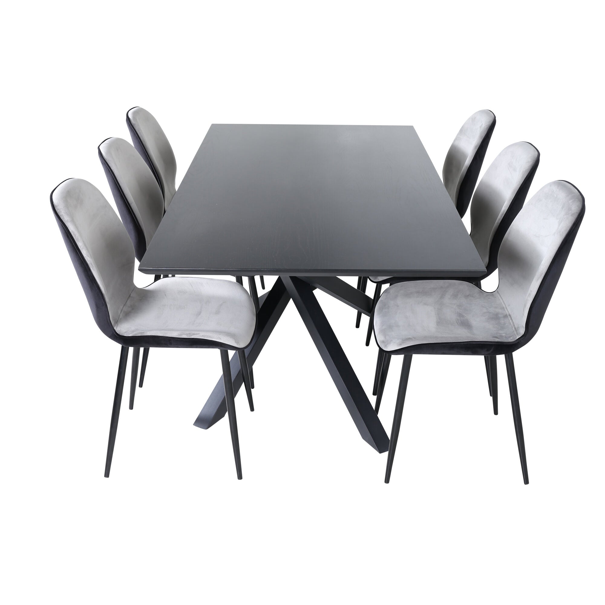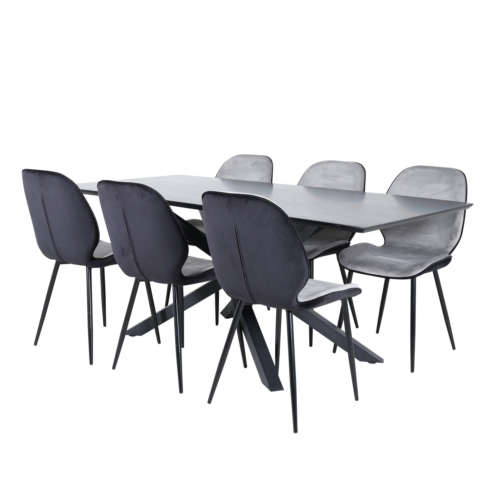Jídelní stůl Piazza - černá / černá dýha + židle Emma - černá / černá a světle šedá Černý samet vzadu Šedý samet vpředu_6