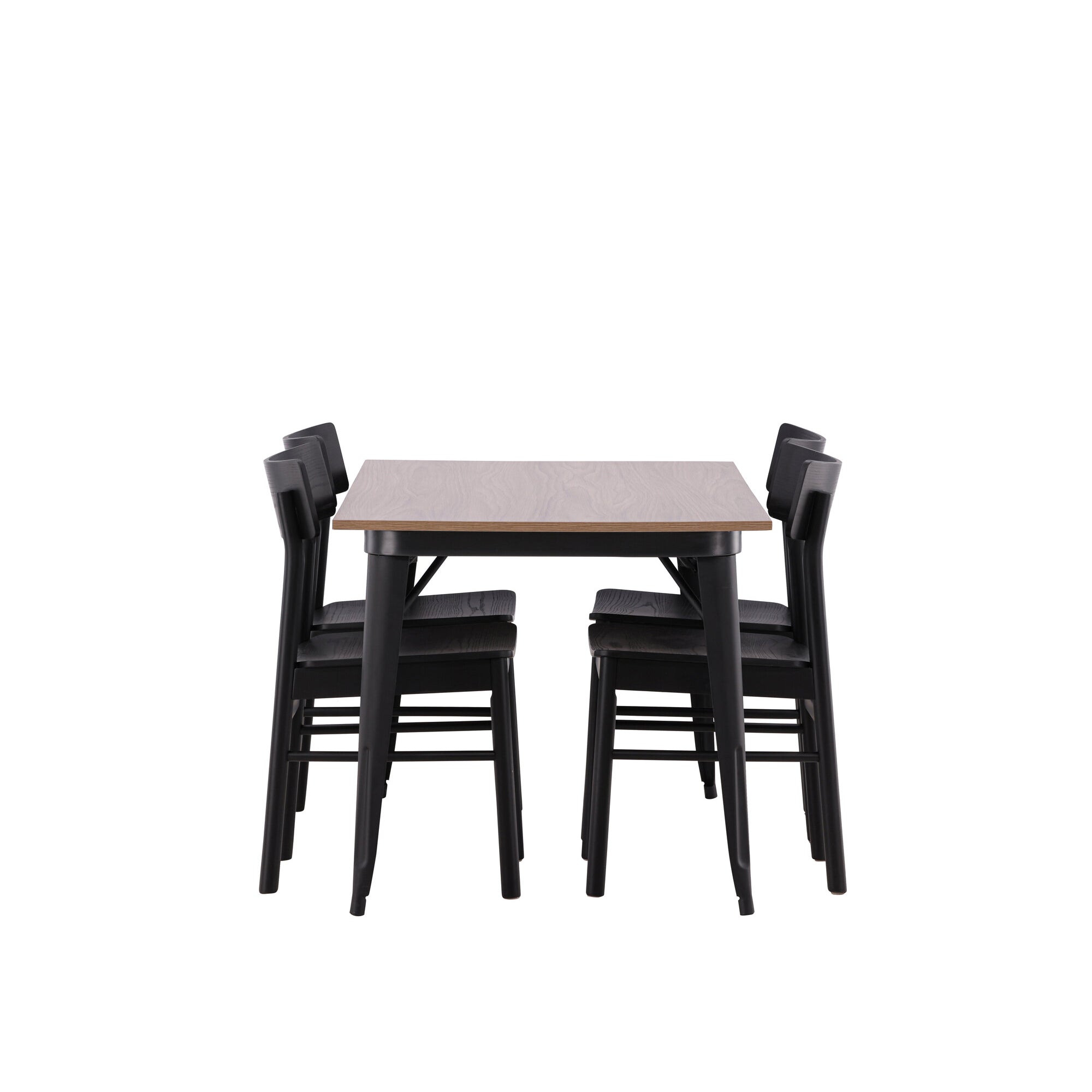 Jídelní stůl Tempe - Černá / Ořech MDF + Jídelní židle Montros - Přírodní / Přírodní kaučukové dřevo _4