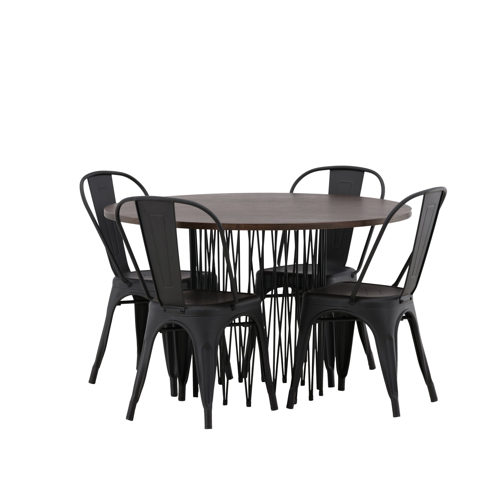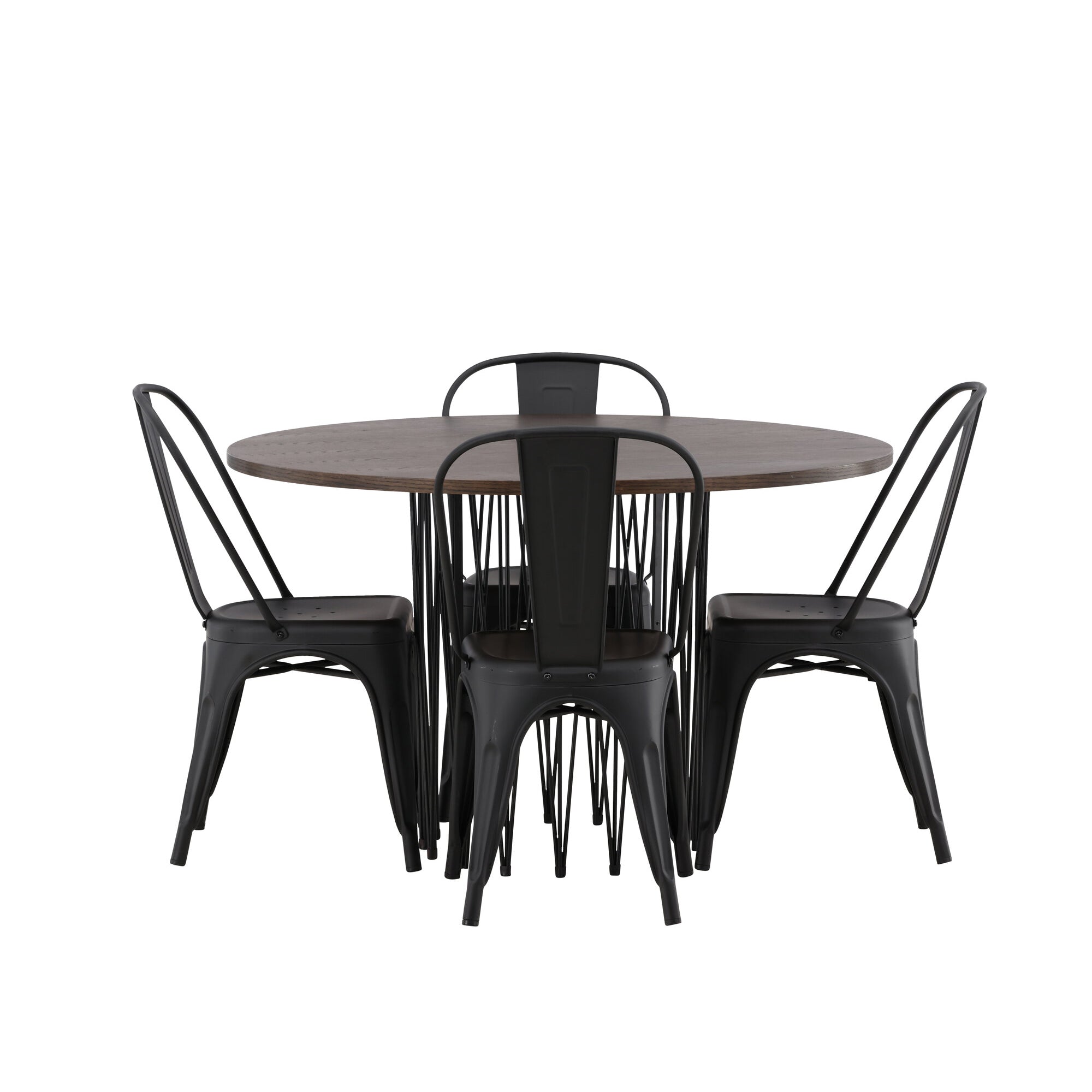 Kamenný kulatý jídelní stůl - černá / mocca dýha + jídelní židle Tempe - matná černá / kov _4