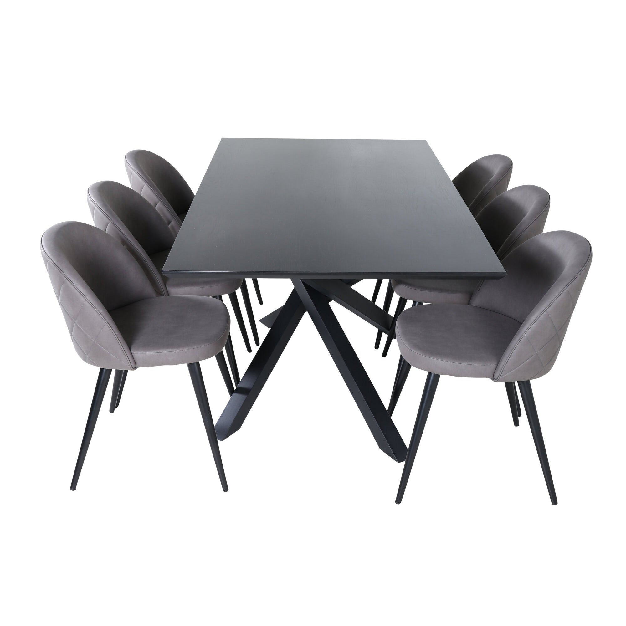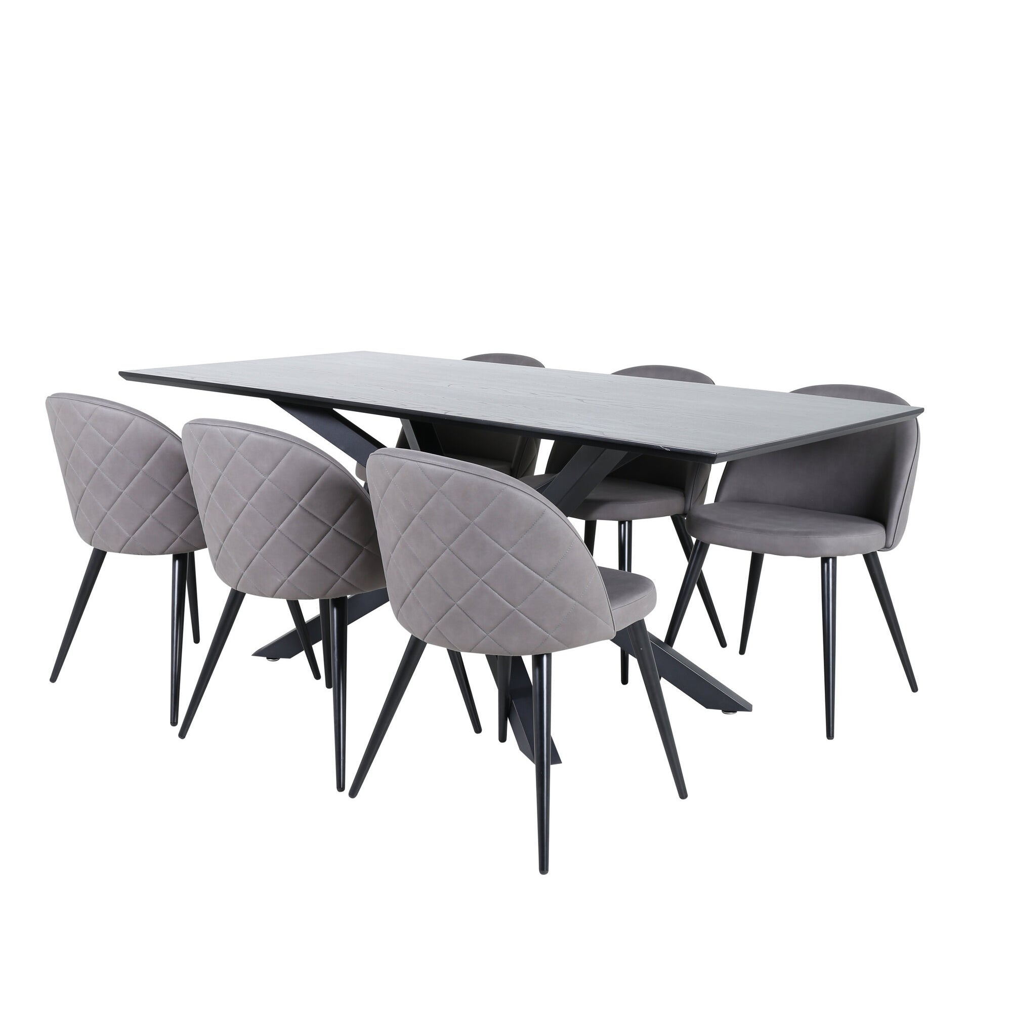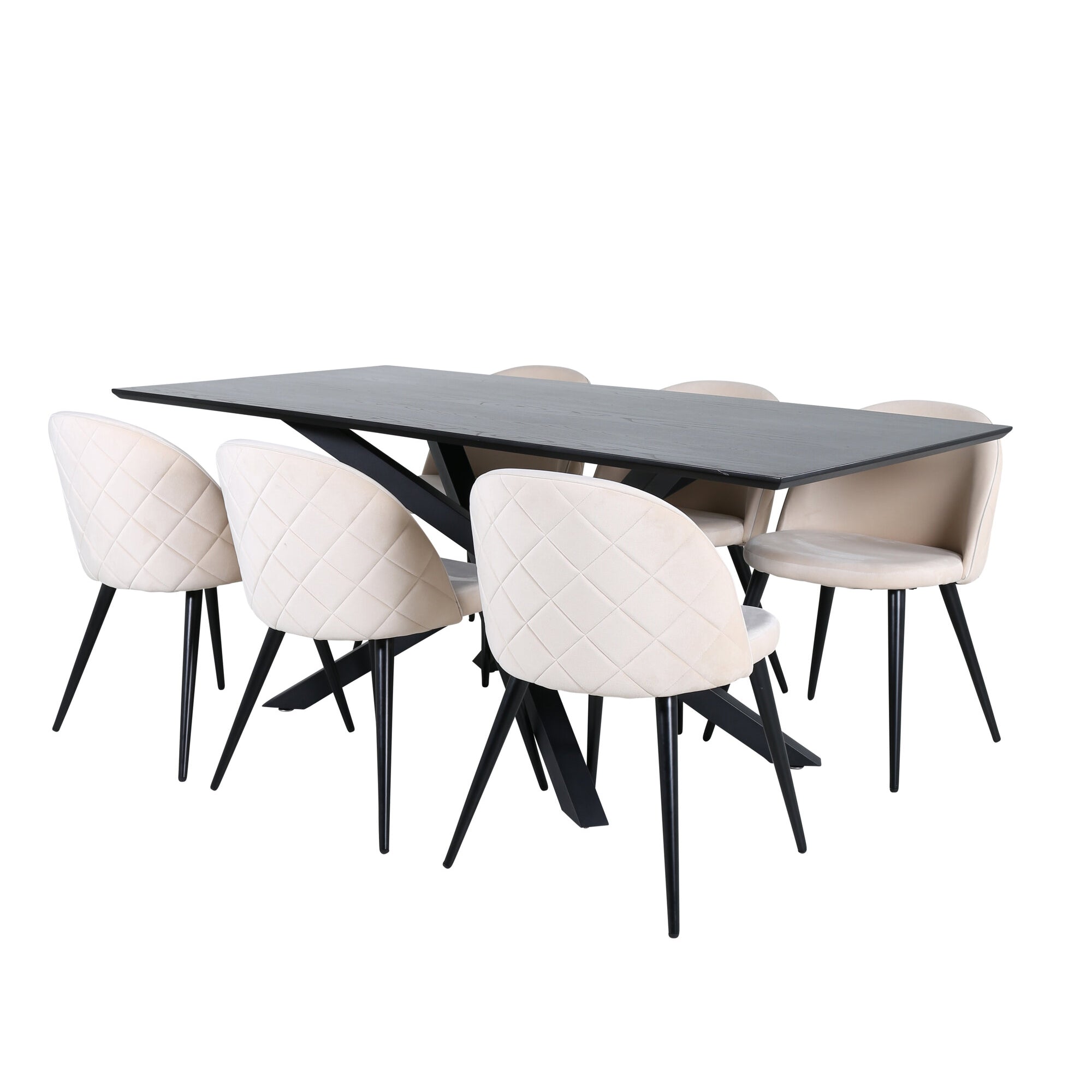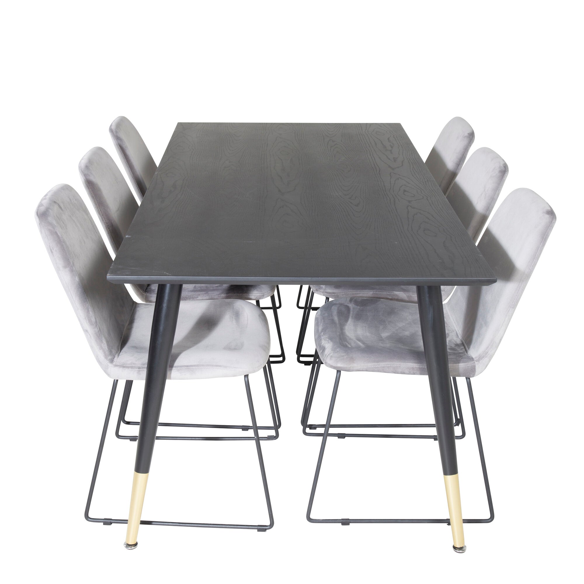 Dipp Jídelní stůl - 180*90cm - Černá dýha / celé černé nohy + Velvet Jídelní Ch