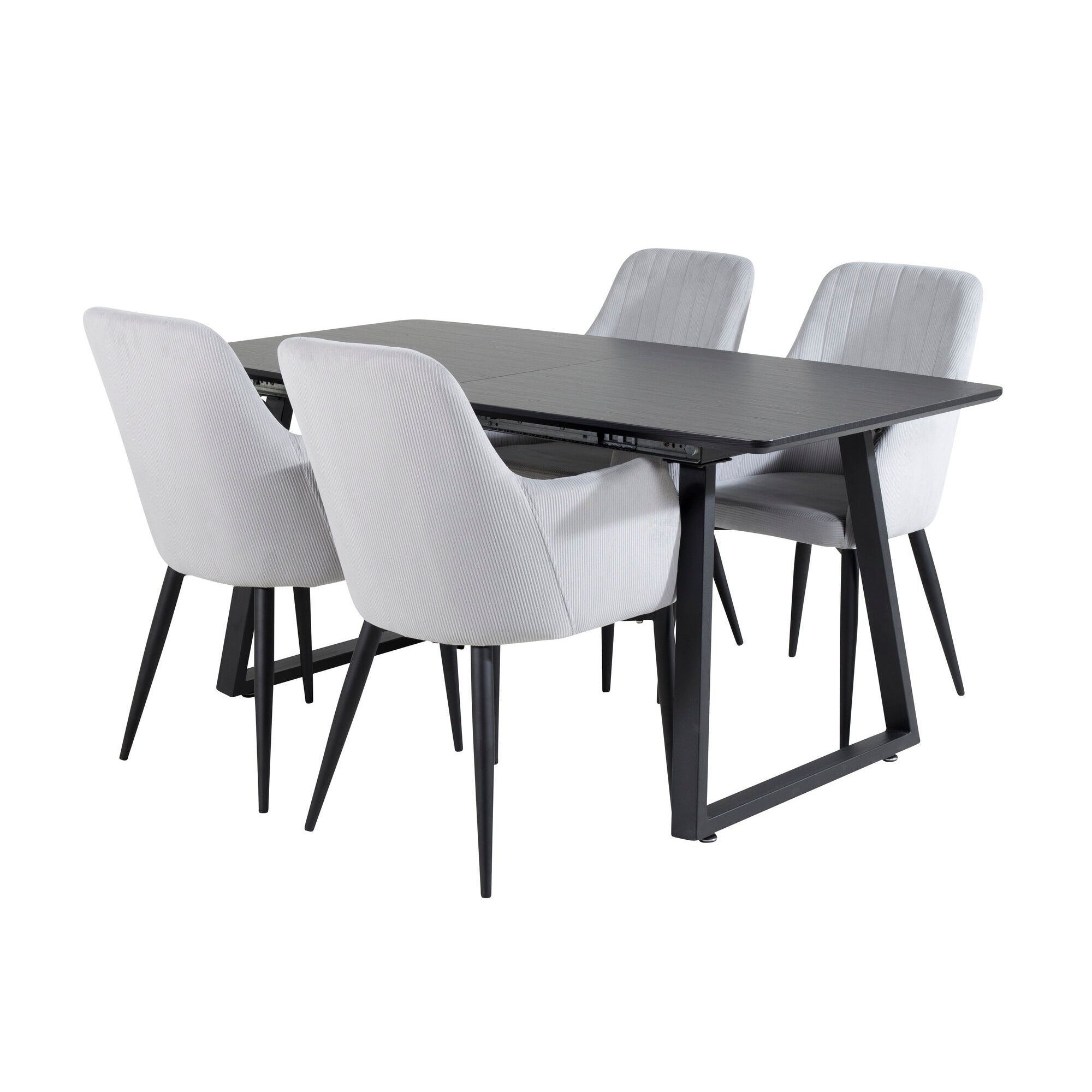 Jídelní stůl Inca - 160/200*85*H75 - Dub / Černá +Plaza - Jídelní židle - Černá/Tmavě šedá _4