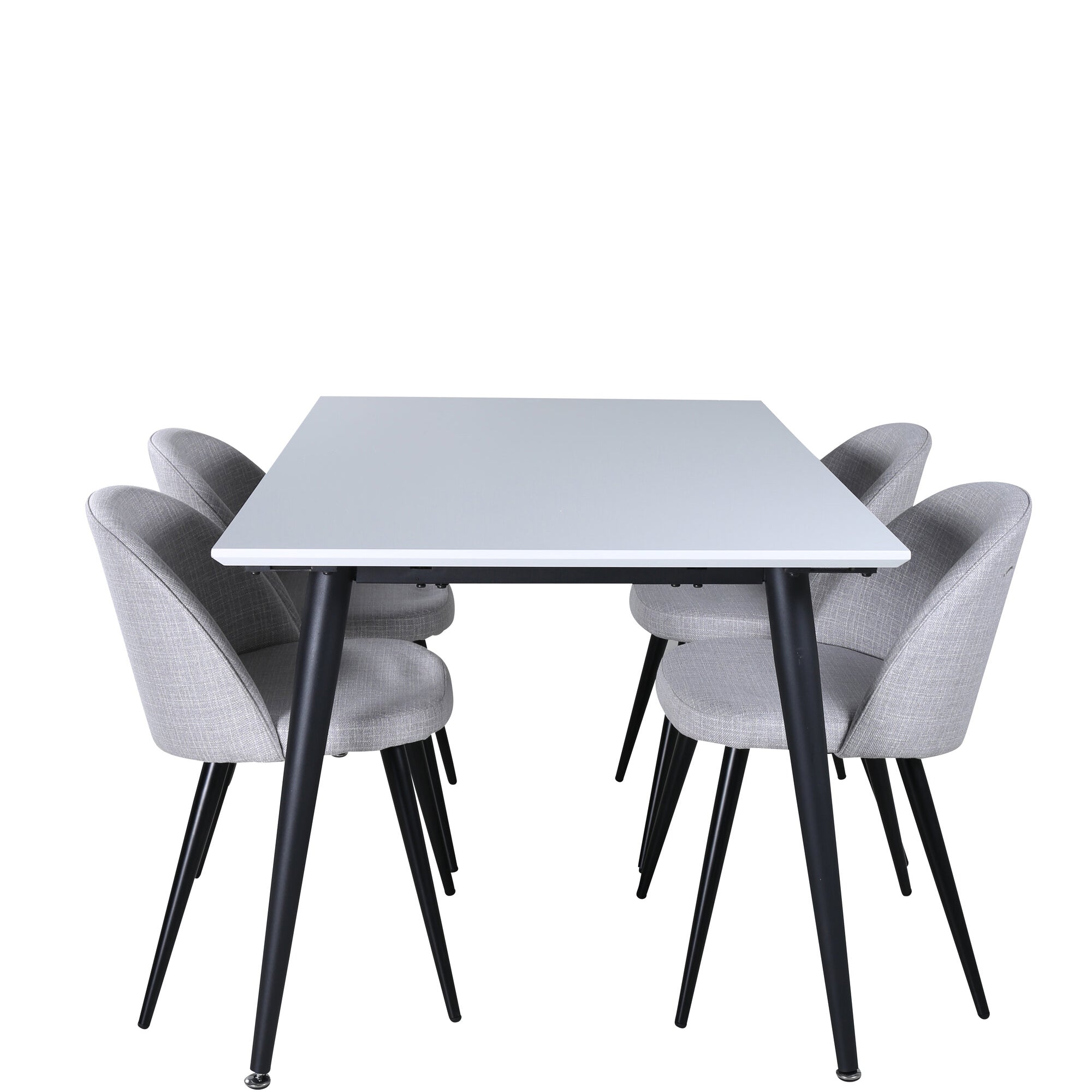 Jídelní stůl Jimmy , černá bílá HPL + sametová jídelní křeslo , černé nohy , světle šedá látka_4