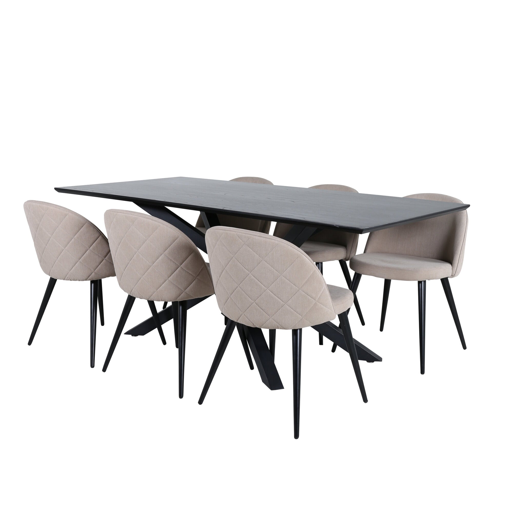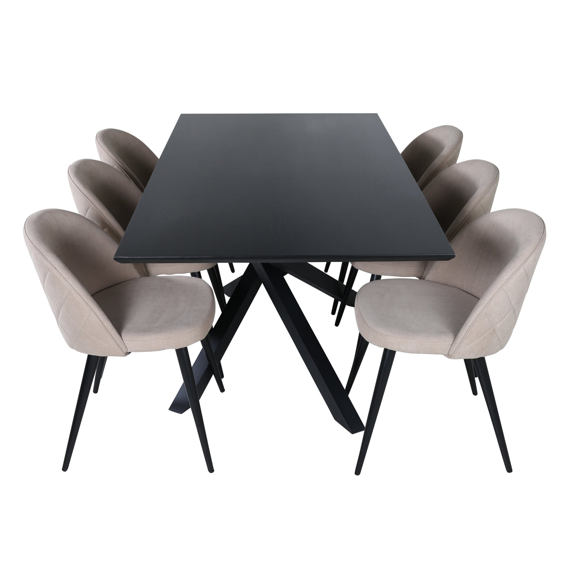 Jídelní stůl Isolde 180*75 - Černá / Černá MDF + Jídelní židle Seda - Matná hnědá / Béžová látka _4