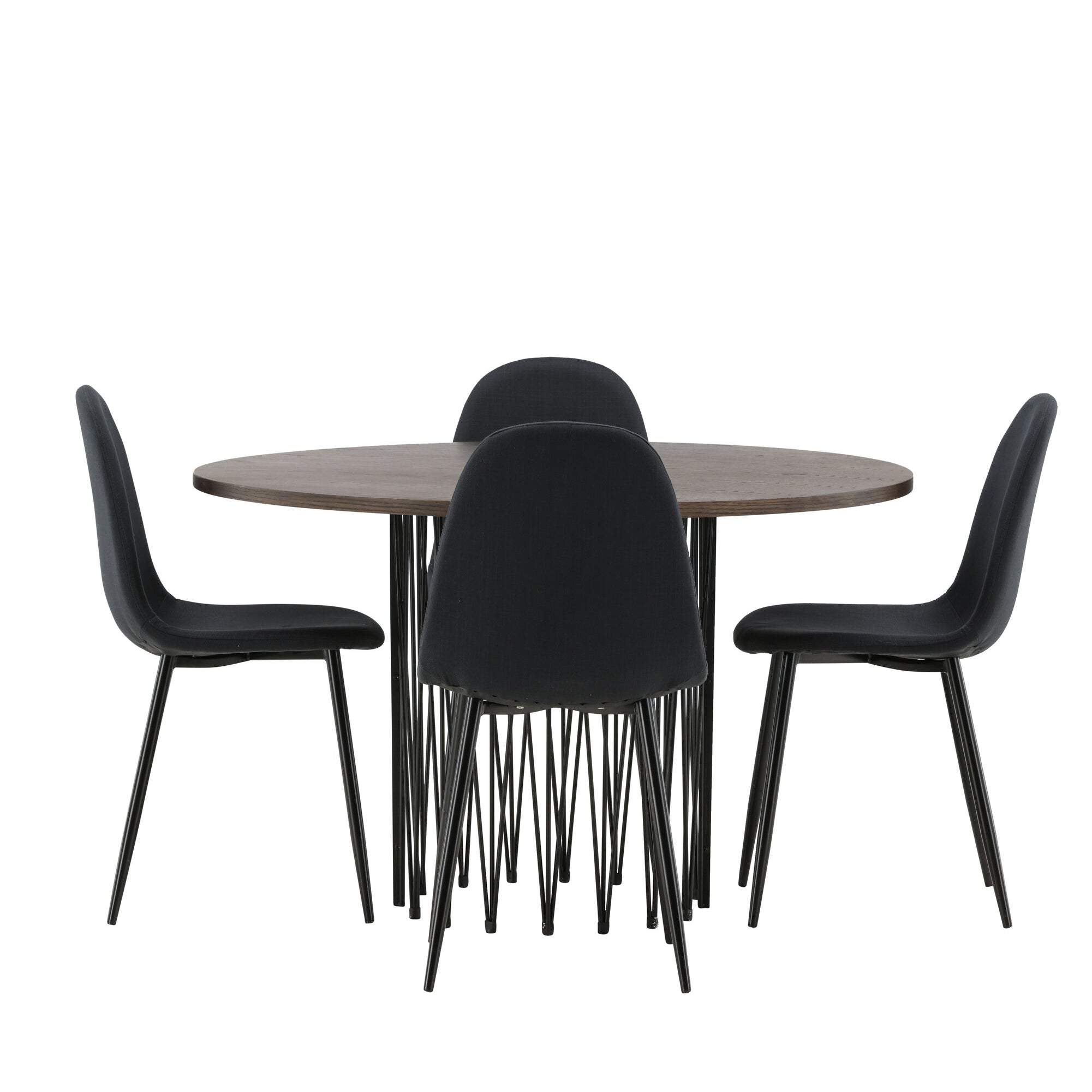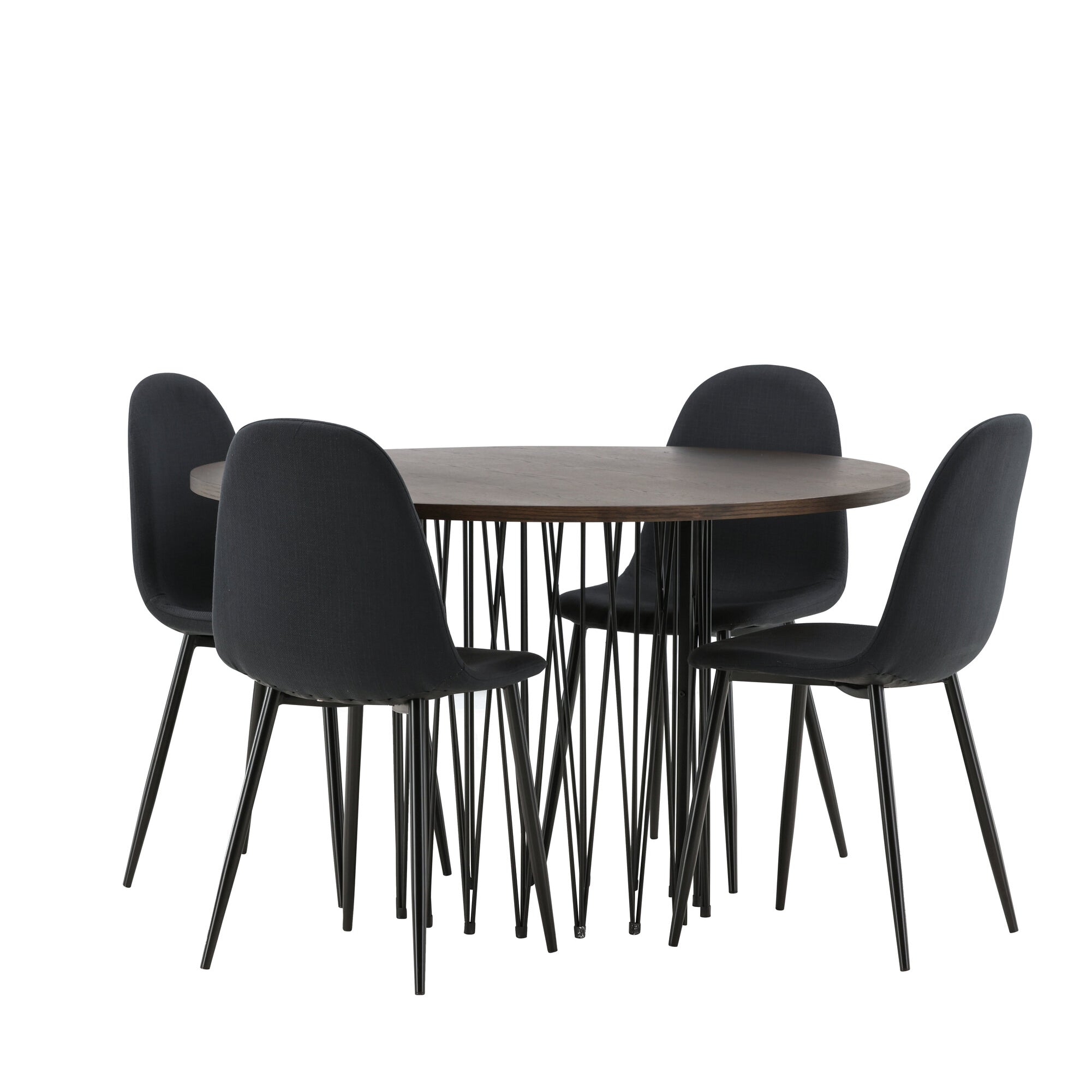 Kamenný kulatý jídelní stůl – černá / mocca dýha + jídelní židle Polar – černé nohy – černá látka _4