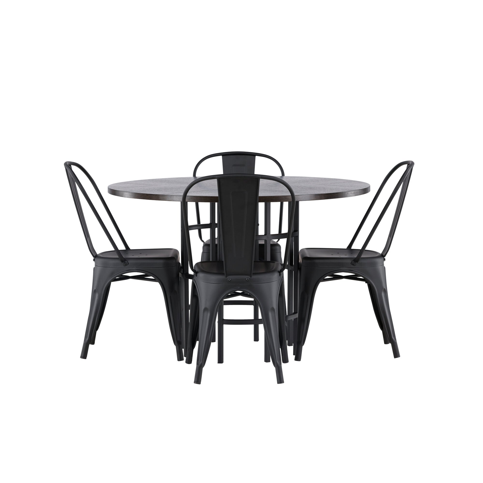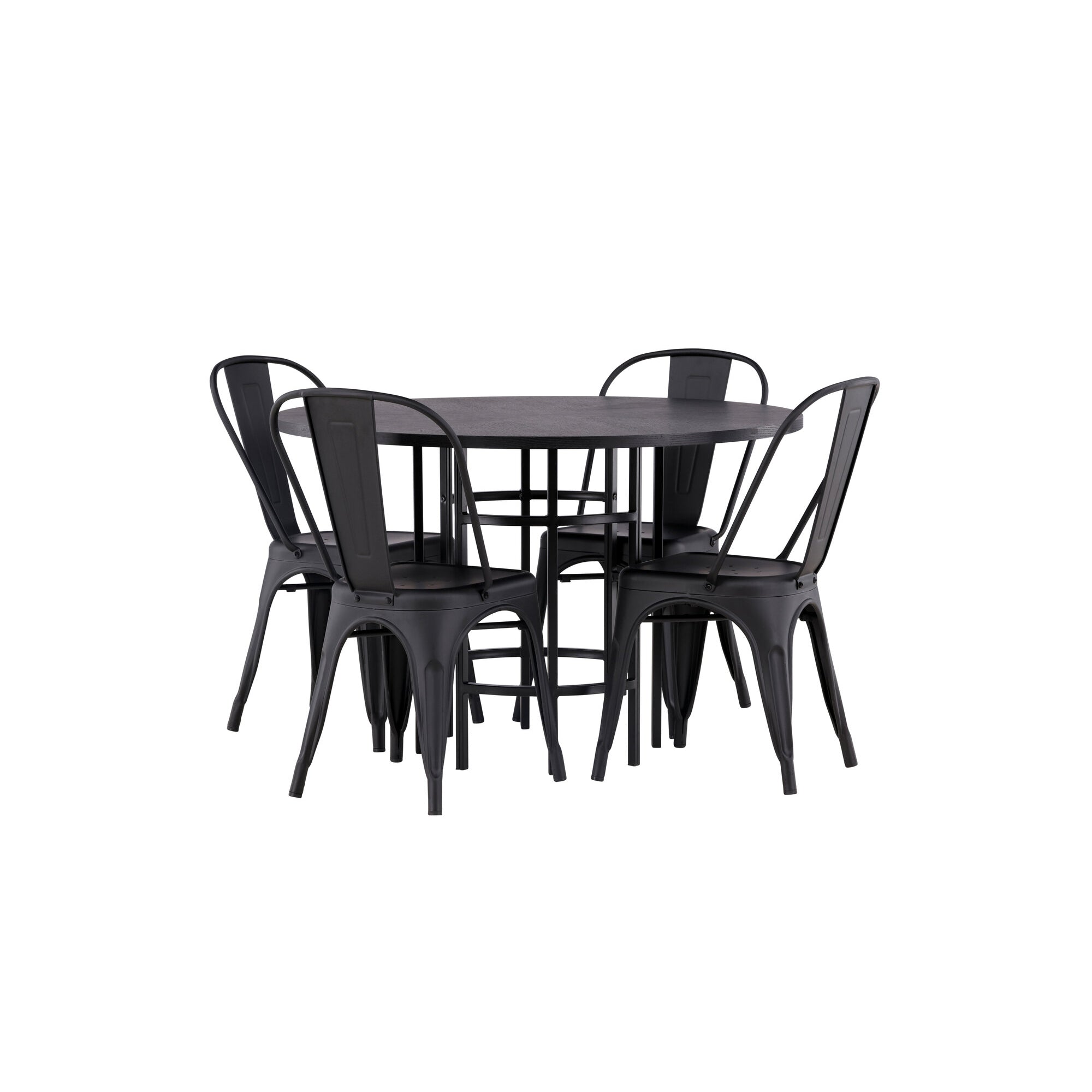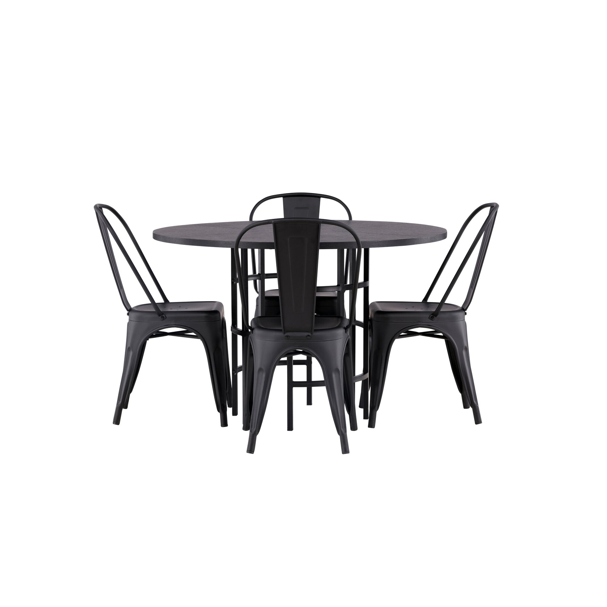 Kulatý jídelní stůl Bootcut - Černá / Černá Fanéer + Jídelní židle Yesterday - Černá / Černá Boucle _4