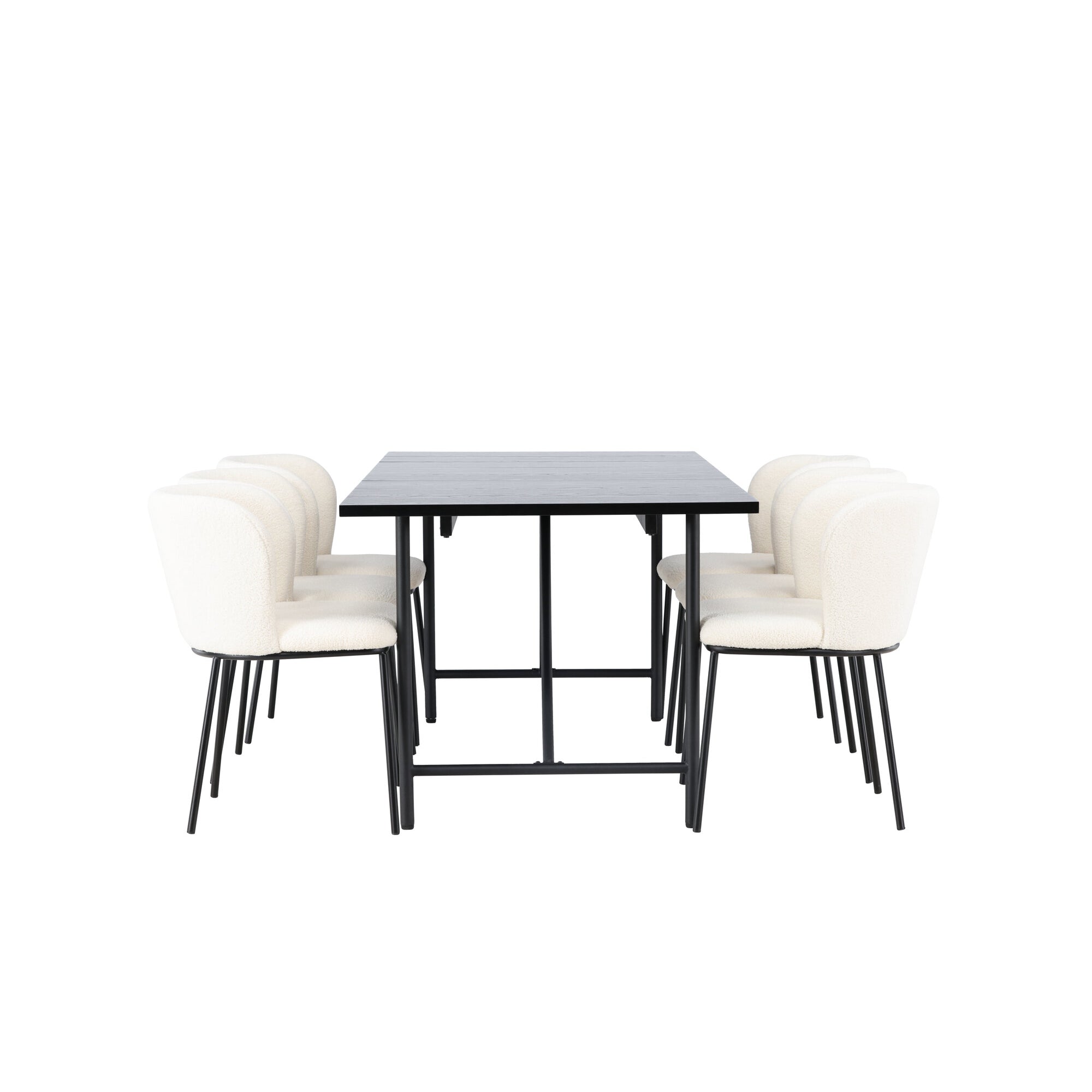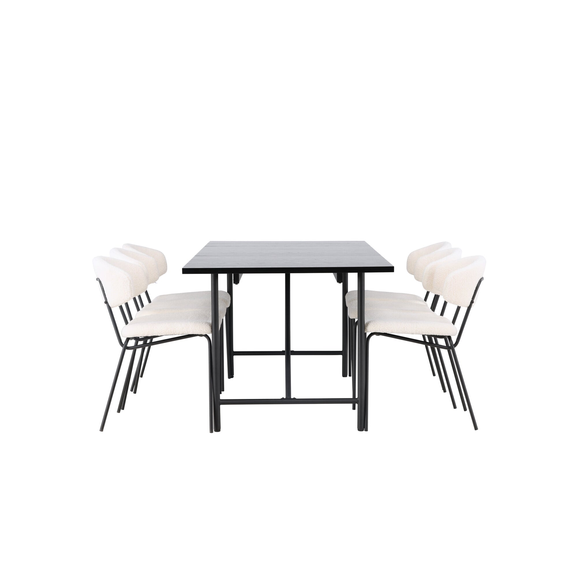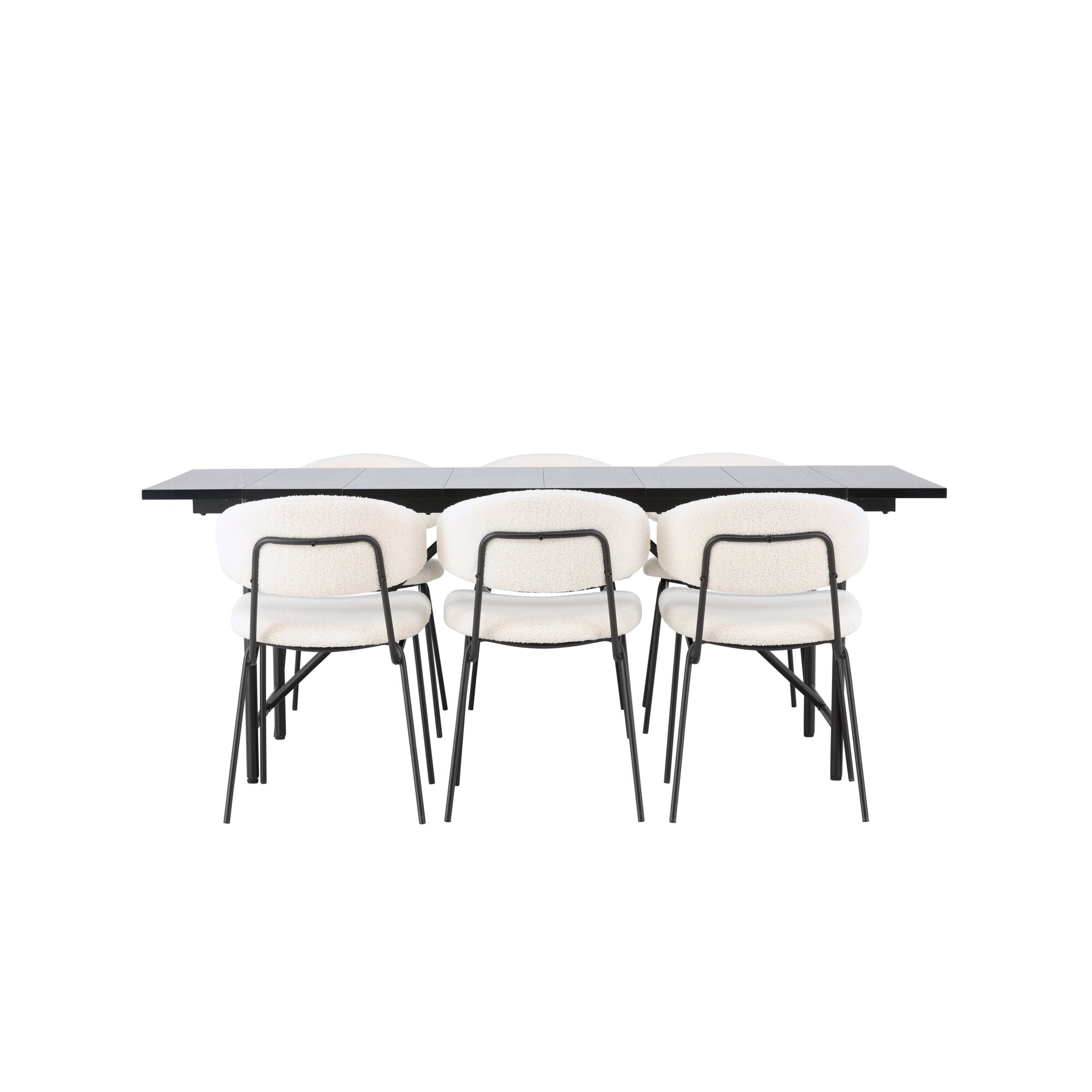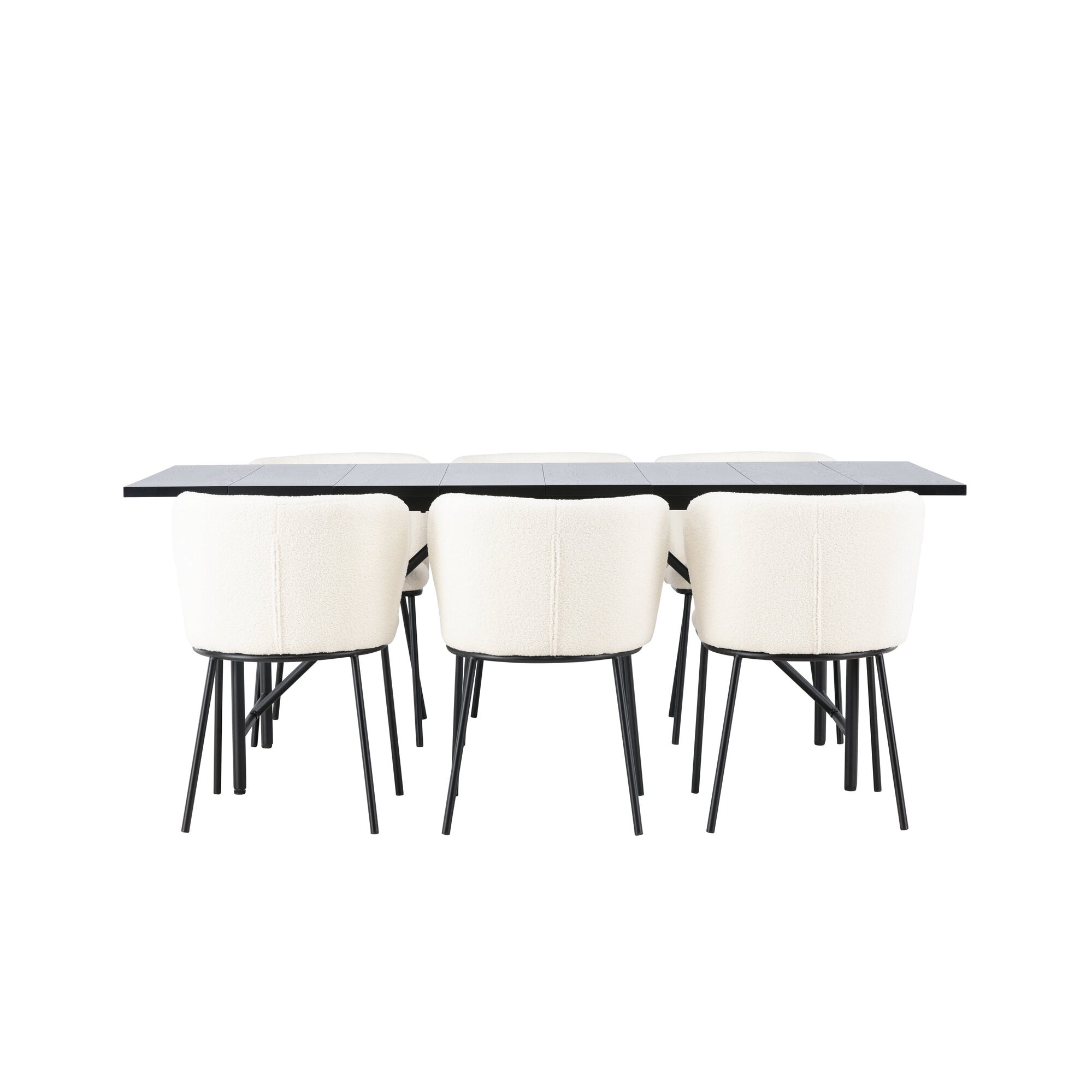 Jídelní stůl Astrid 200*75 - Matná černá / Matná černá MDF s dýhou +Chico Jídelní židle - Černá / Bílá Boucle _6