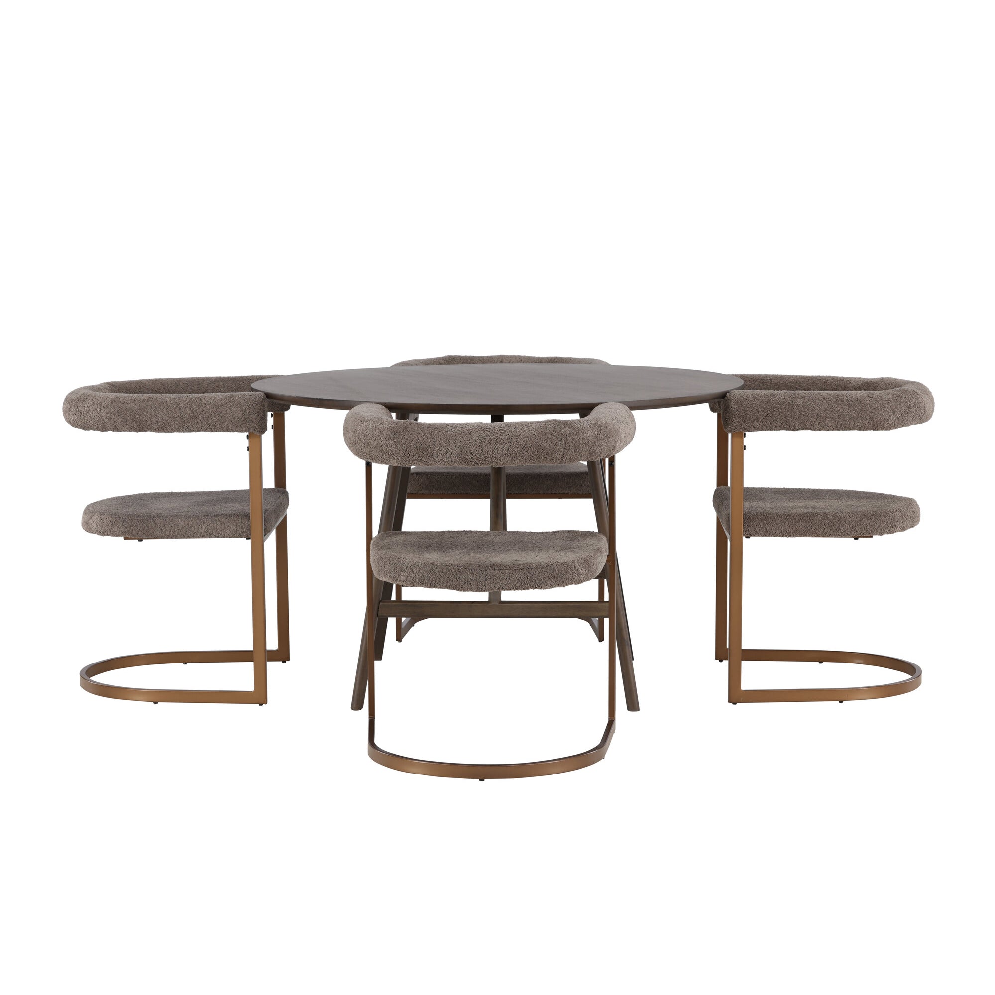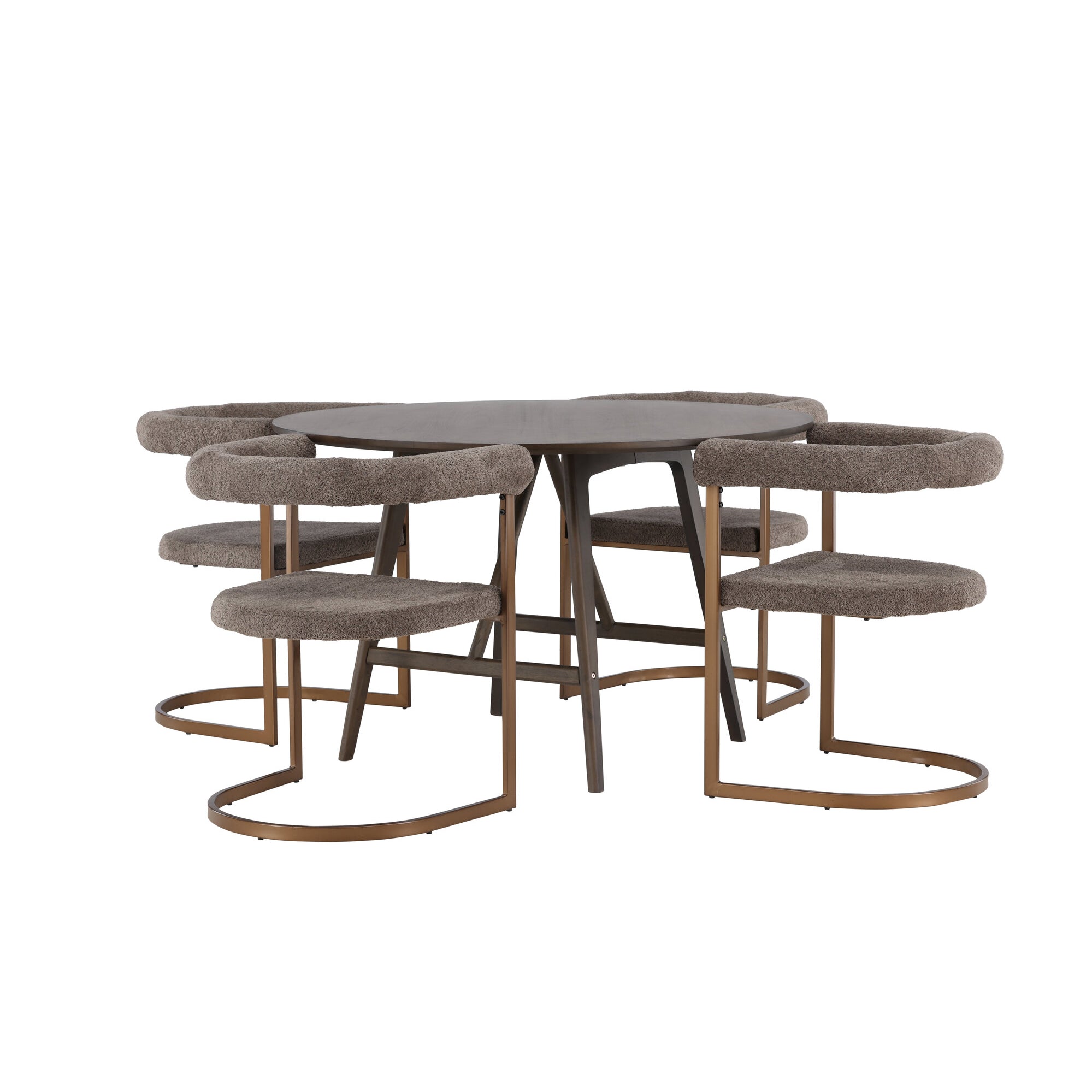 Jídelní stůl Kaseidon - kulatý - kaučukové dřevo / tmavě hnědá MDF + ranní jídelní židle - černá / černá Boucle _4