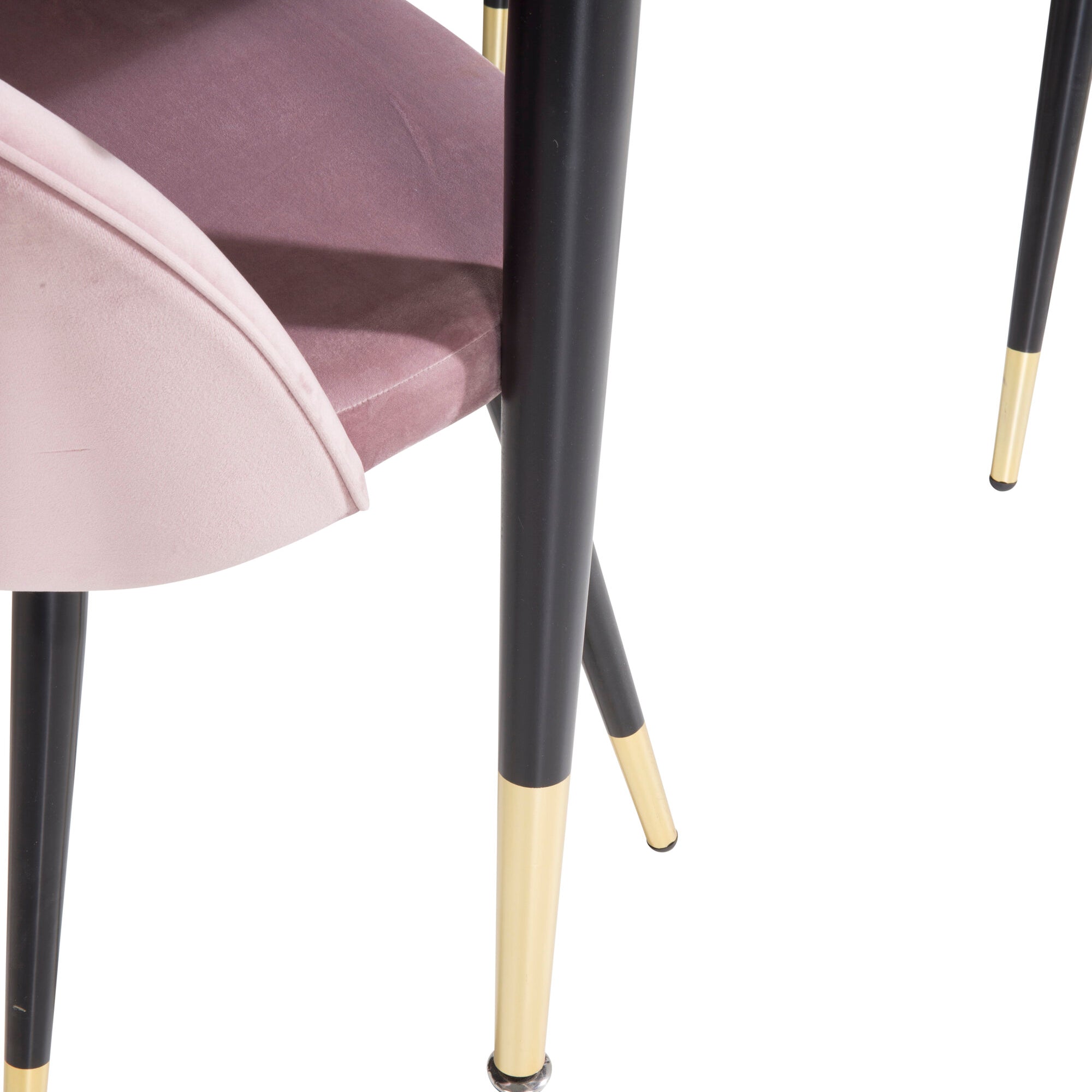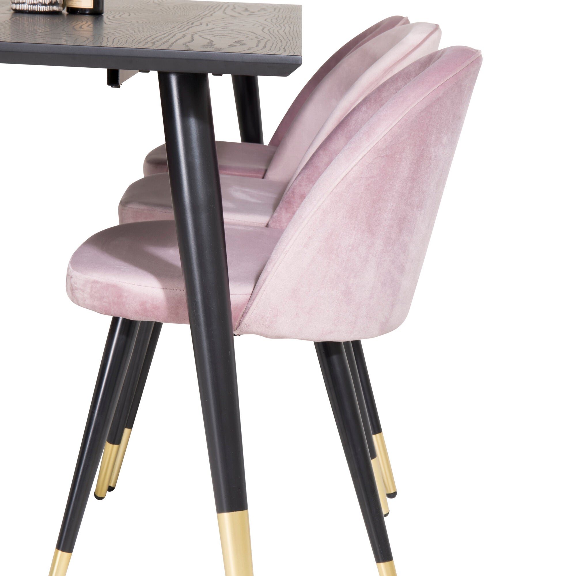 Dipp Jídelní stůl - 180*90cm - Černá dýha / černé nohy s mosazným dipp - Sametová jídelní židle Mosaz - Růžová / Černá 6