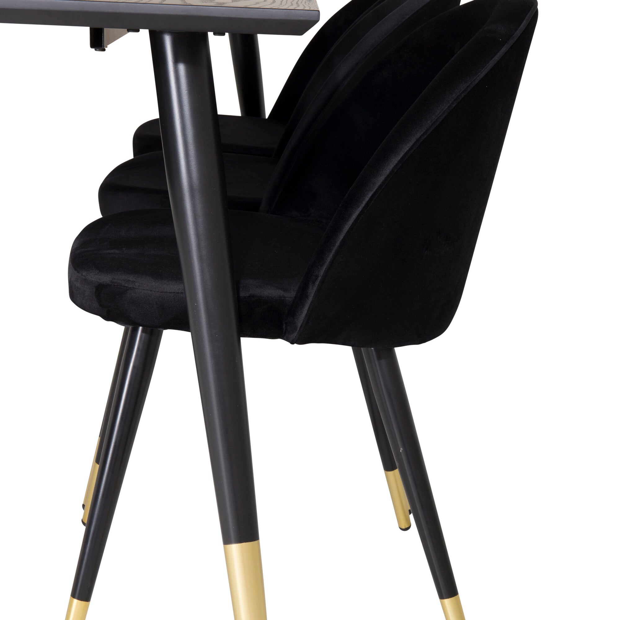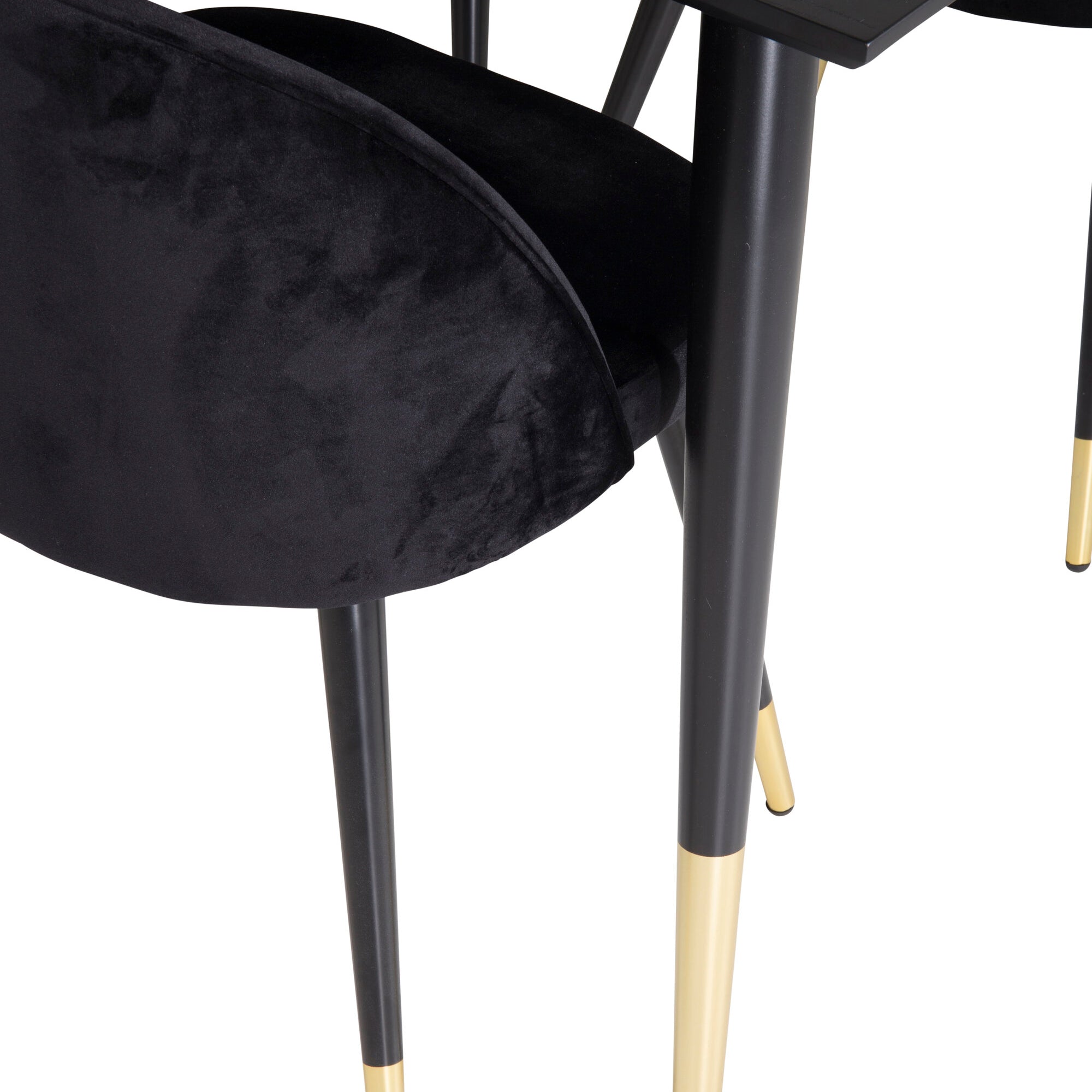 Dipp jídelní stůl - 180*90cm - Černá dýha / černé nohy s mosazným dipp - Sametová jídelní židle Mosaz - Černá / Černá 6