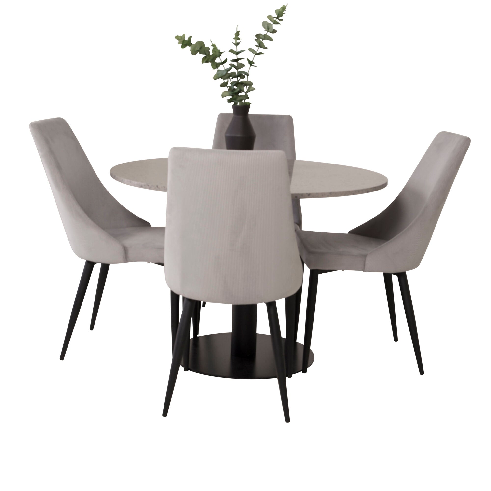 Jídelní stůl Razzia 106 cm - Šedá Terazzo / Černá + Leone jídelní židle - Černé nohy / Světle Šedá manšestrová _4