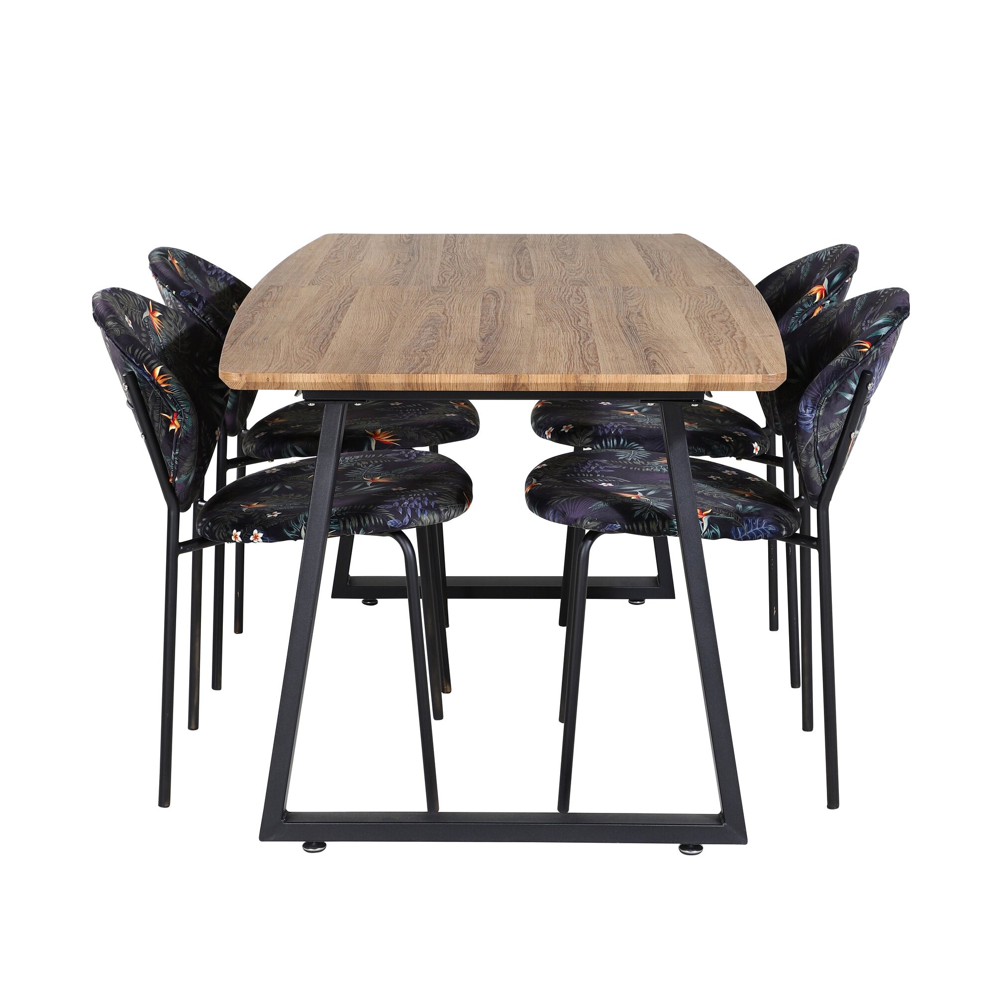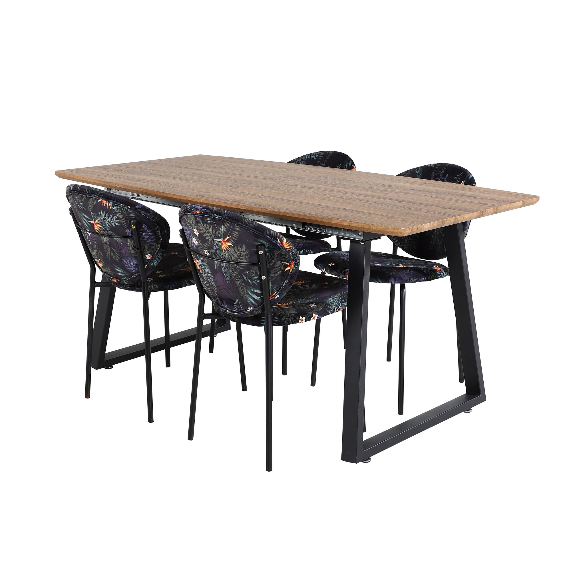 Jídelní stůl Inca - 160/200*85*H75 - Dub / Černá + Jídelní židle Vault - Černé nohy - Black Flower potištěná látka_4