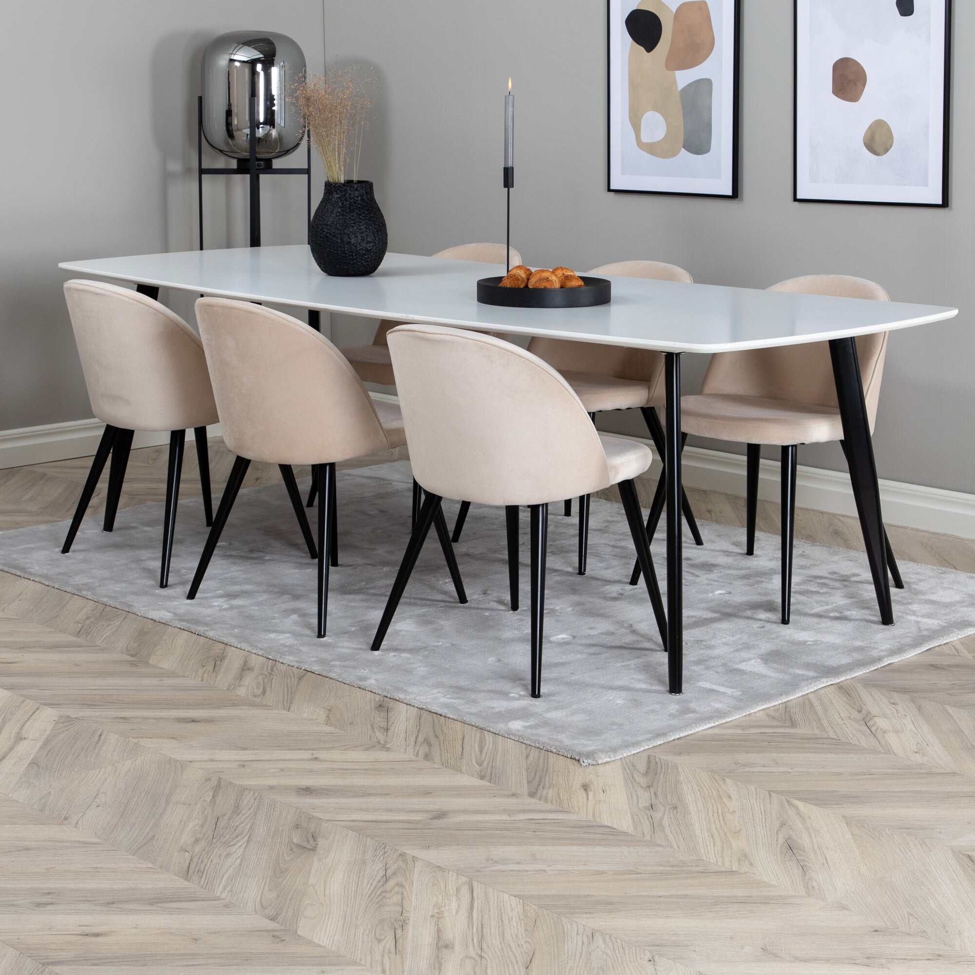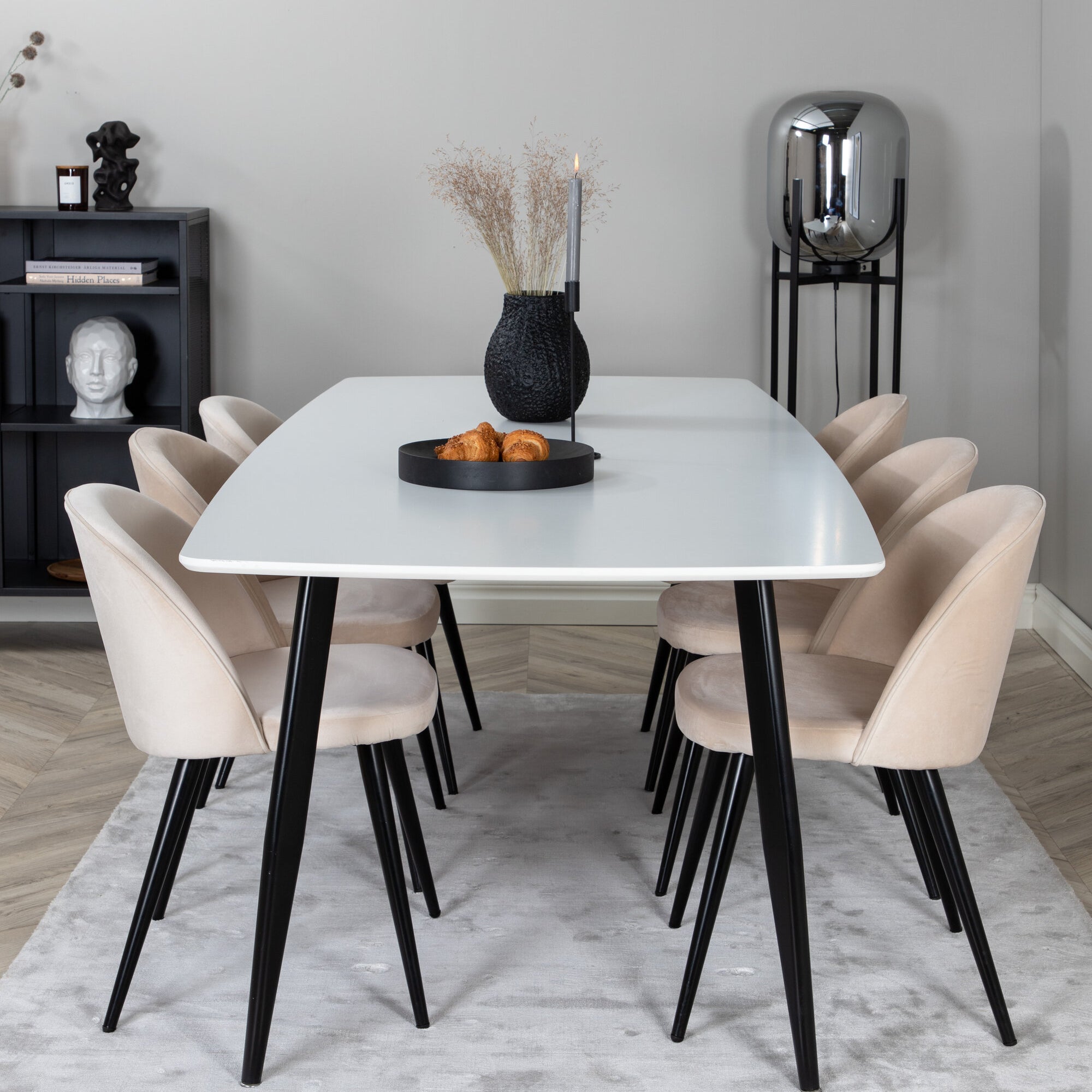 Polar Elips Matbord - Svart / Vit - 240*100*H75 +Velvet Jídelní židle - Béžová / Černá _6