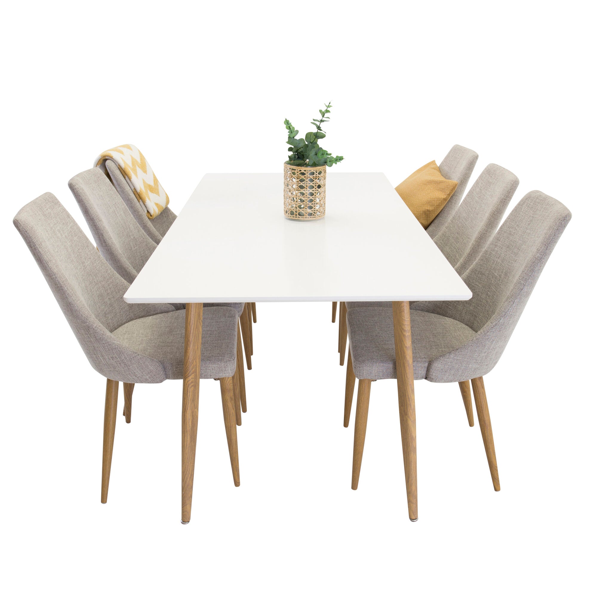 Polar Matbord - Ek-Look / Vit- 180*90*H75 +Leone - Jídelní židle - Dub/Světle šedá _6
