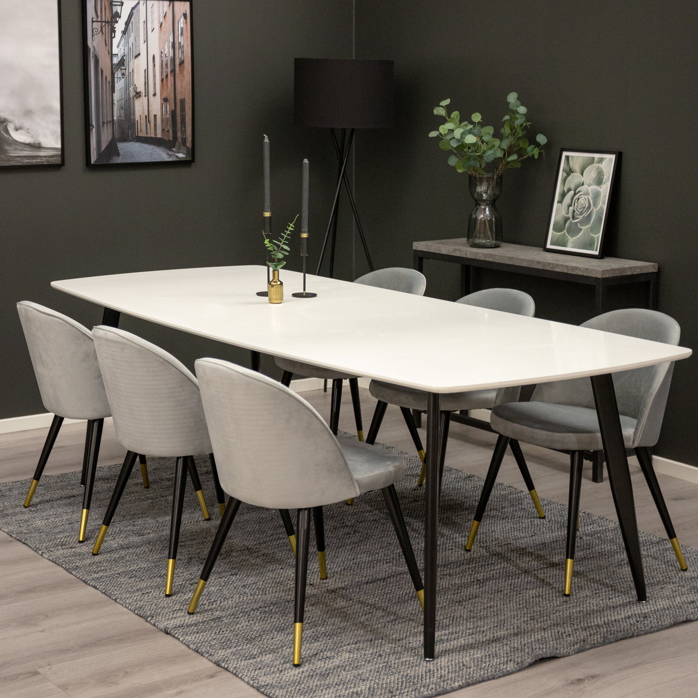 Polar Elips Matbord - Svart / Vit - 240*100*H75 +Sametová jídelní židle Mosaz - světle šedá / černá _6
