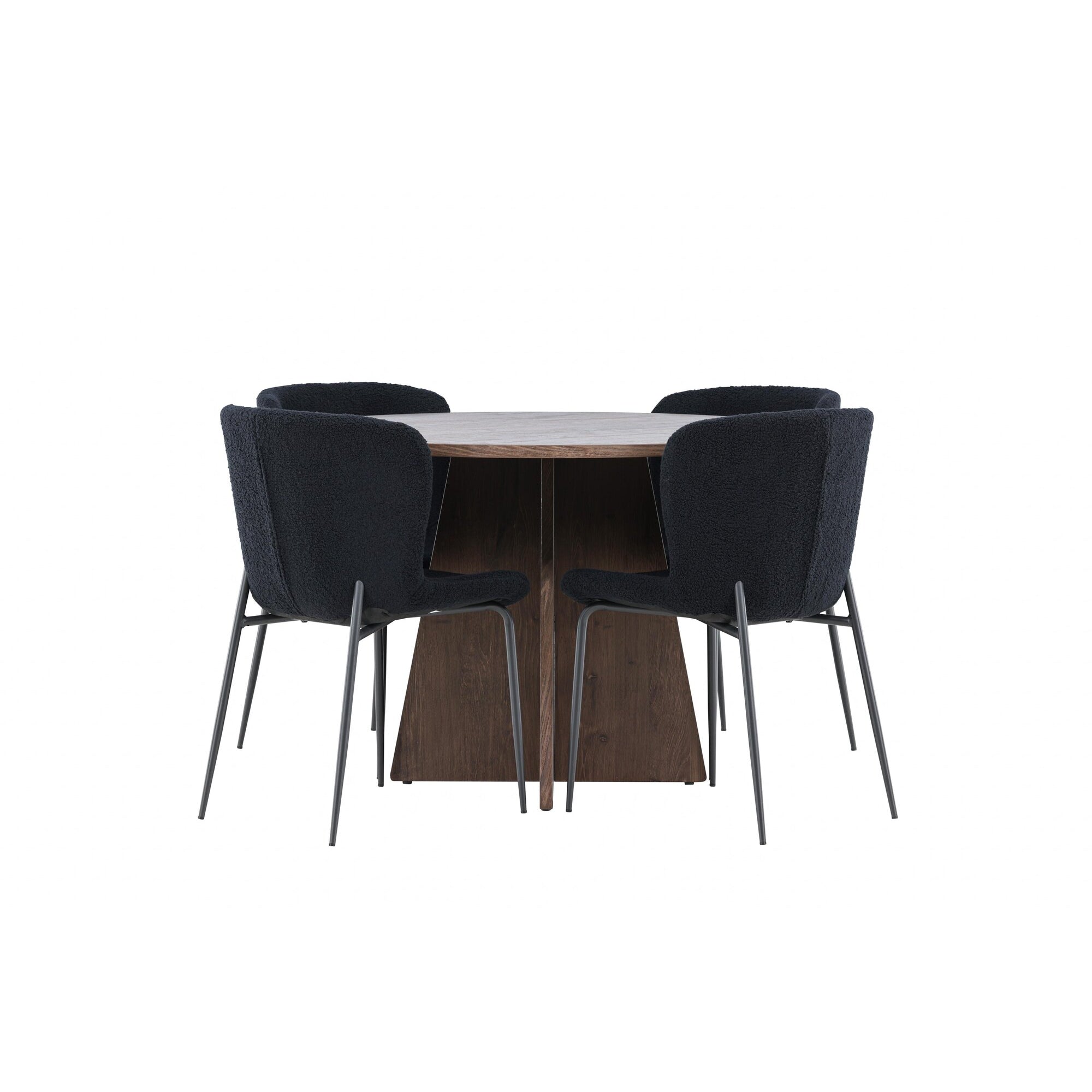 Jídelní stůl Lanzo φ120 - Mocca/Mocca + Jídelní židle Modesto - šedá / kouřová černá Boucle _4