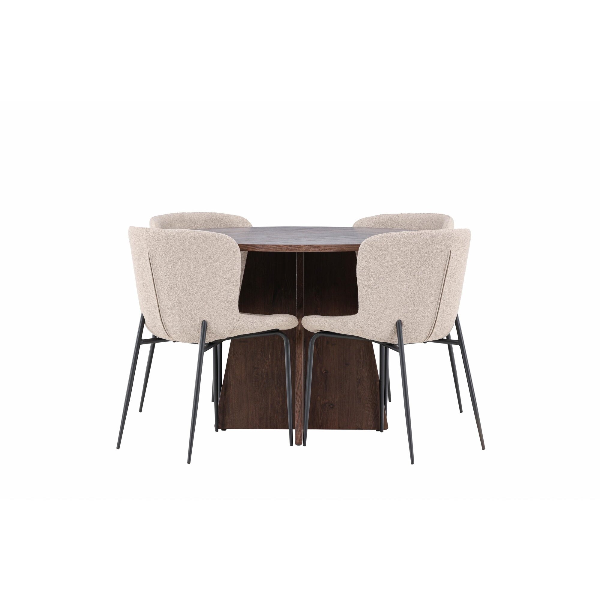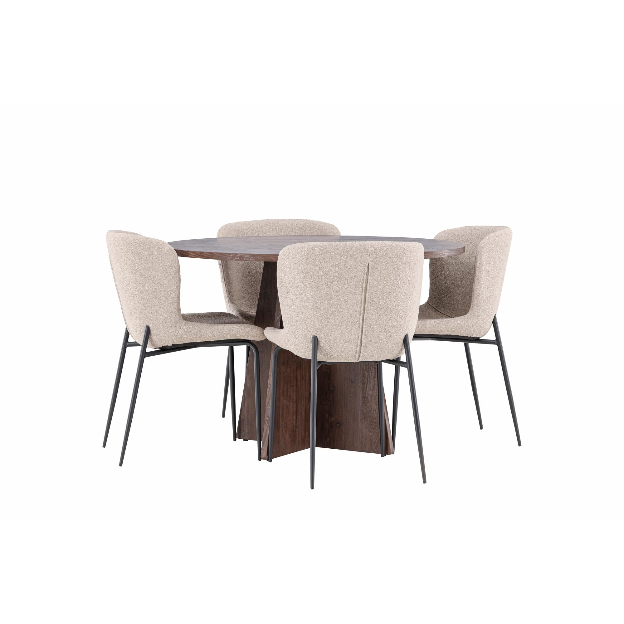 Jídelní stůl Lanzo φ120 - Mocca/Mocca + Jídelní židle Modesto - Béžová / Béžová Boucle _4