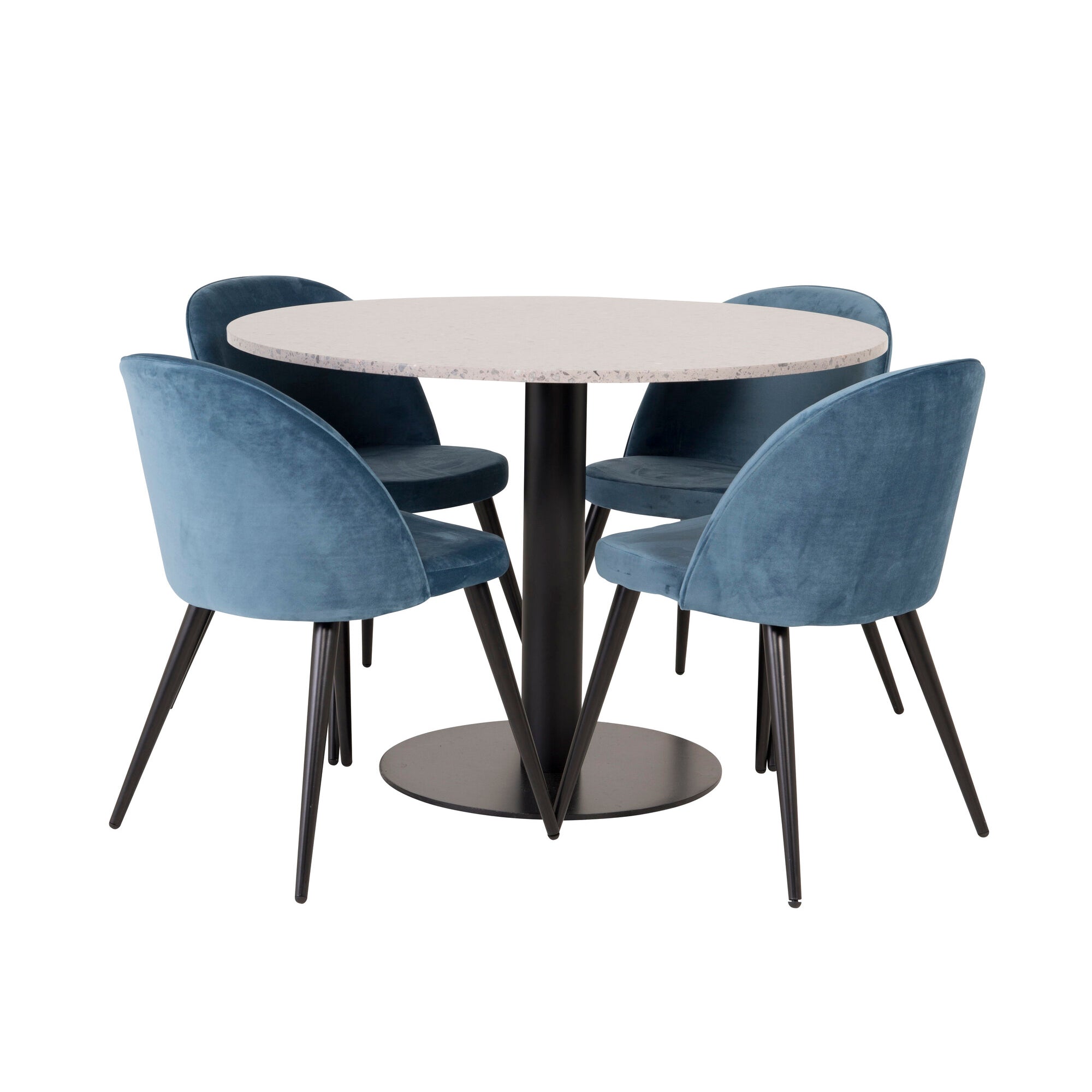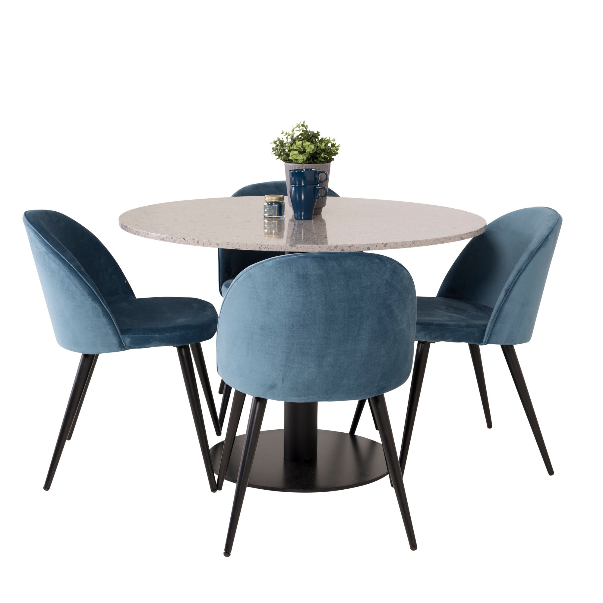 Razzia Jídelní stůl 106 cm - Šedá Terazzo / Černá+Velvet Matstol - Svart / Blå S