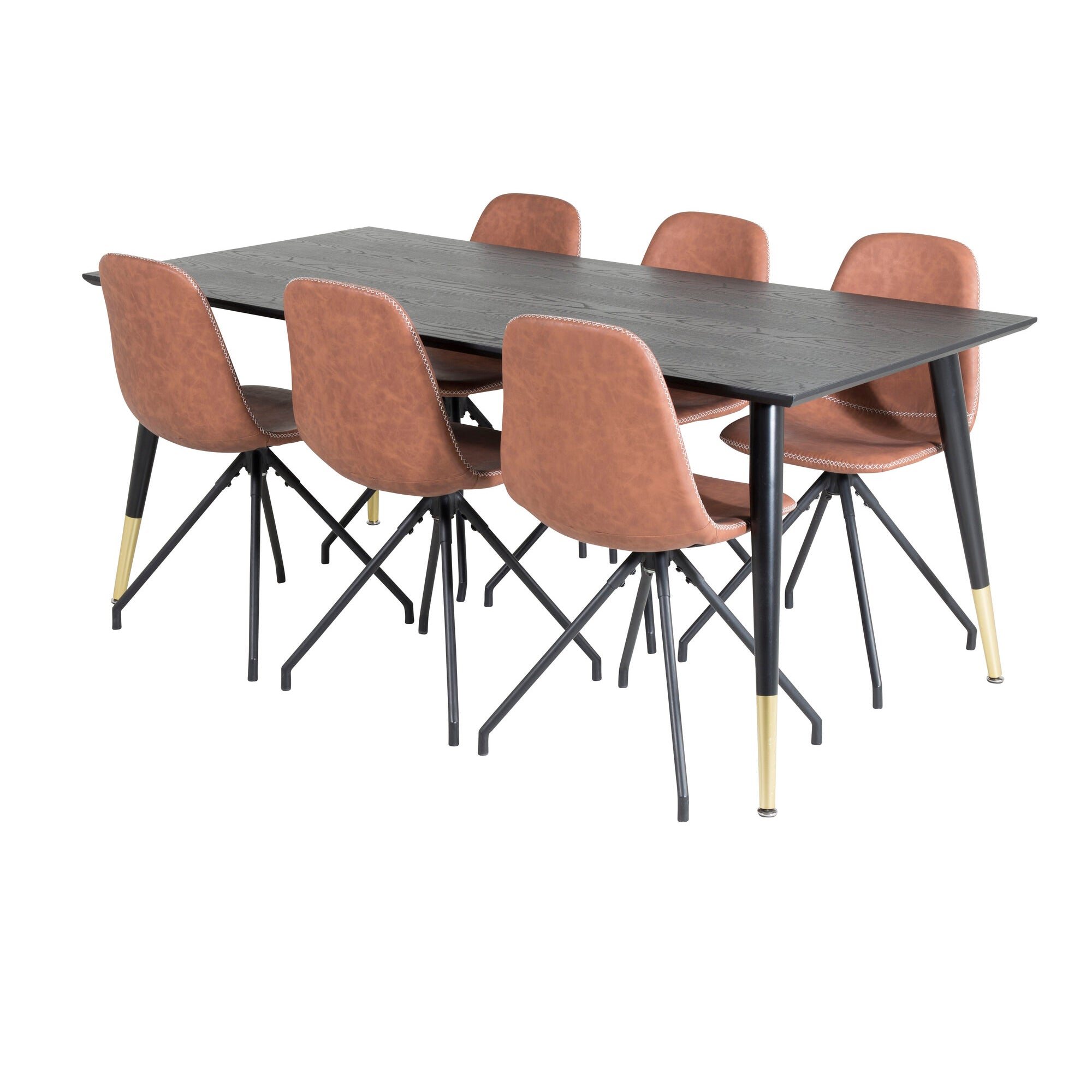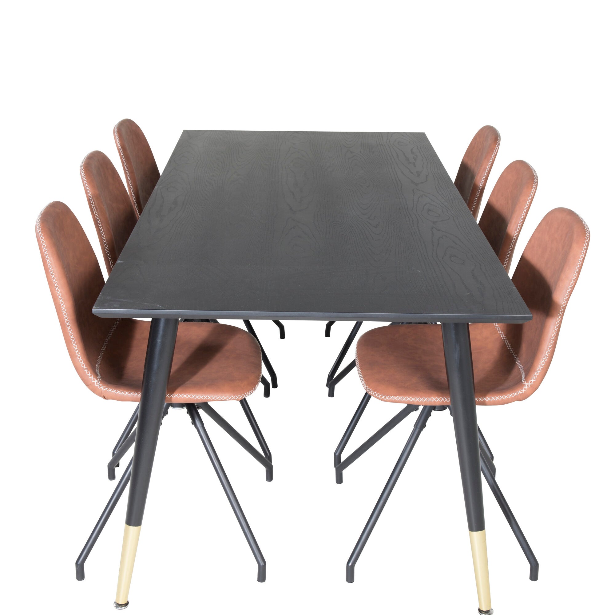 Jídelní stůl Dipp - 180*90cm - Černá / Černá mosaz+Polar Jídelní židle s funkcí Spin - černá Nohy - Hnědá PU - Bílé Stitches_6
