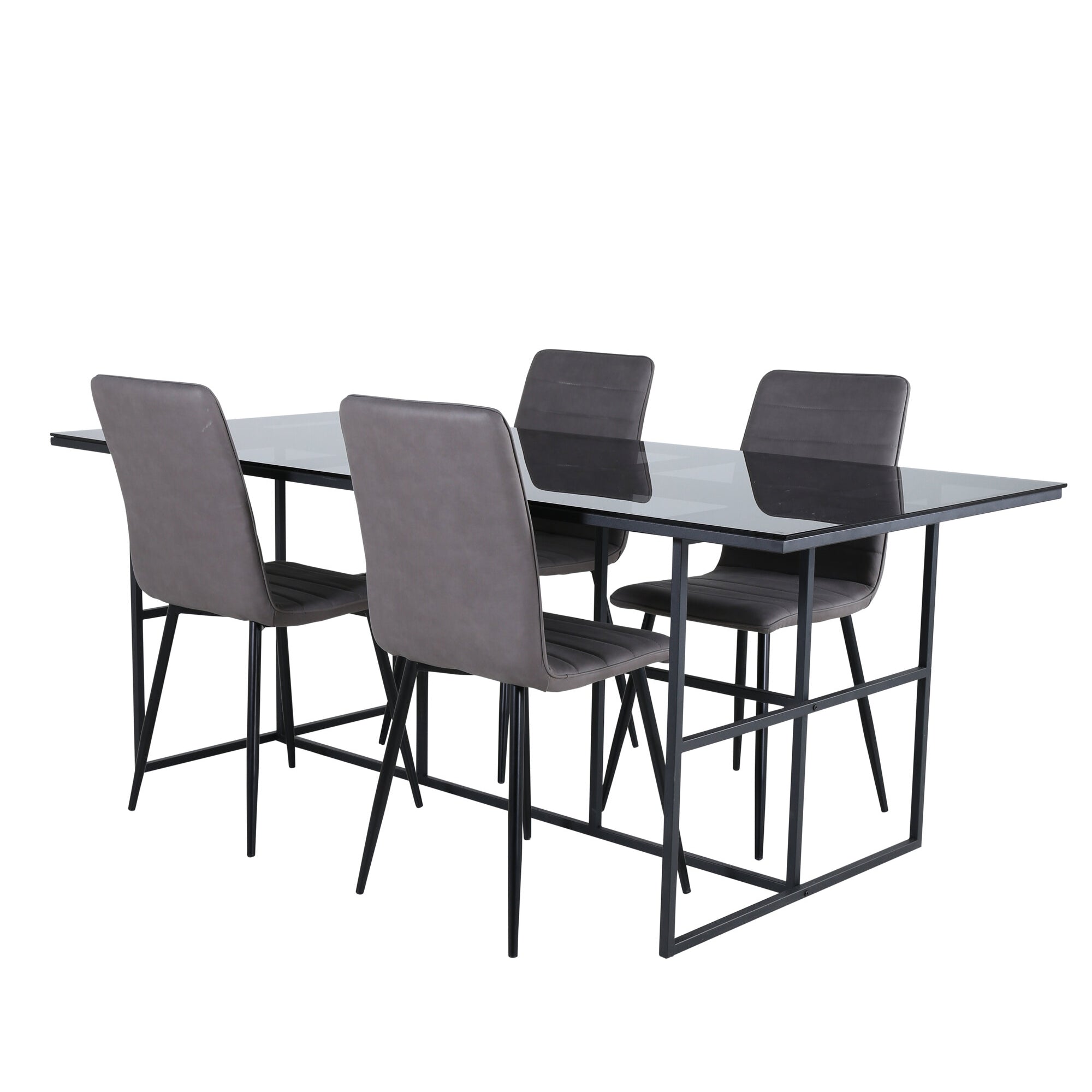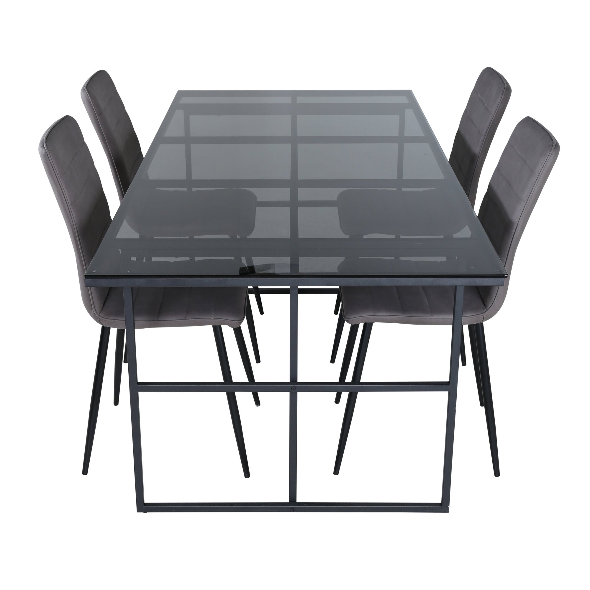 Jídelní stůl Leif - černá / černá kouřové kouřové sklo + židle Windu Lyx - černá / šedá Micro Fibre_4