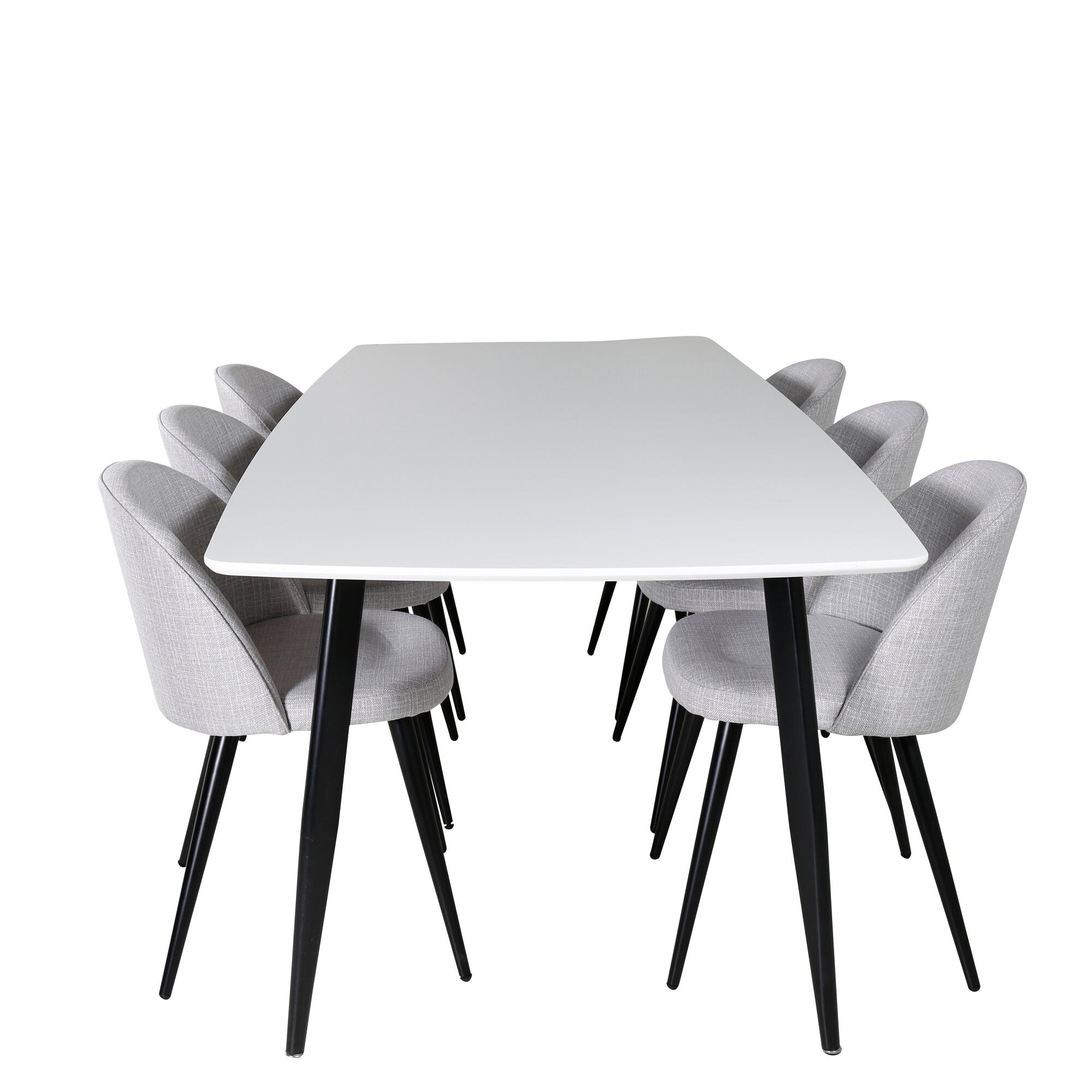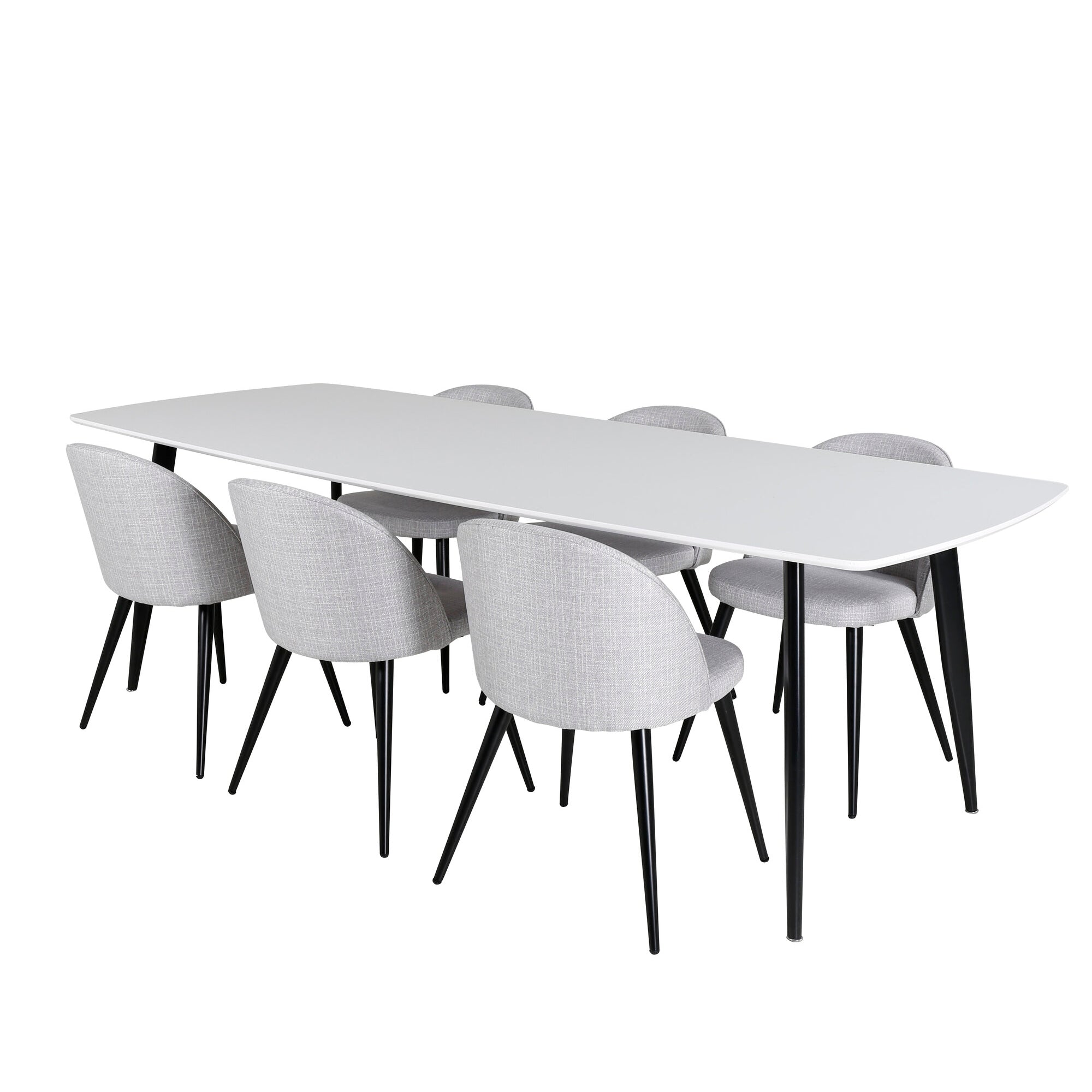 Polar Elips Matbord - Svart / Vit - 240*100*H75 +Velvetová jídelní židle - Černé nohy - Světle šedáTkanina _6