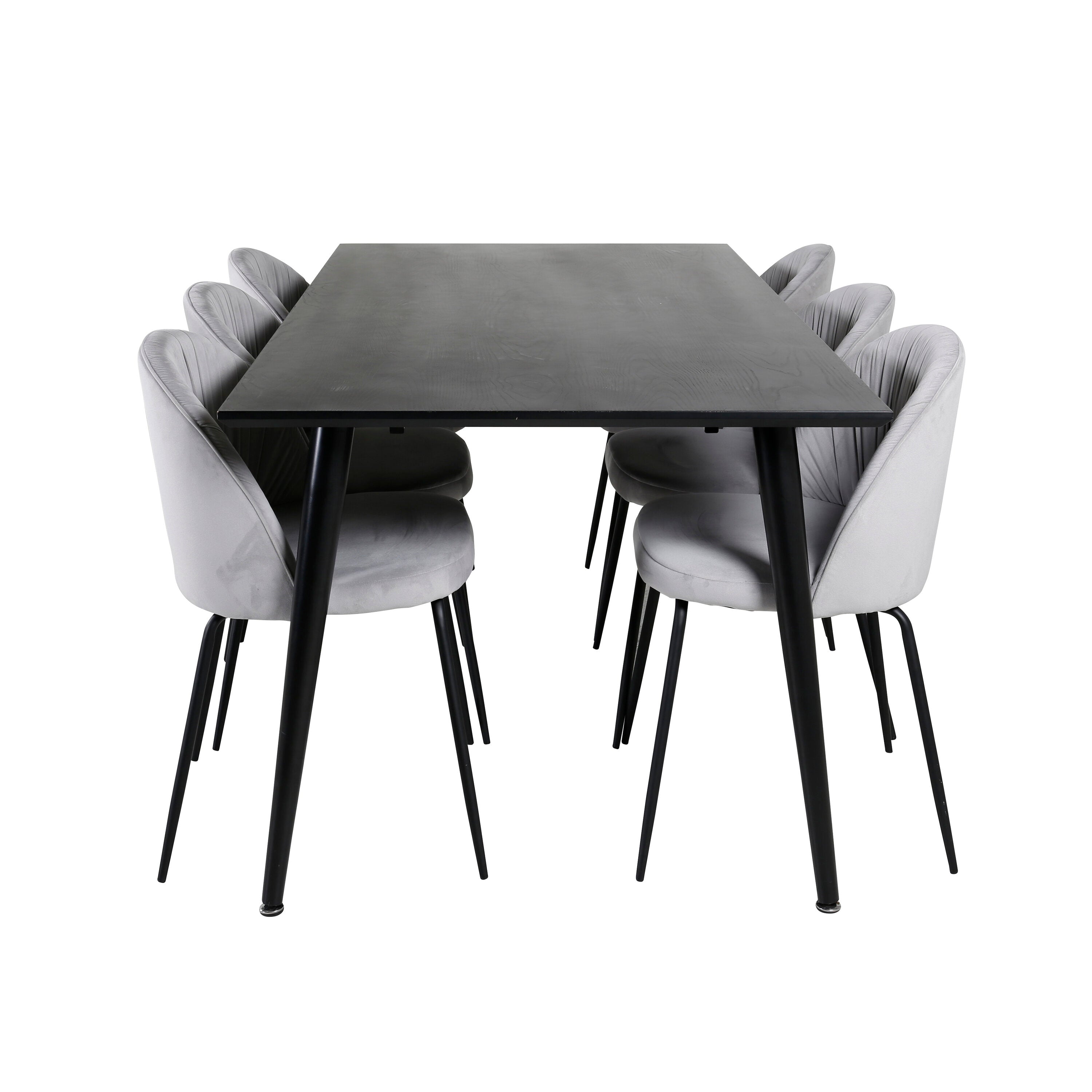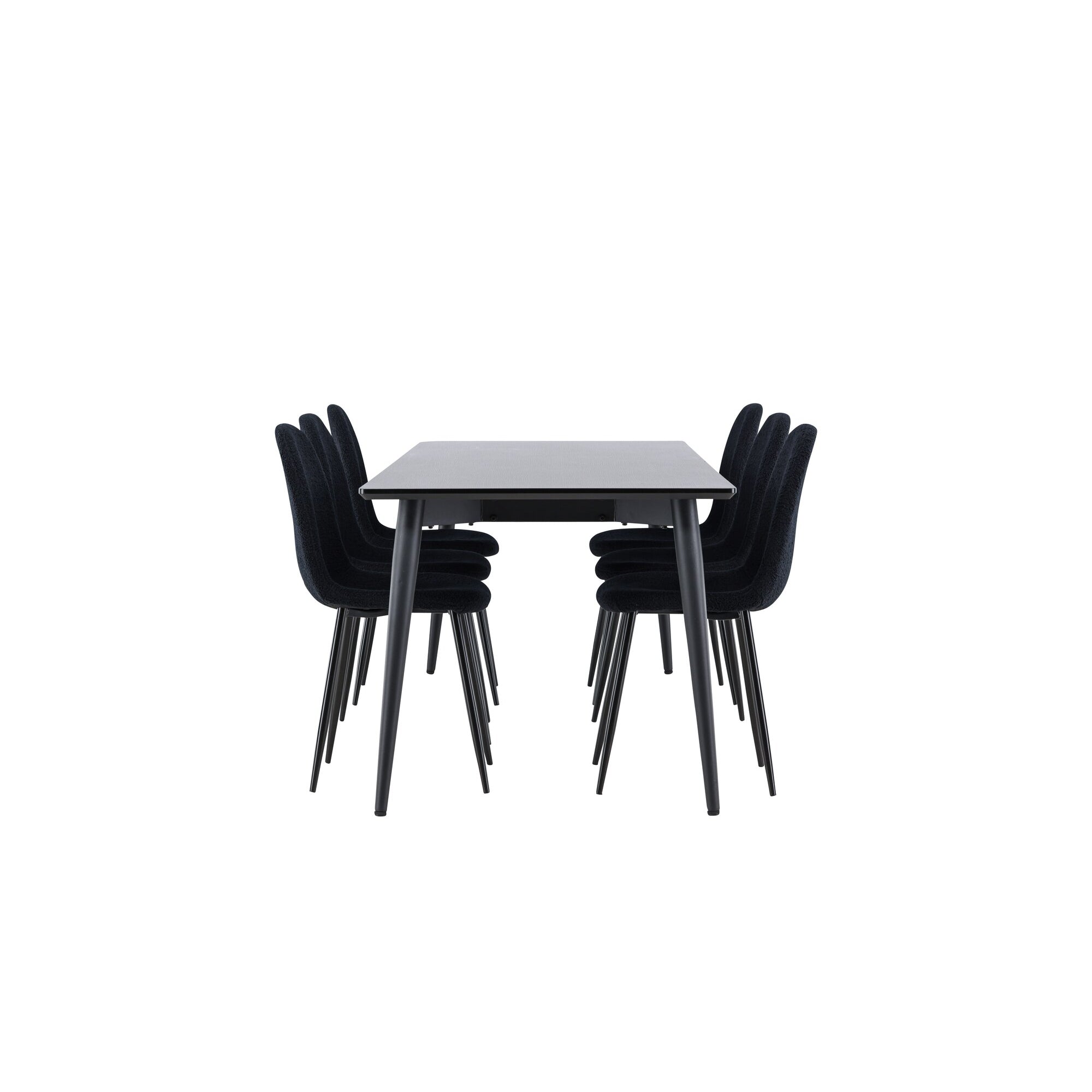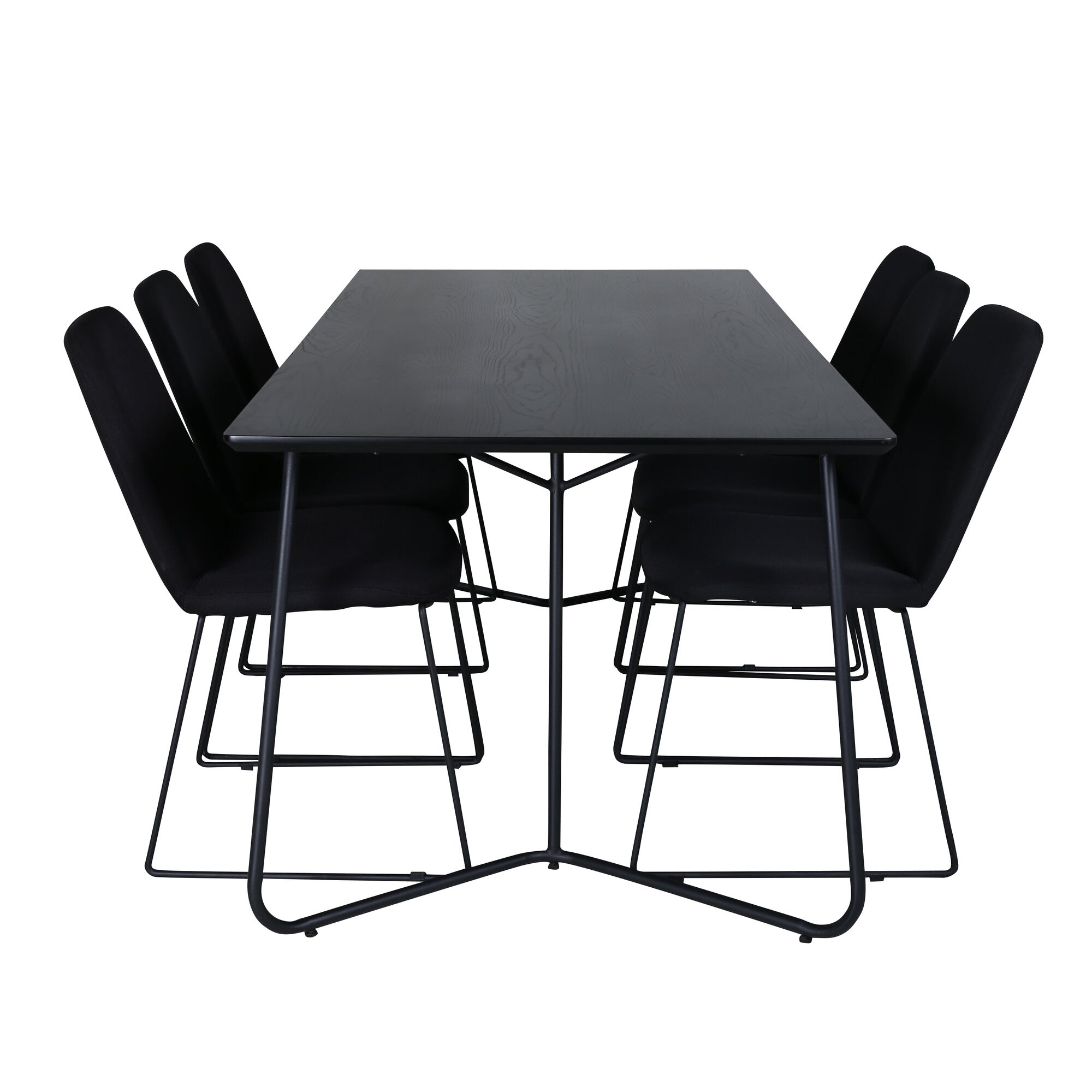 Piazza Matbord - Ek-look / svart - 180*90*75 +Plaza - Jídelní židle - Modrá / Dub _6