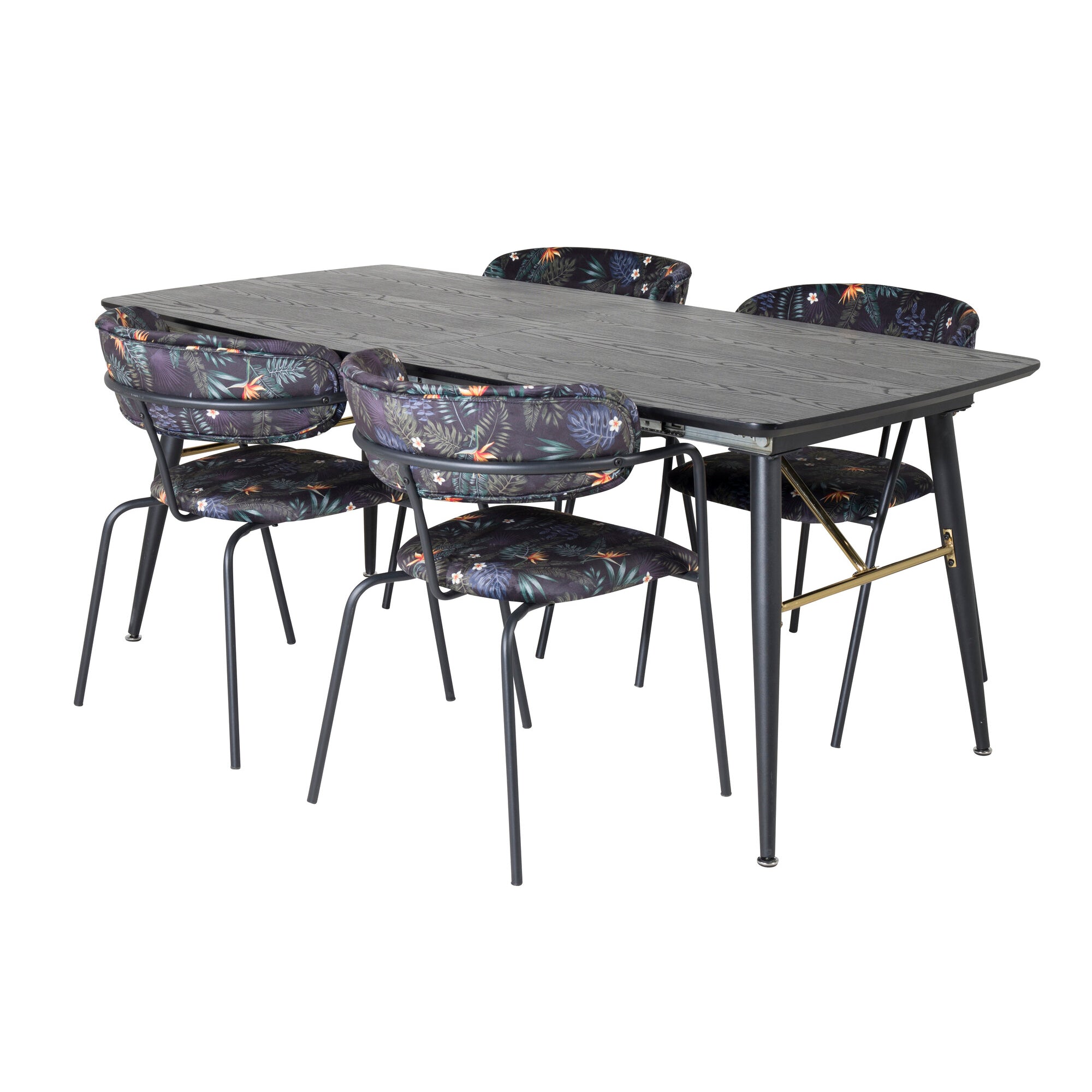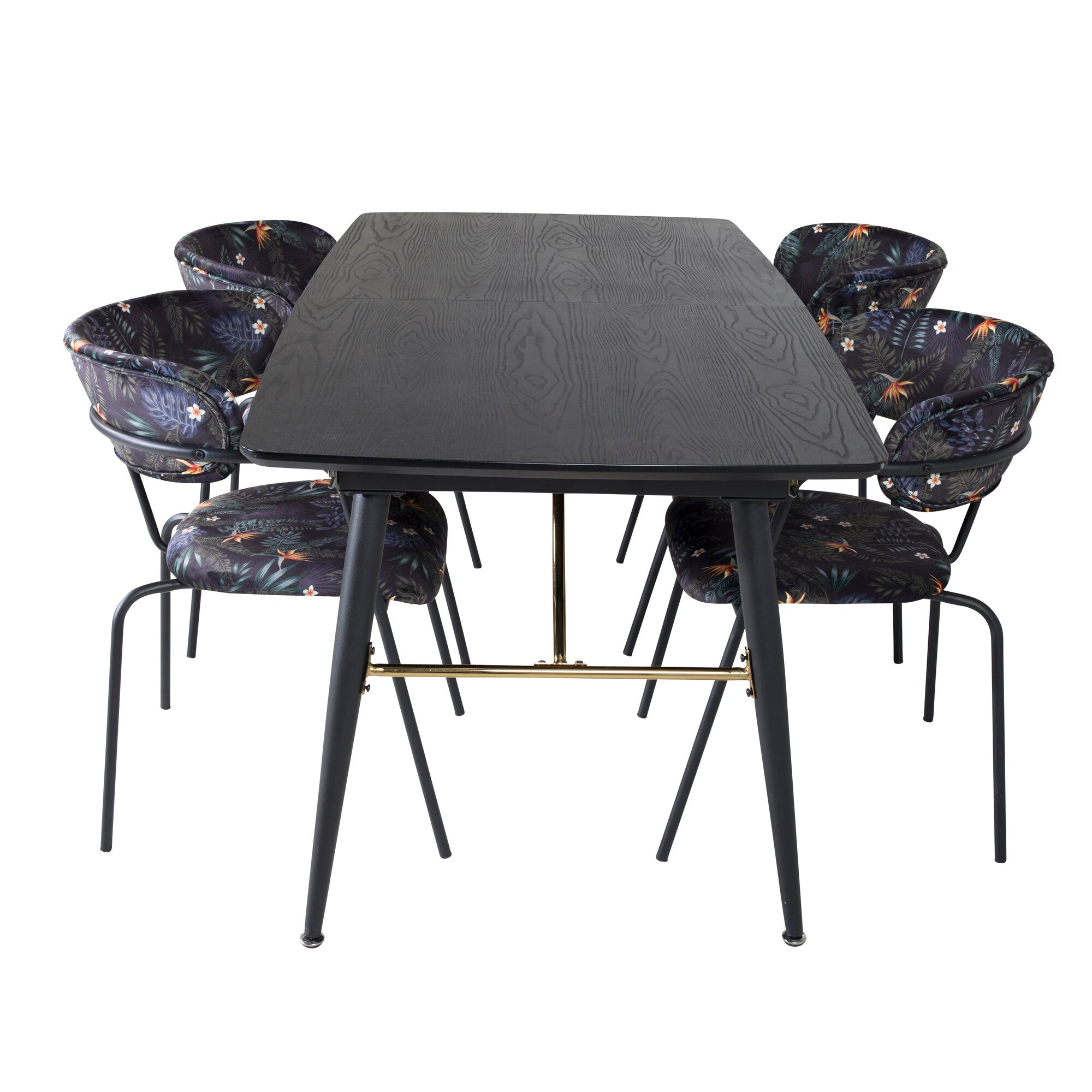 Zlatý rozkládací stůl - 180/220*85*H76 Černá dýha - Černé nohy - Mosazné detaily+Šípové křeslo - Černé nohy - Černý květ s potiskem Fabric_4