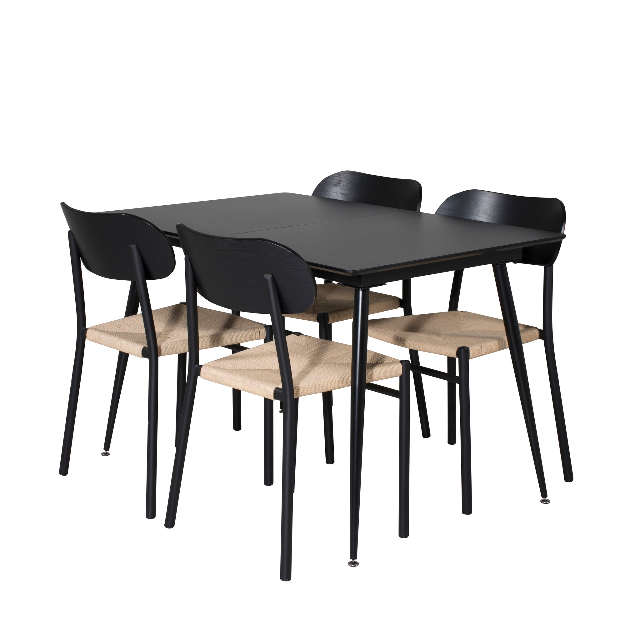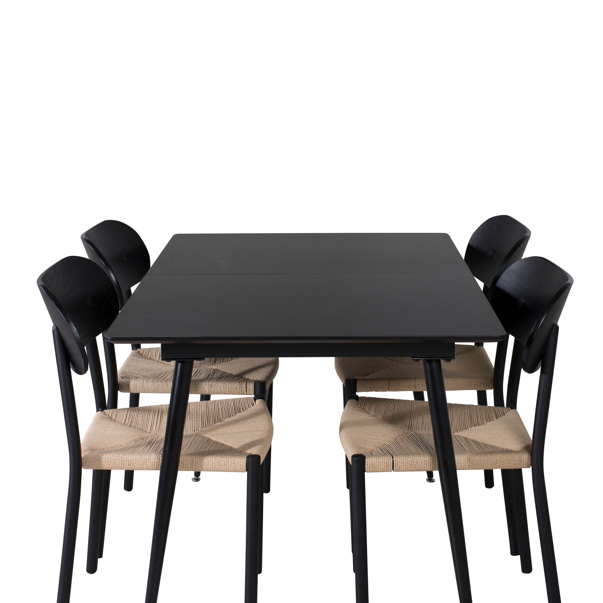 Prodlužovací stůl Silar - černý melamin / černé nohy + jídelní židle Polly - černá / přírodní _4