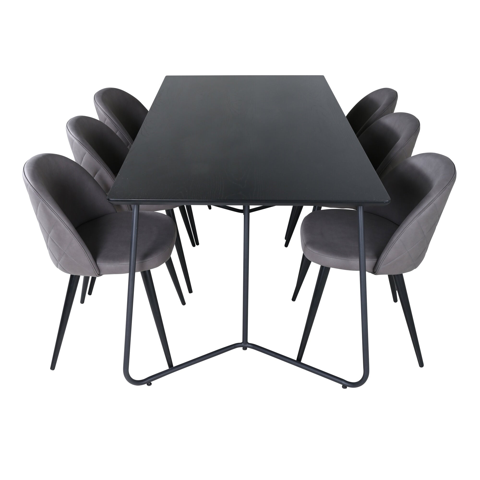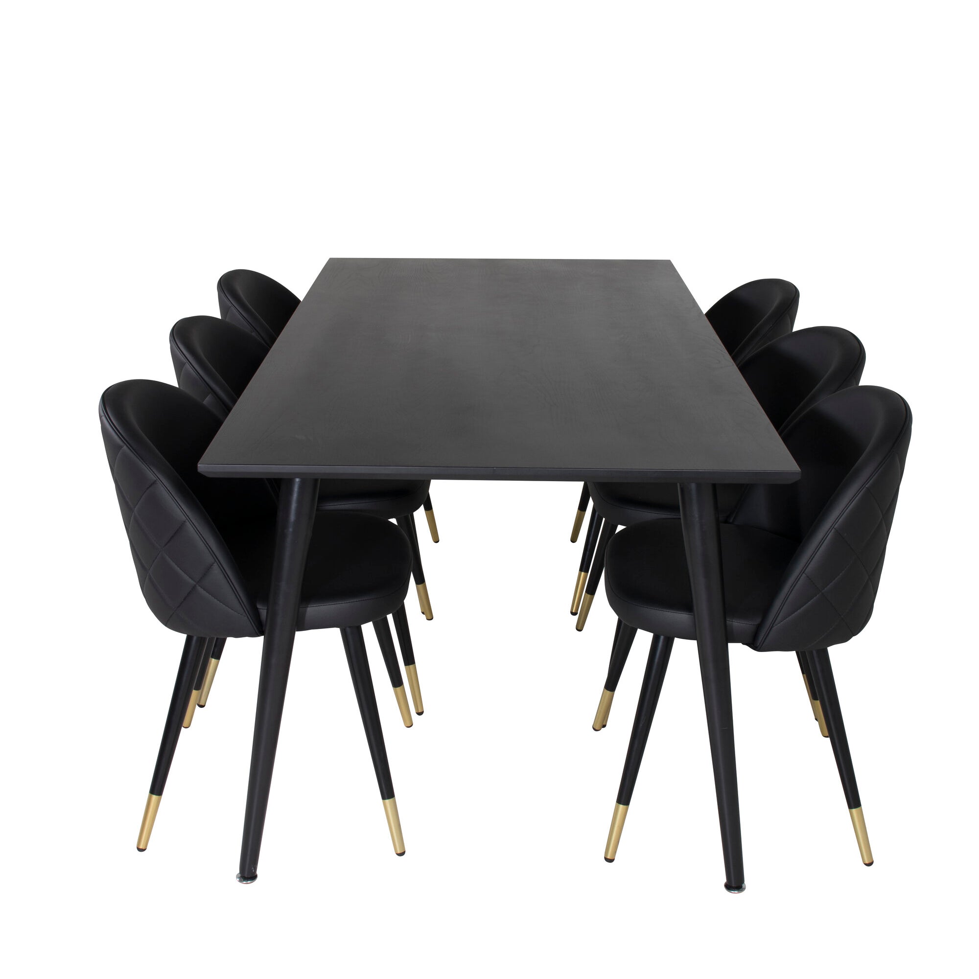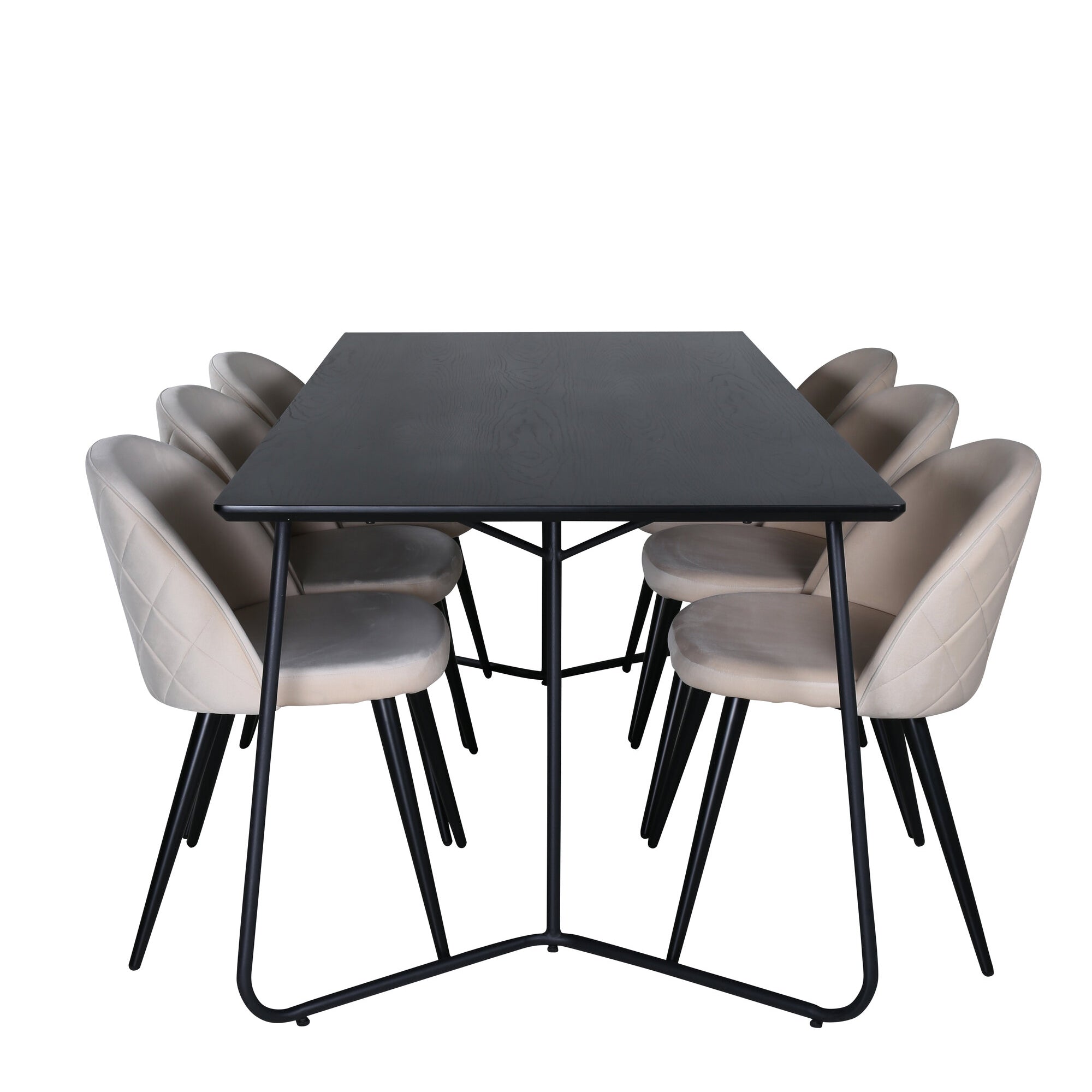 Dipp Jídelní stůl - 180*90cm - Černá dýha / celé černé nohy + Sametová jídelní židle š. Stiches - PU - Black / Black_6