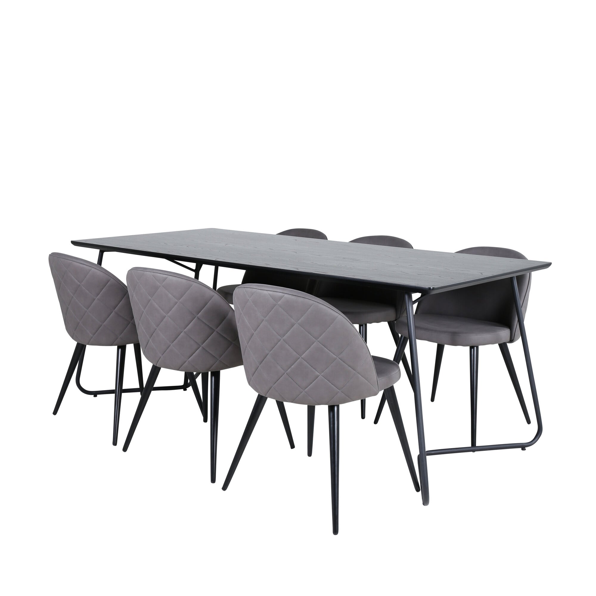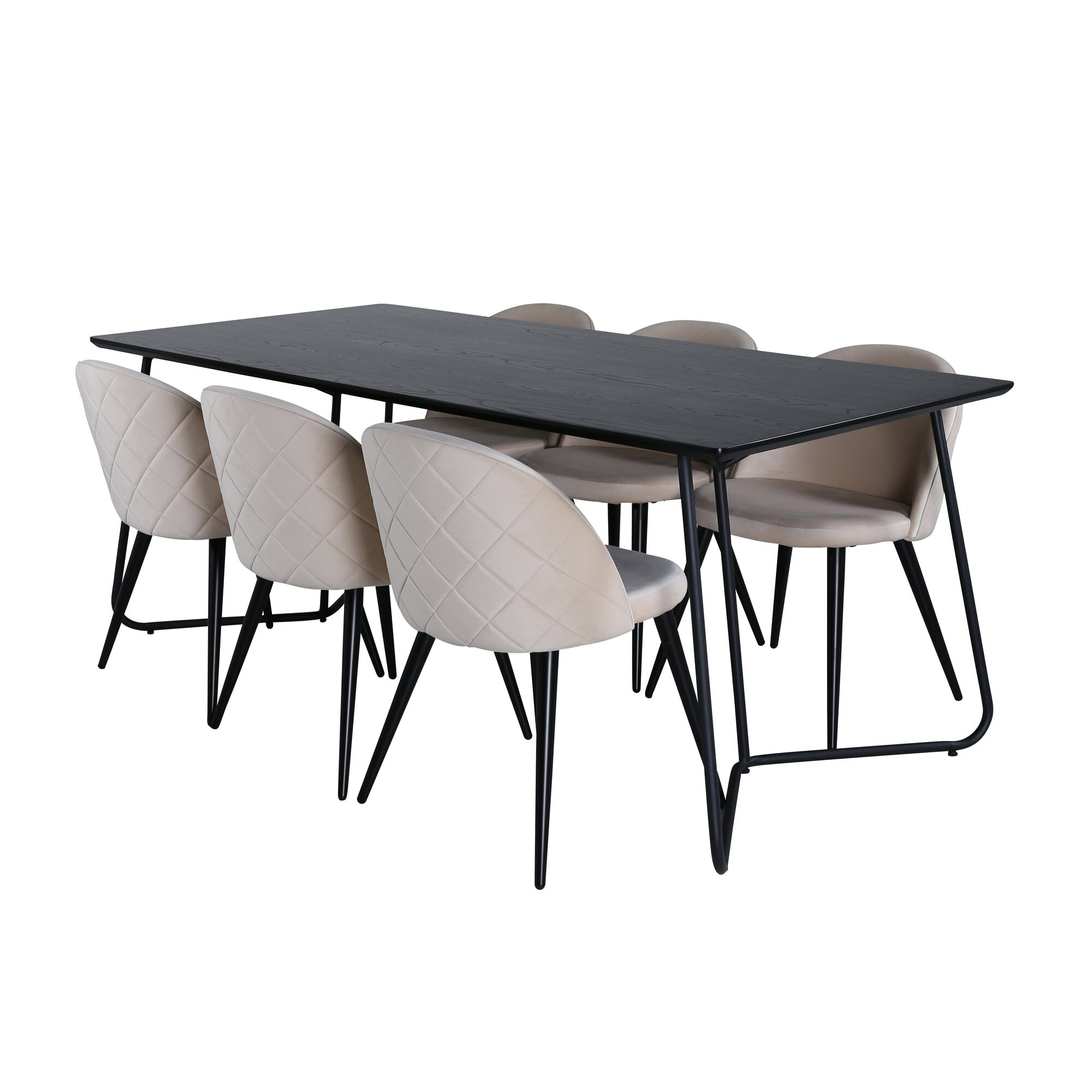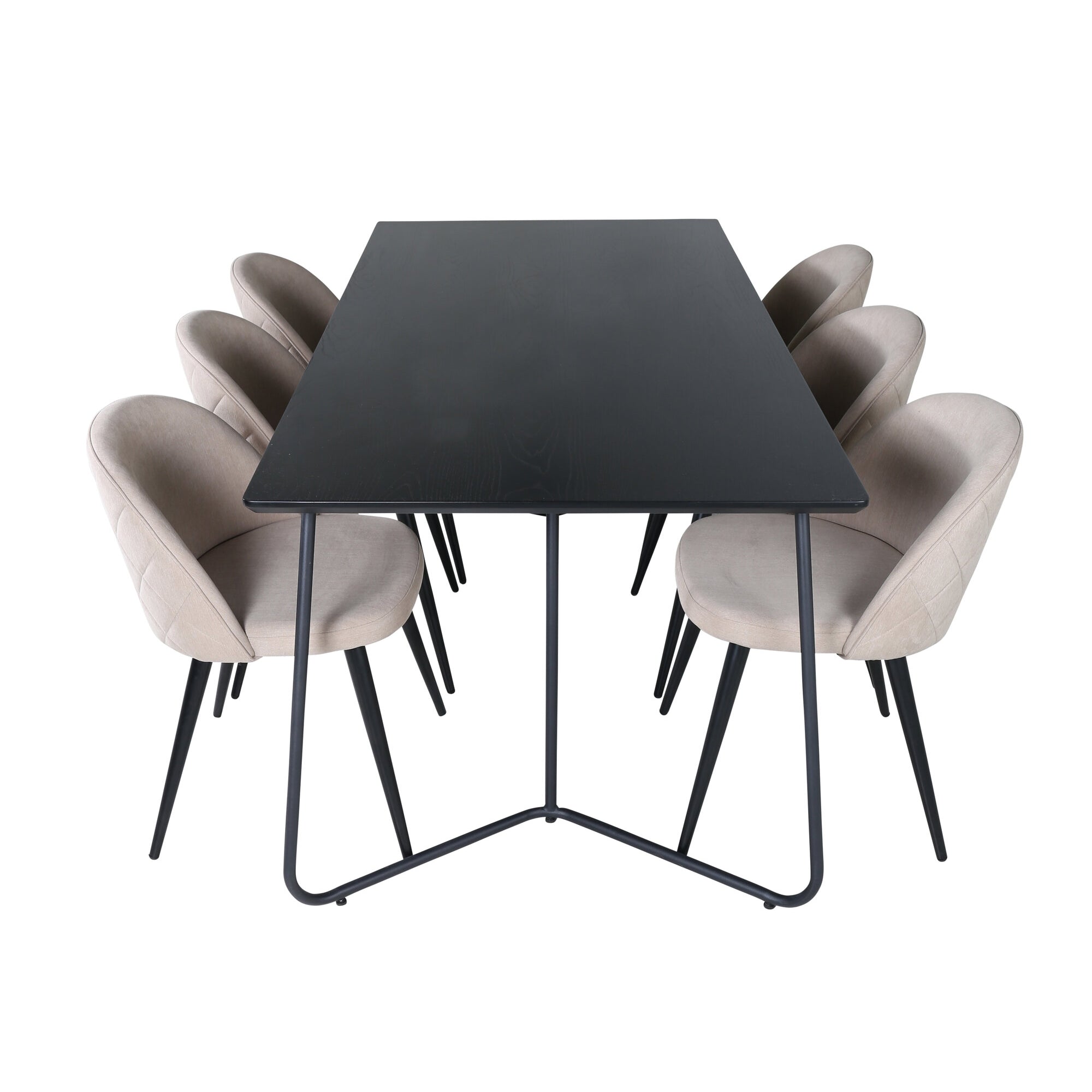 Dipp Jídelní stůl - 180*90cm - Černá dýha / celé černé nohy + Sametová jídelní židle š. Stiches - PU - Black / Black_6
