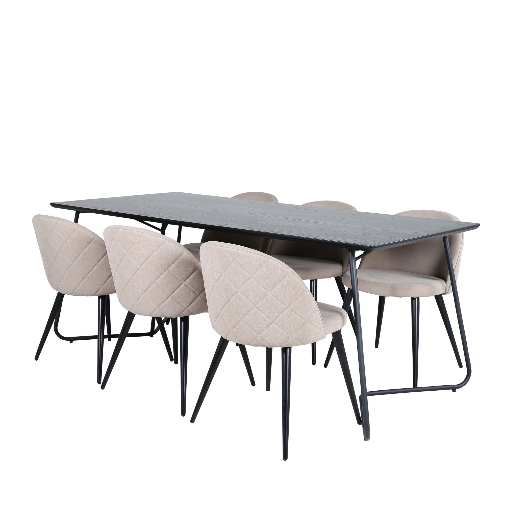 Jídelní stůl Petra - černá / černá dýha + židle se sametovými stehy - černá / béžová látka (polyesterové prádlo)_6
