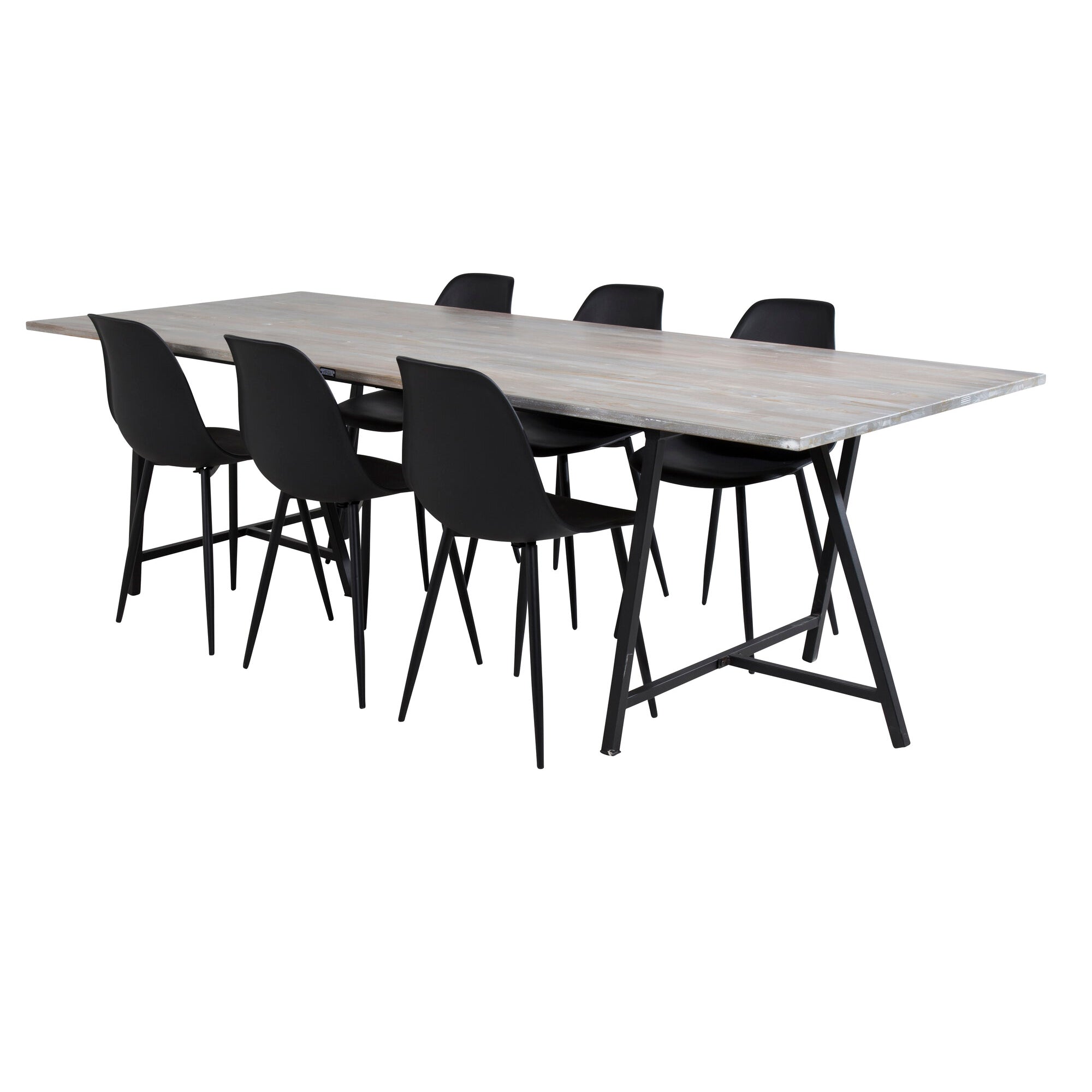 Jídelní stůl Jepara - 250*100*H76 - Šedá /Černá+Polar Plastová jídelní židle - Černé nohy / Černý Plast_6