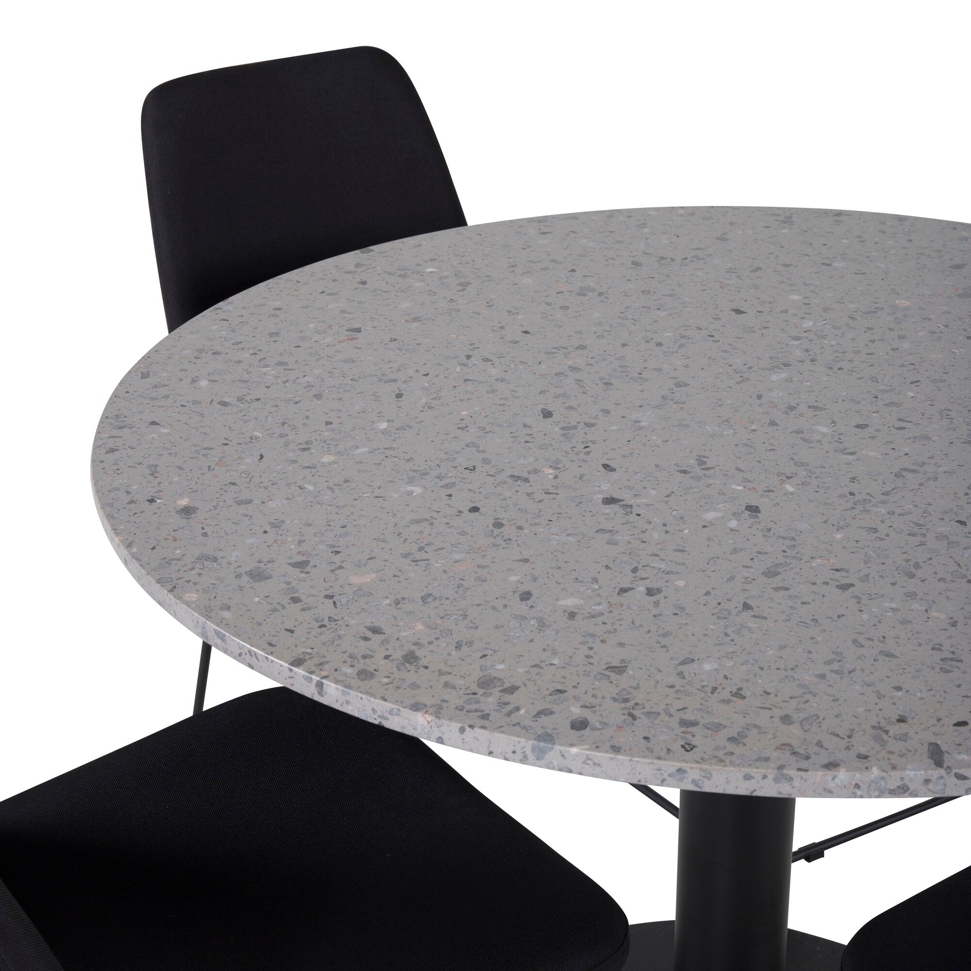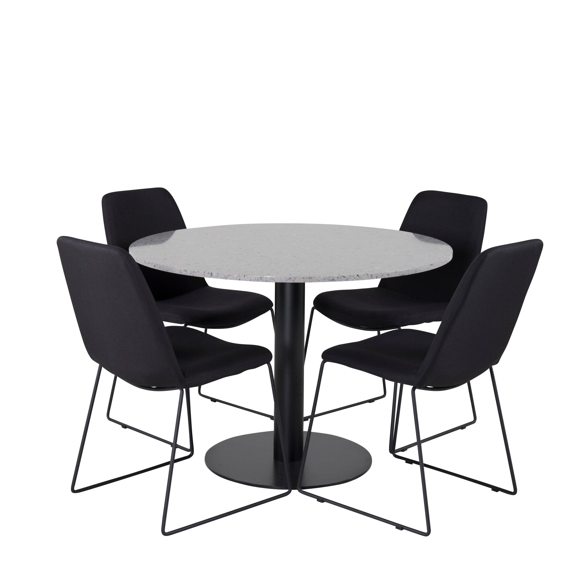 Jídelní stůl Razzia ø106 cm - Šedá / Černá + Muce Jídelní židle - Černé nohy - Černá Fabric_4