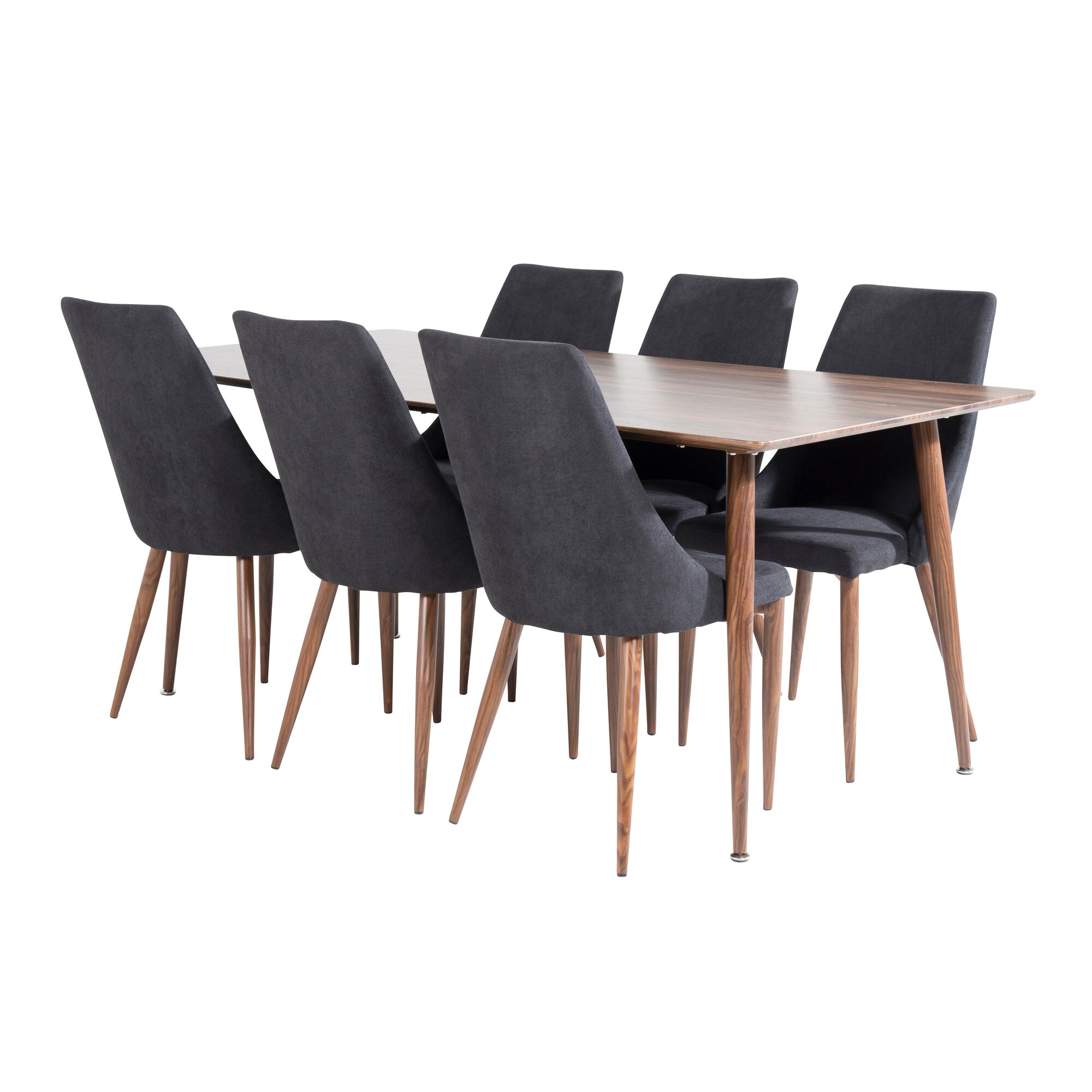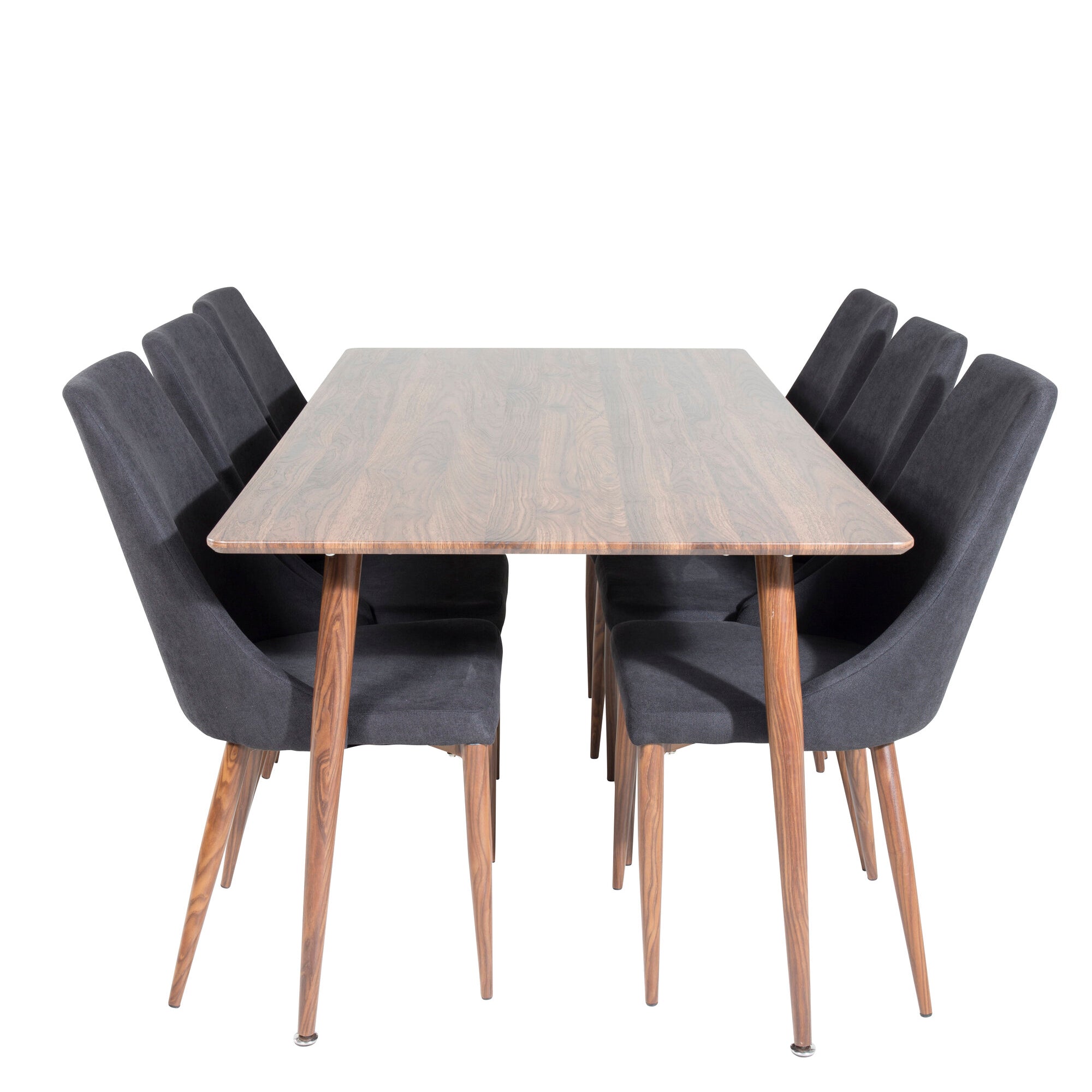 Jídelní stůl Polar 180 cm - Ořechová deska - Ořechové nohy+Jídelní židle Leon - Ořechové nohy - Černá Fabric_6